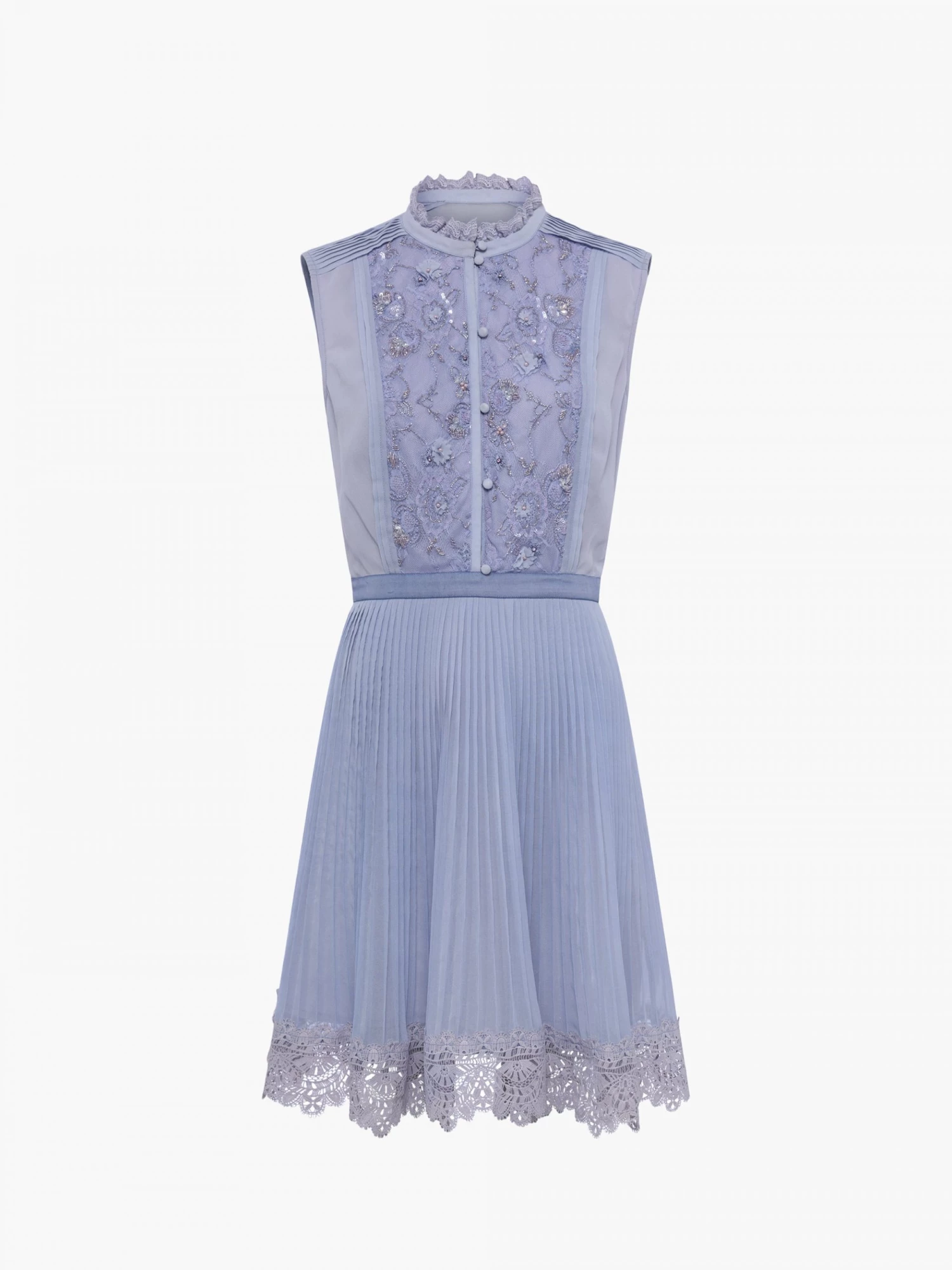 The excitement for garden parties is real. Nail the dress code with the Abibi Embroidered High-Neck Dress designed with a pleated skirt, embroidered button-up bodice and no sleeves.