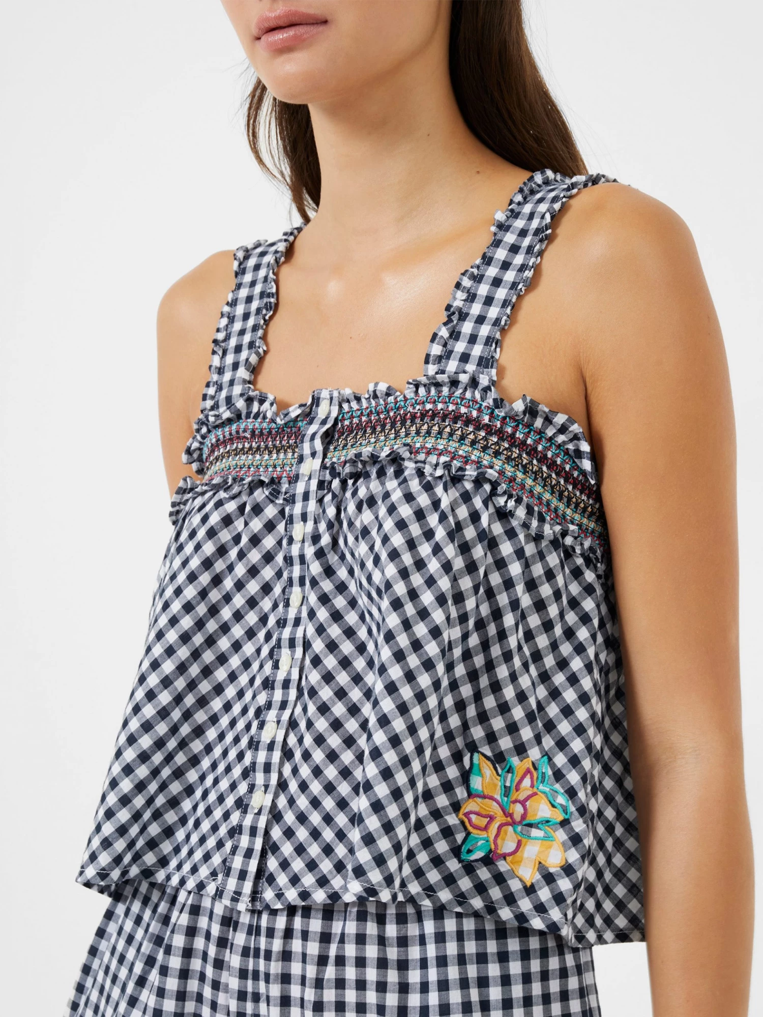 The Adalhia Organic Gingham Smock Top will give you the summer frills you’re after. Responsibly made from organic cotton, this smock top flaunts a playful design, with a gorgeous gingham pattern, ruffled trim, embroidered decoration and button-down front.
