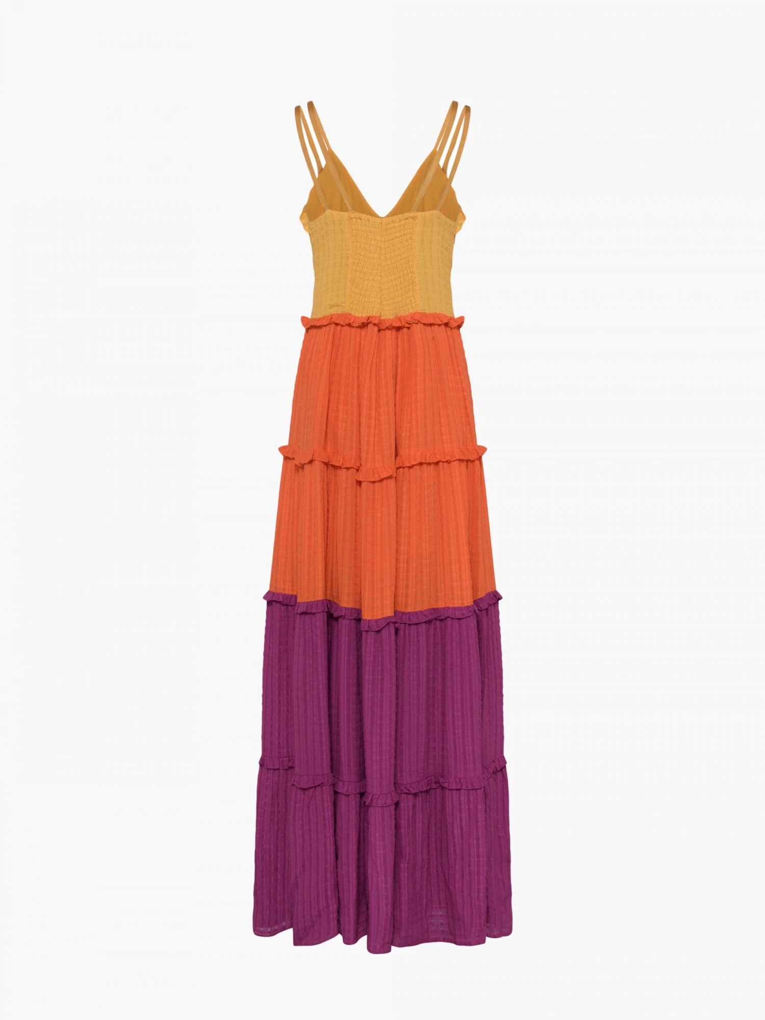 - Fabric: lightweight, tiered, colour-block