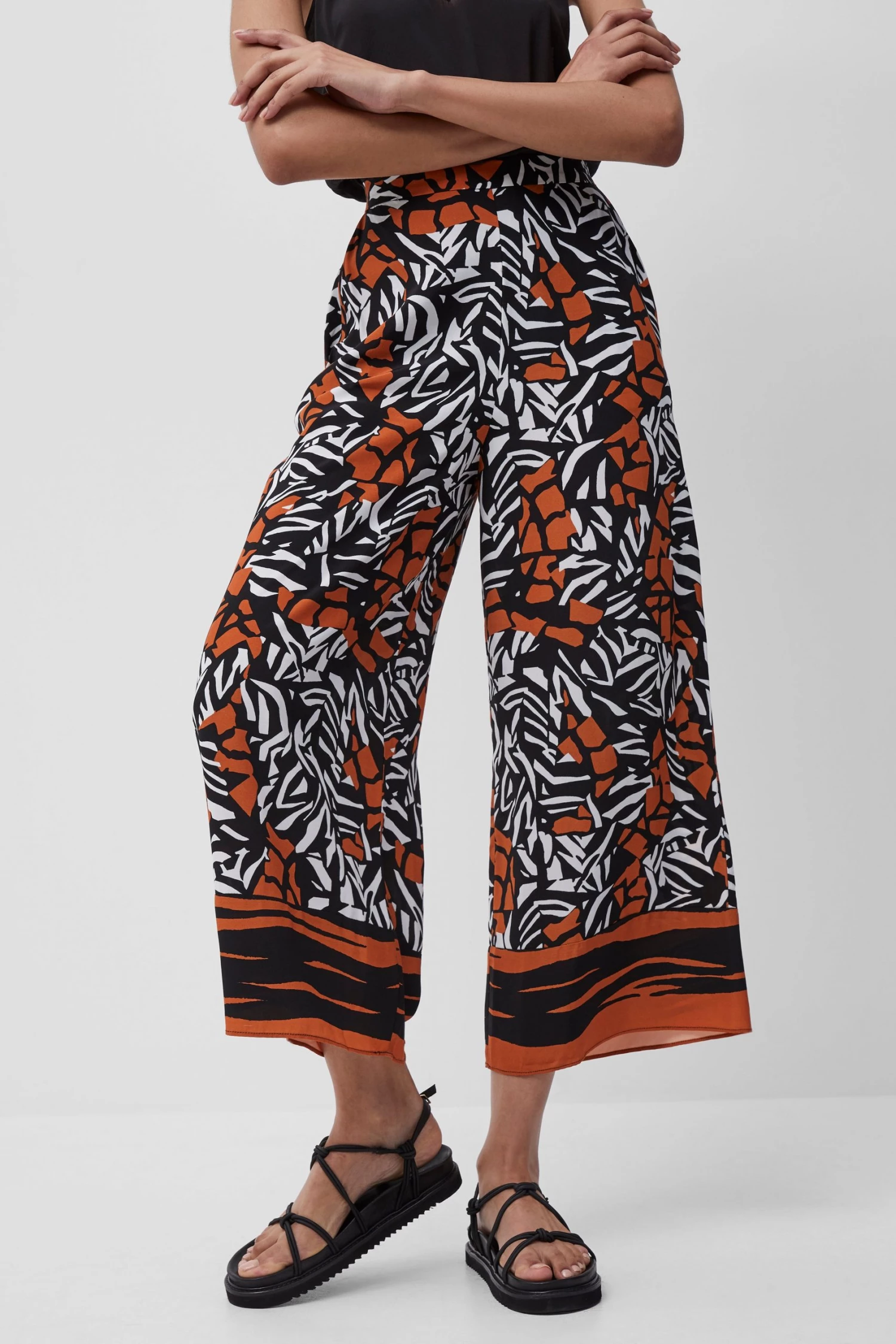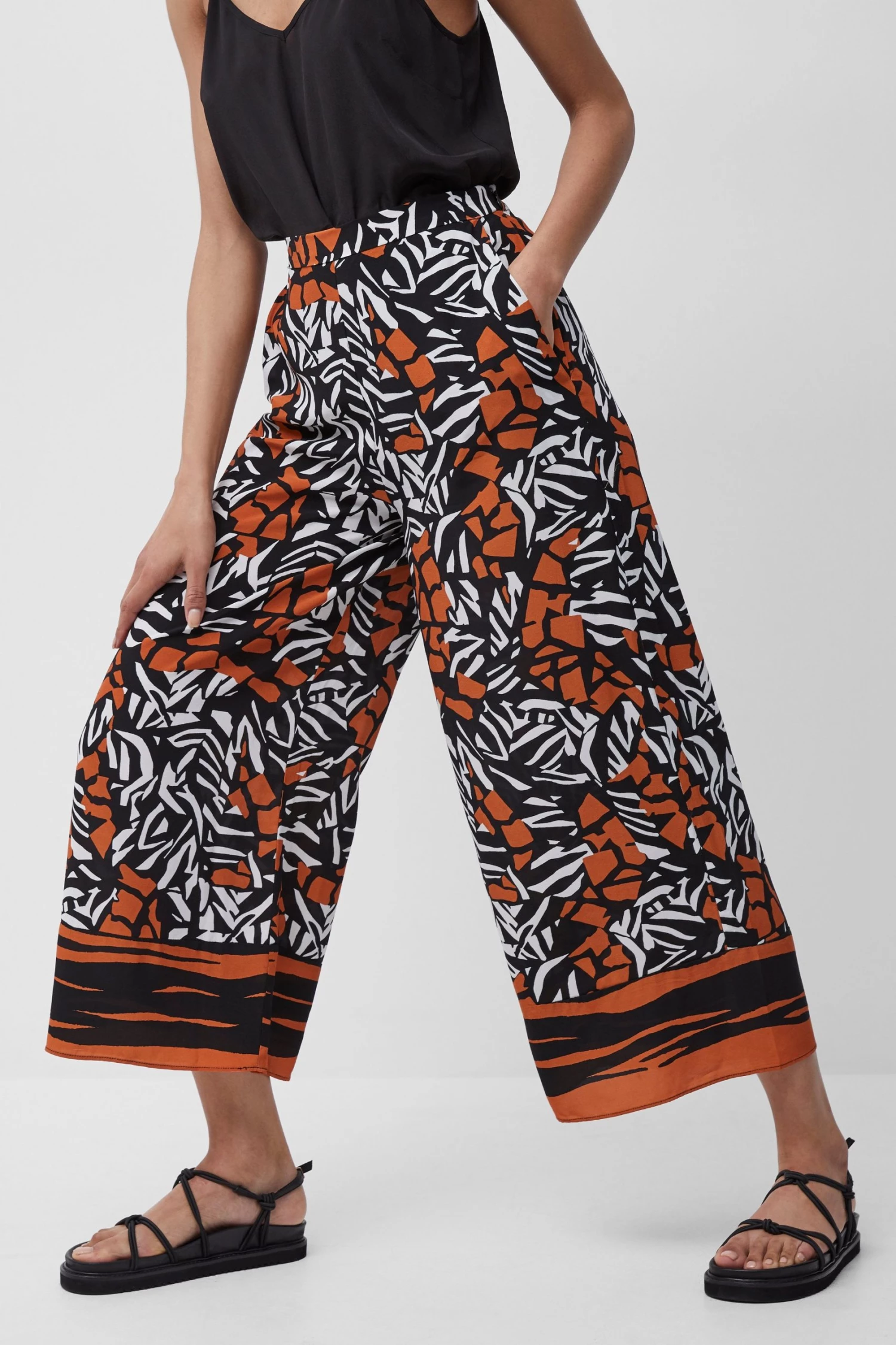 Not only for holidays, our Afara Drape Culottes add interest to any ensemble. The wide-leg pair is designed with a high waist and vibrant animal print.