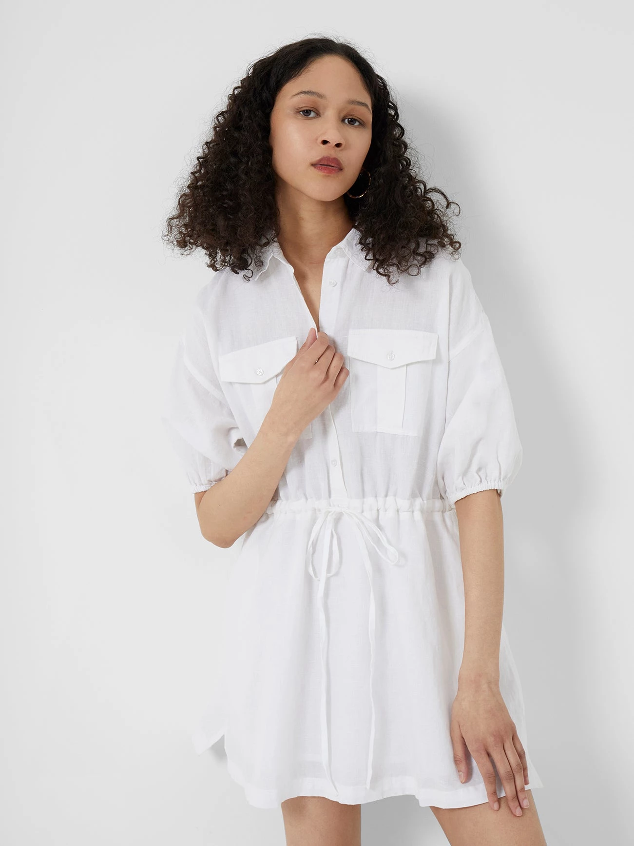Make waves this summer in the Ahia Cotton-Linen Shirt Mini Dress. The lightweight style has shirt pockets, collar and a waist-defining belt.