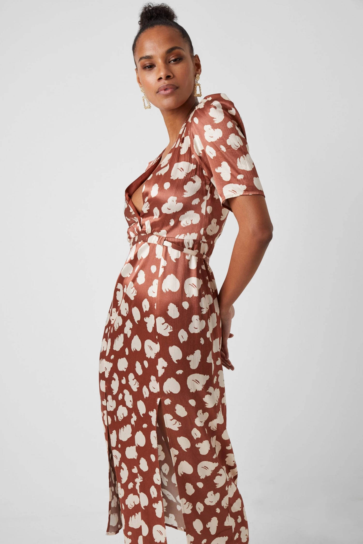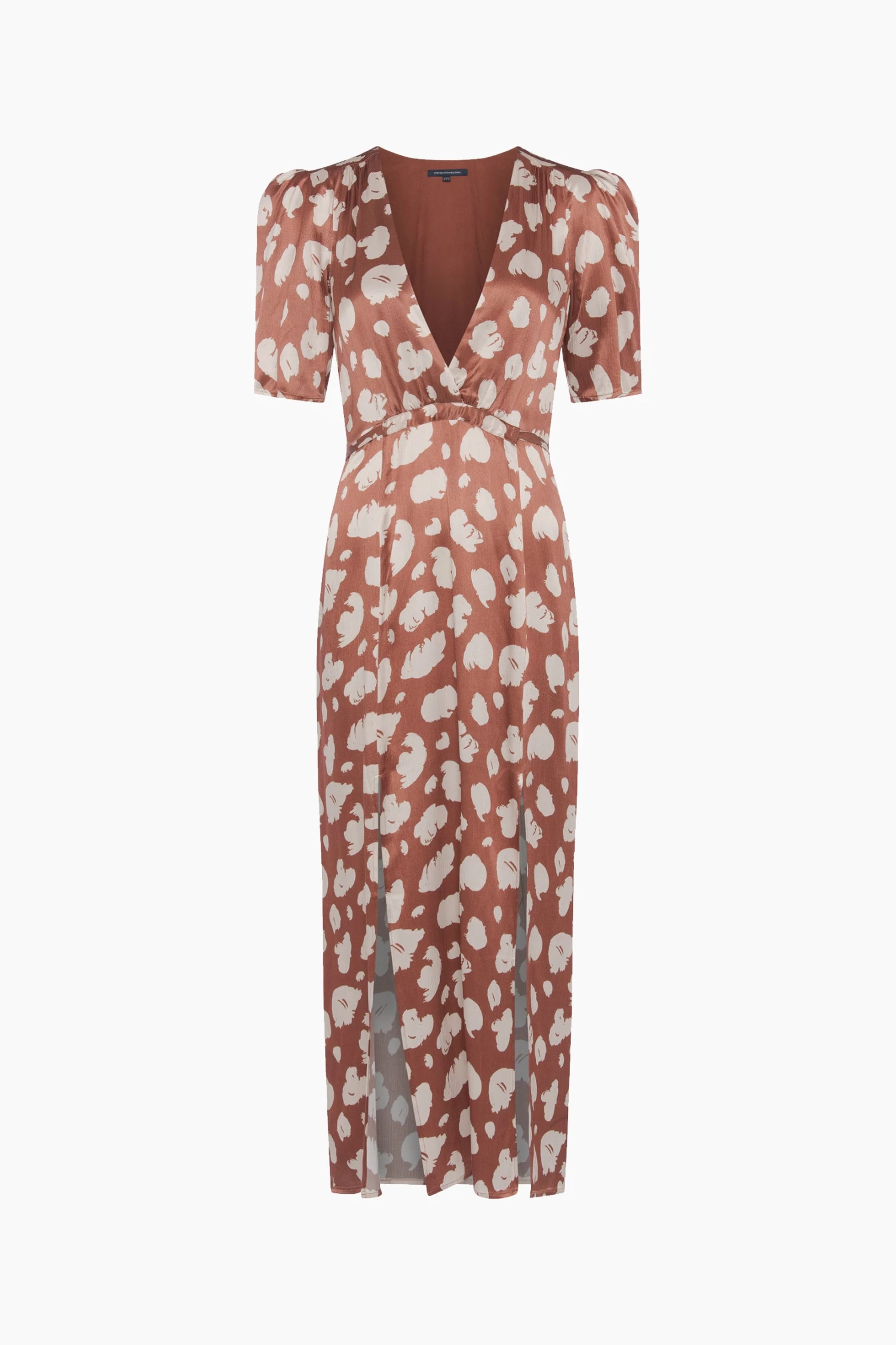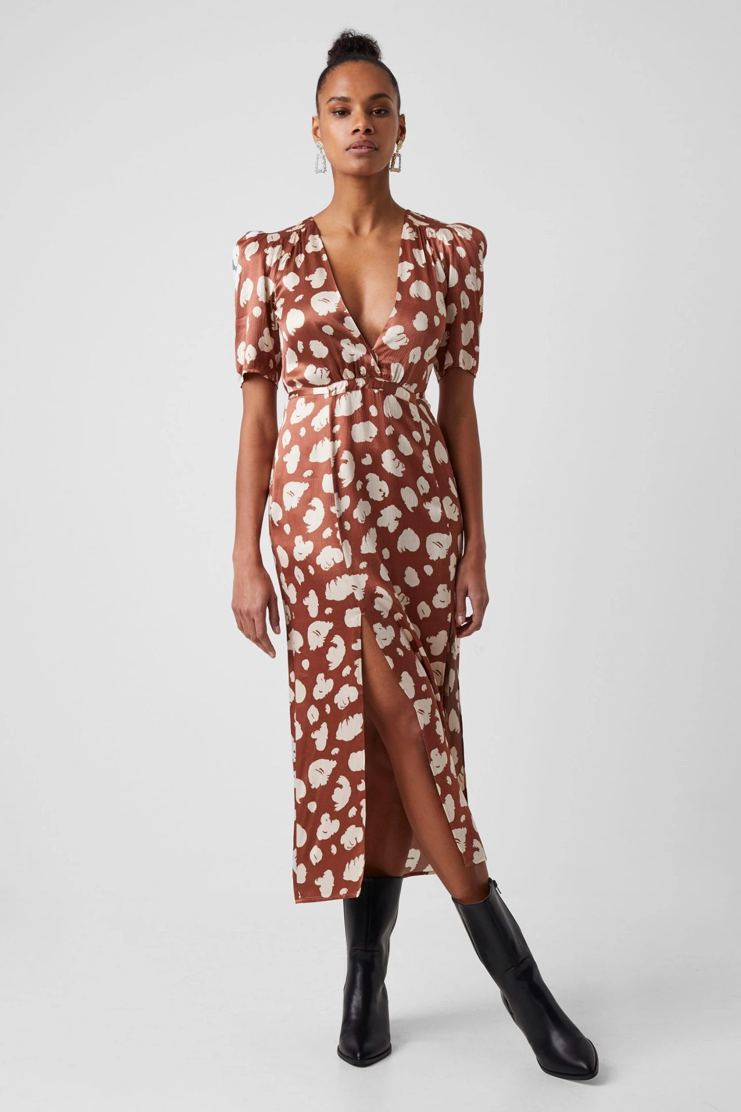 Master the dress code for every social event in sight with the Aimee Enid Front Split Midi Dress. In a glossy, satin construction, it’s printed with contrasting florals.