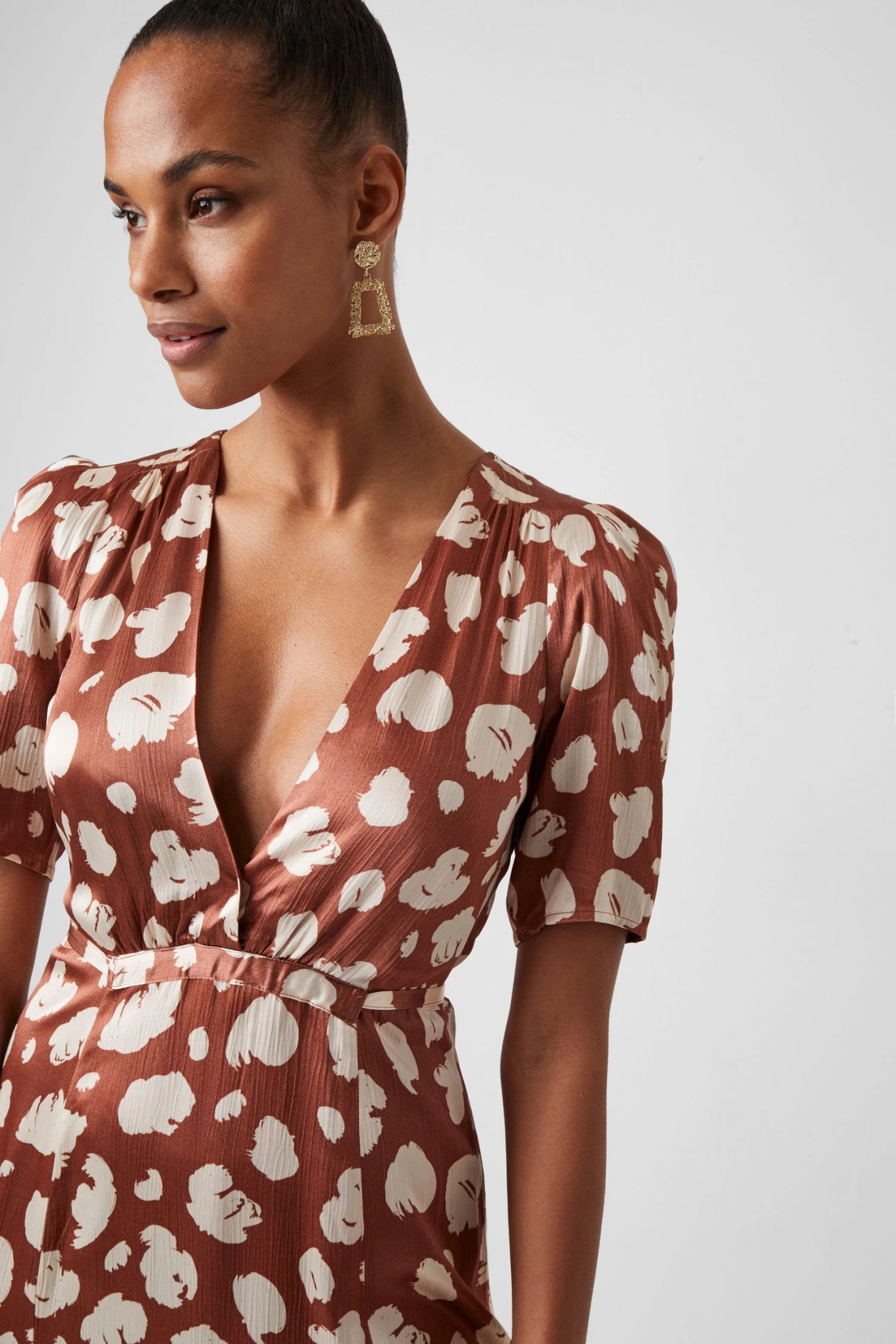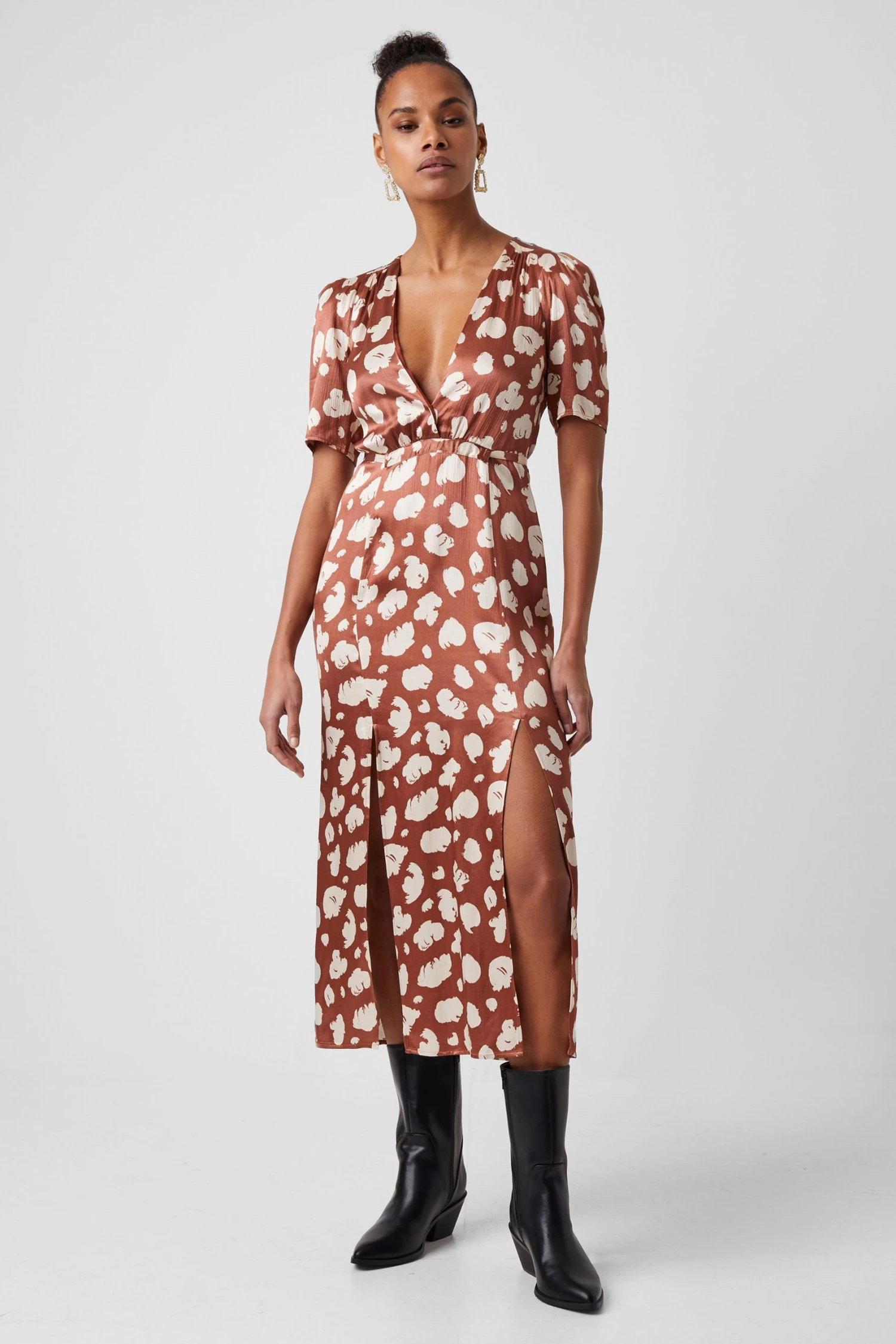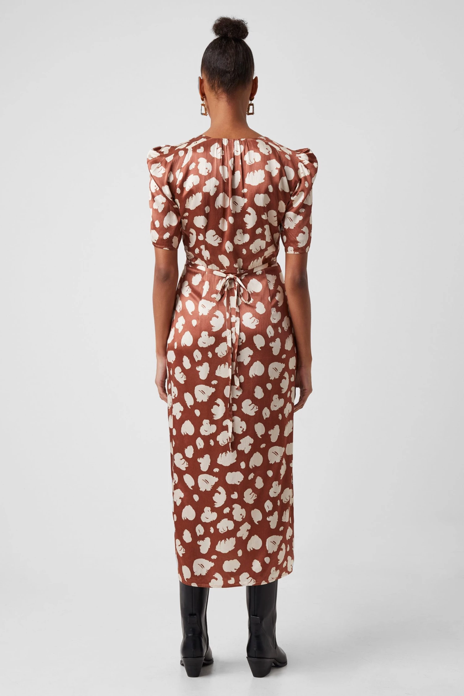 Master the dress code for every social event in sight with the Aimee Enid Front Split Midi Dress. In a glossy, satin construction, it’s printed with contrasting florals.