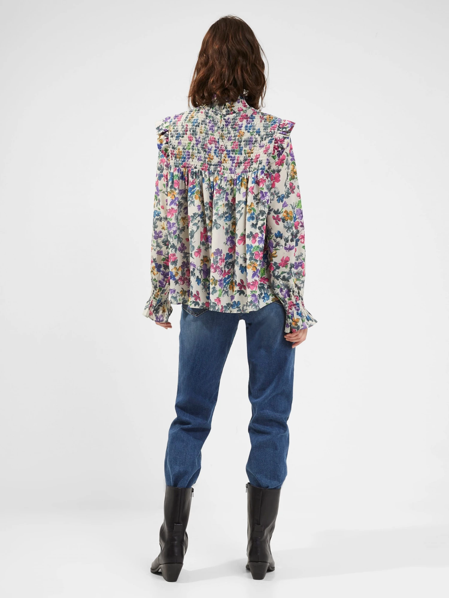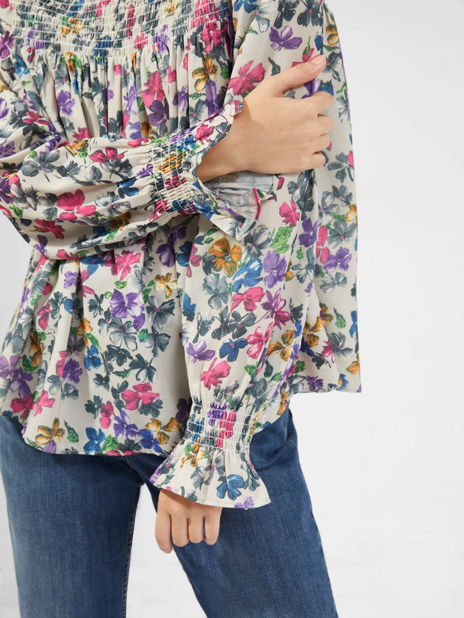 Our Alianna Drape Smock Top is hay fever allergy friendly. Featuring a high neckline, smocked panel and blooming print.