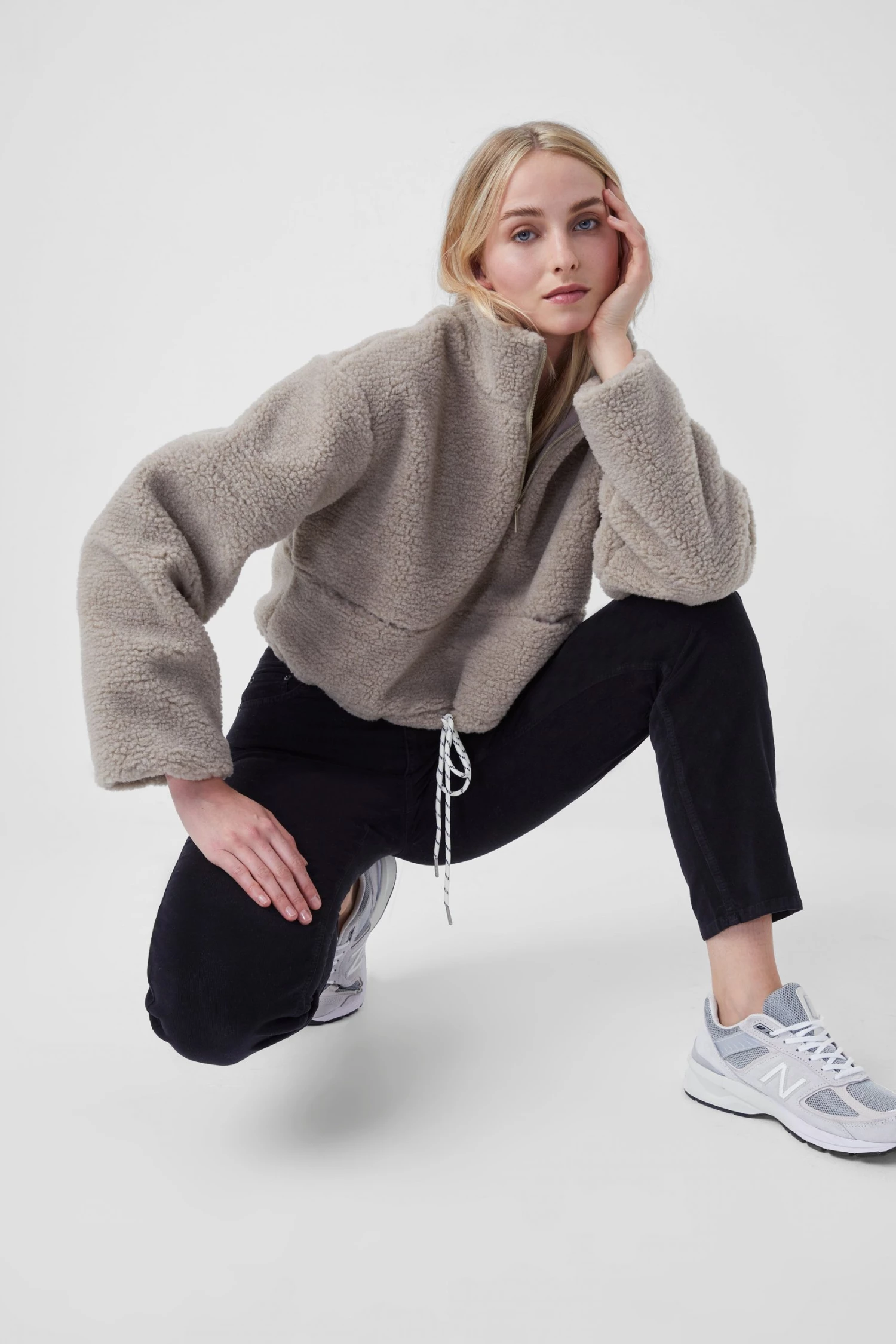 Take on the winter chill with effortlessly cool style with the Anahi Faux Fur Jacket. In a boxy silhouette, it’s fitted with a half-zip fastening and drawstring hem.