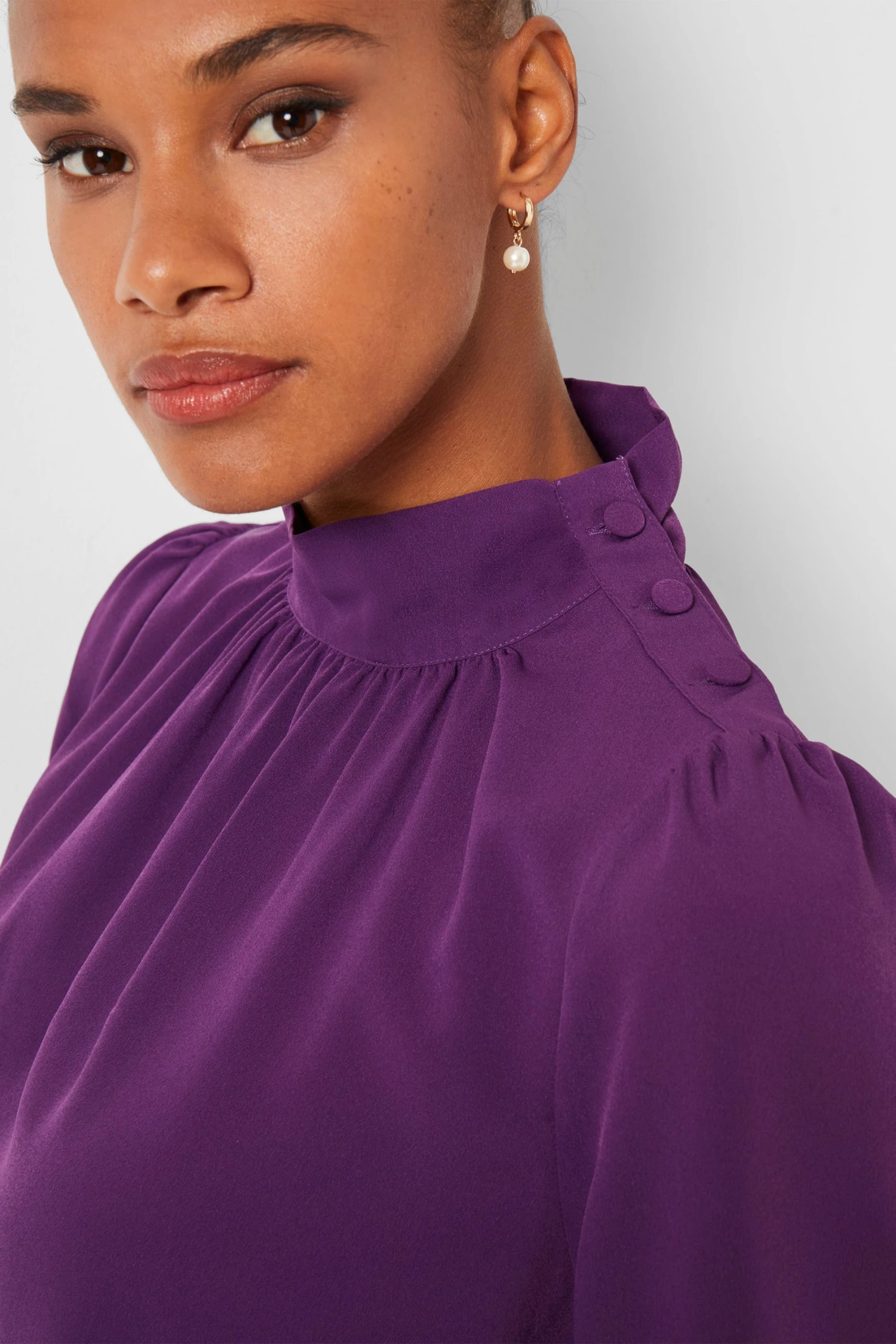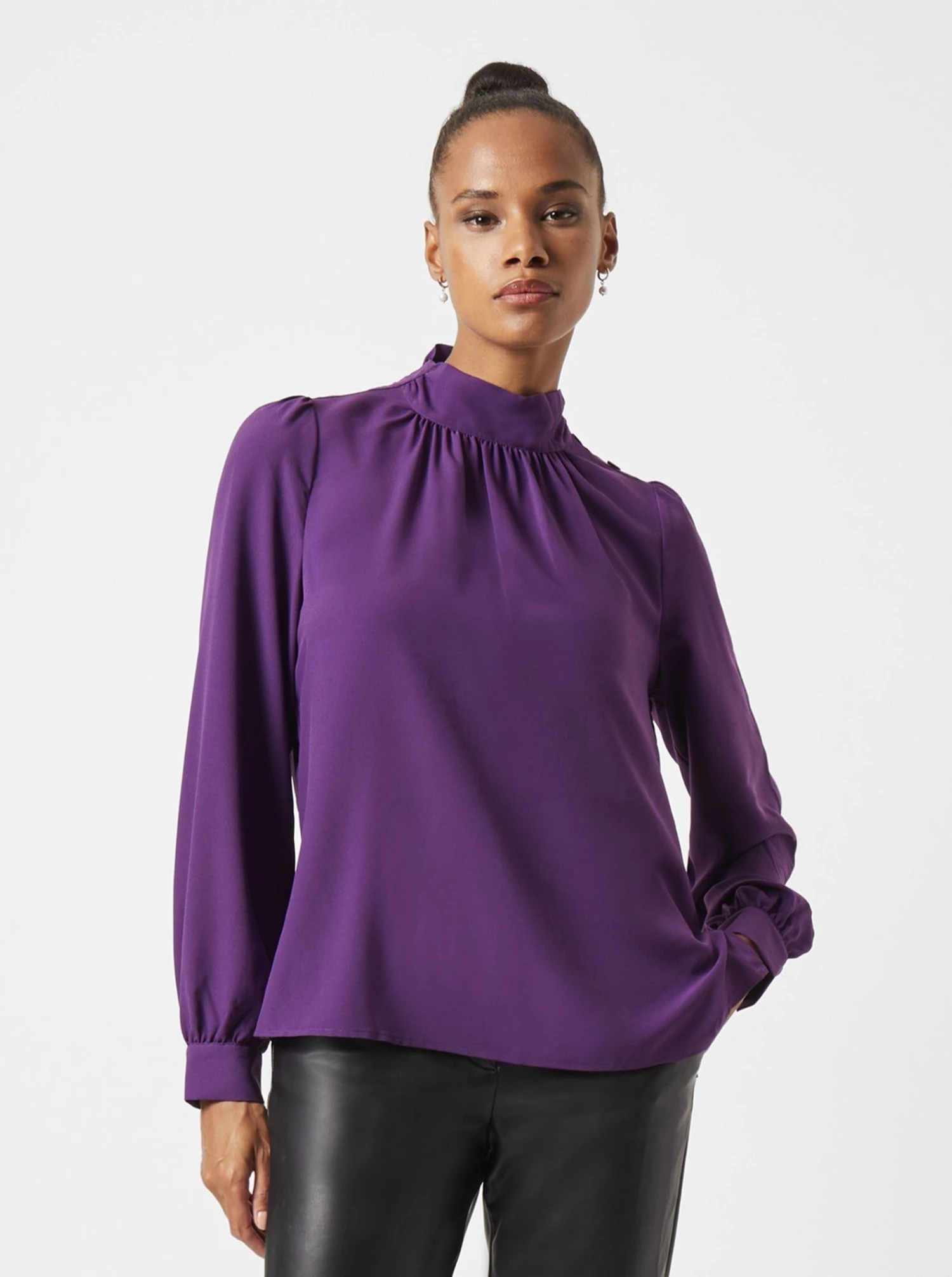 The Arina Solid Button Neck Top makes office dressing an effortless experience. With a minimalist design and buttoned cuffs, it’s a sure-fire choice for weekdays.