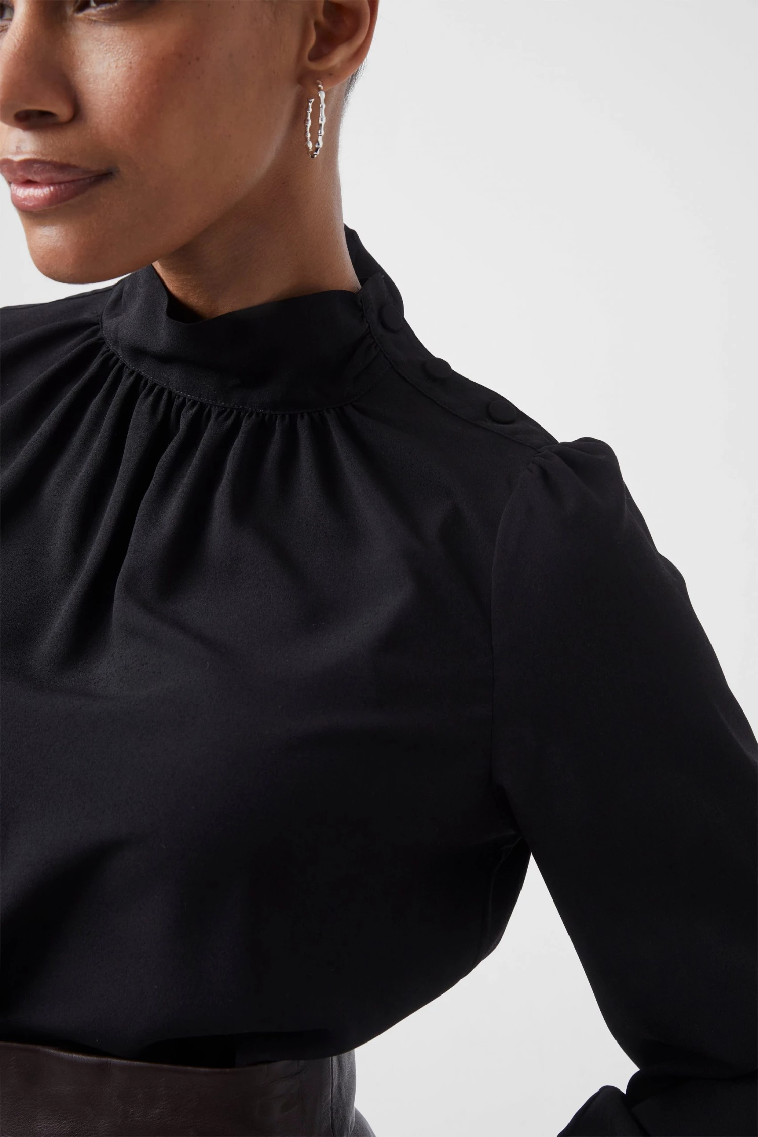 The Arina Solid Button Neck Top makes office dressing an effortless experience. With a minimalist design and buttoned cuffs, it’s a sure-fire choice for weekdays.
