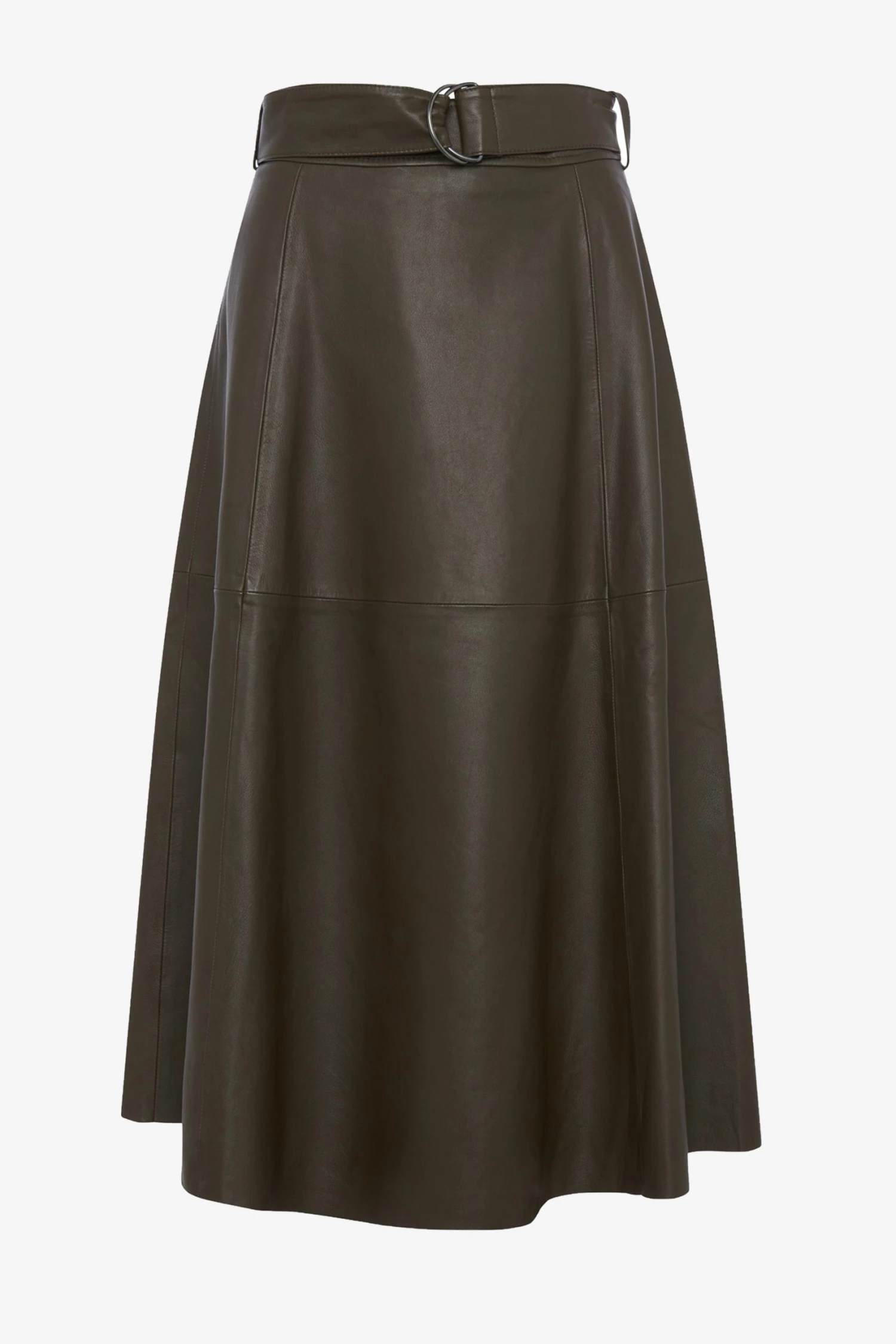 Elevate your wardrobe for the new season with the Arlan skirt. Constructed in smooth, supple leather, the skirt is a refined piece that creates a flawless silhouette. With a d-ring belt at the waist and midi length, the skirt pairs perfectly with a sleek white shirt for days at the office, or can easily be dressed up with a satin top and simple jewellery for premium occasion style.