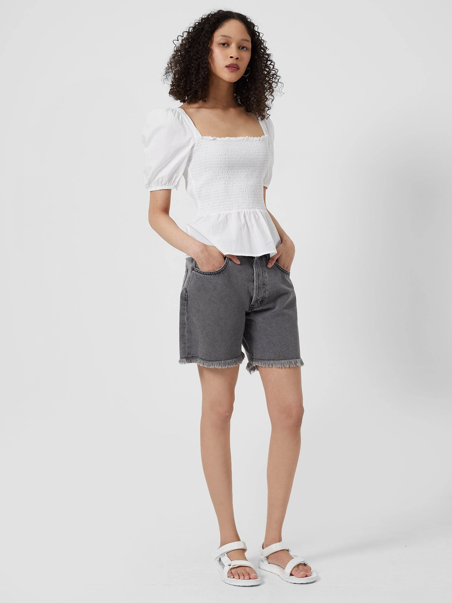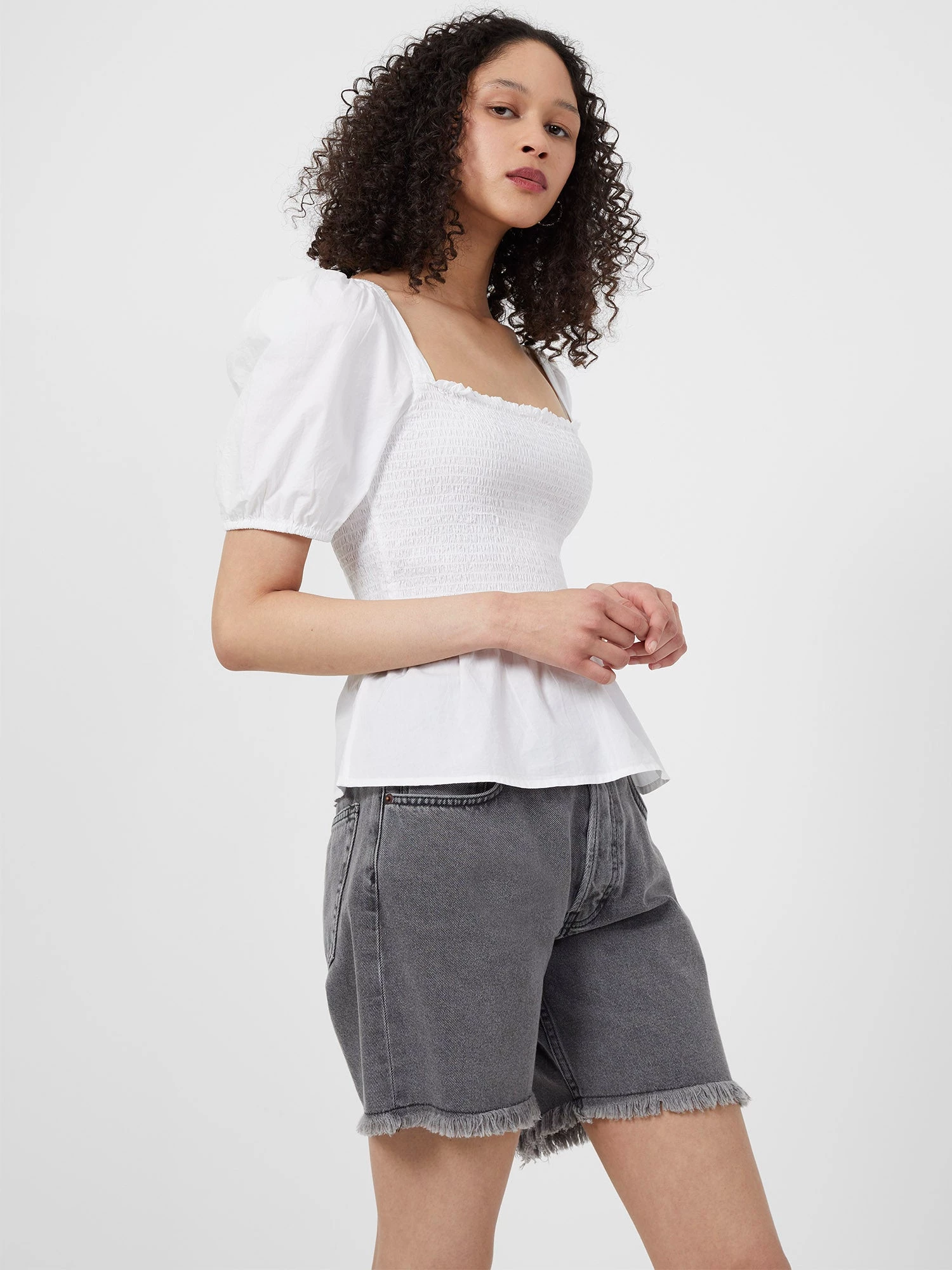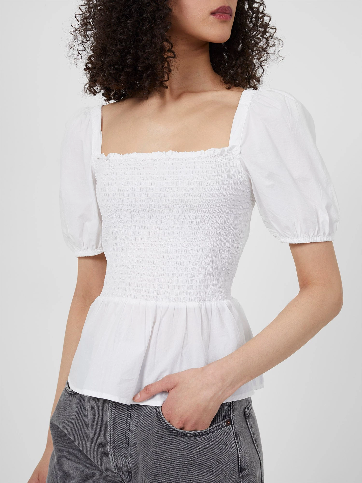 The true essence of spring, our Artina Poplin Smocked Top has a pared-back colourway and is finished with puffed-up sleeves and smocked bodice.