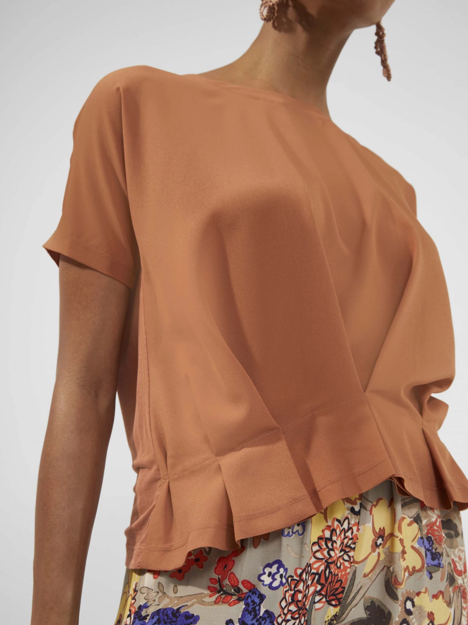 Our Augusta Pleat Peplum Hem Top will make wardrobe crises a thing of the past. The ultra-flattering style has a folded design and peplum hem.