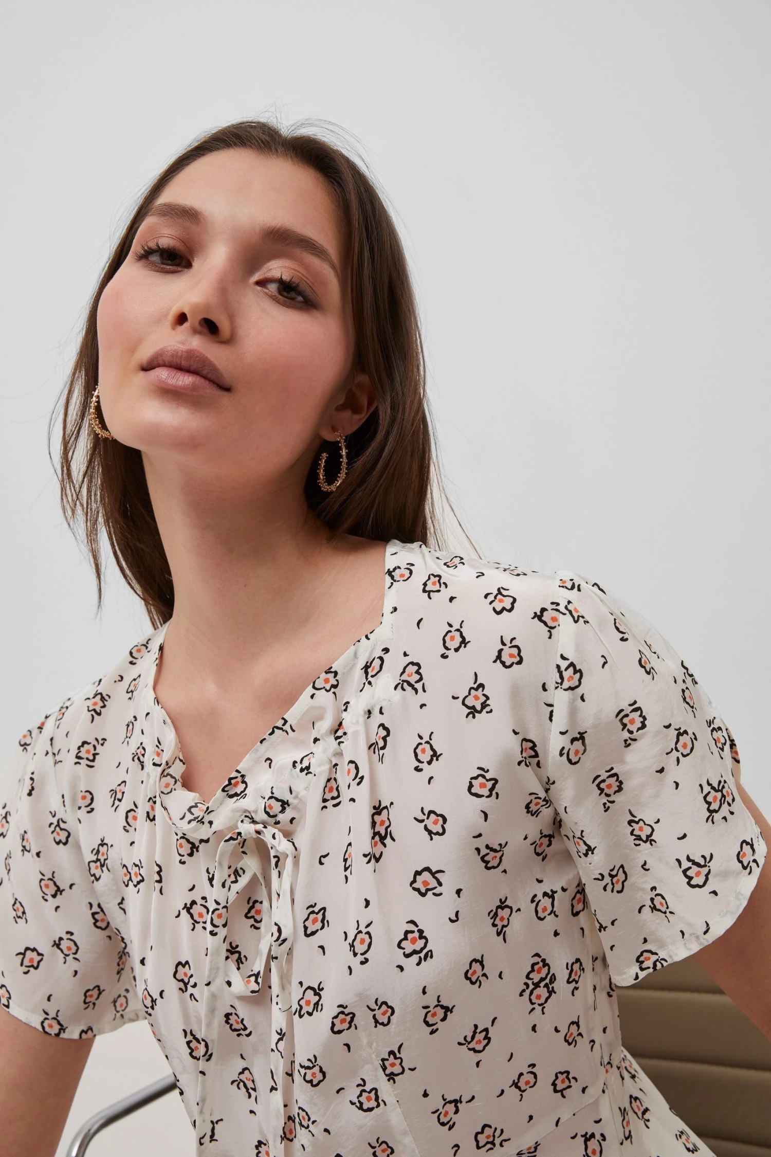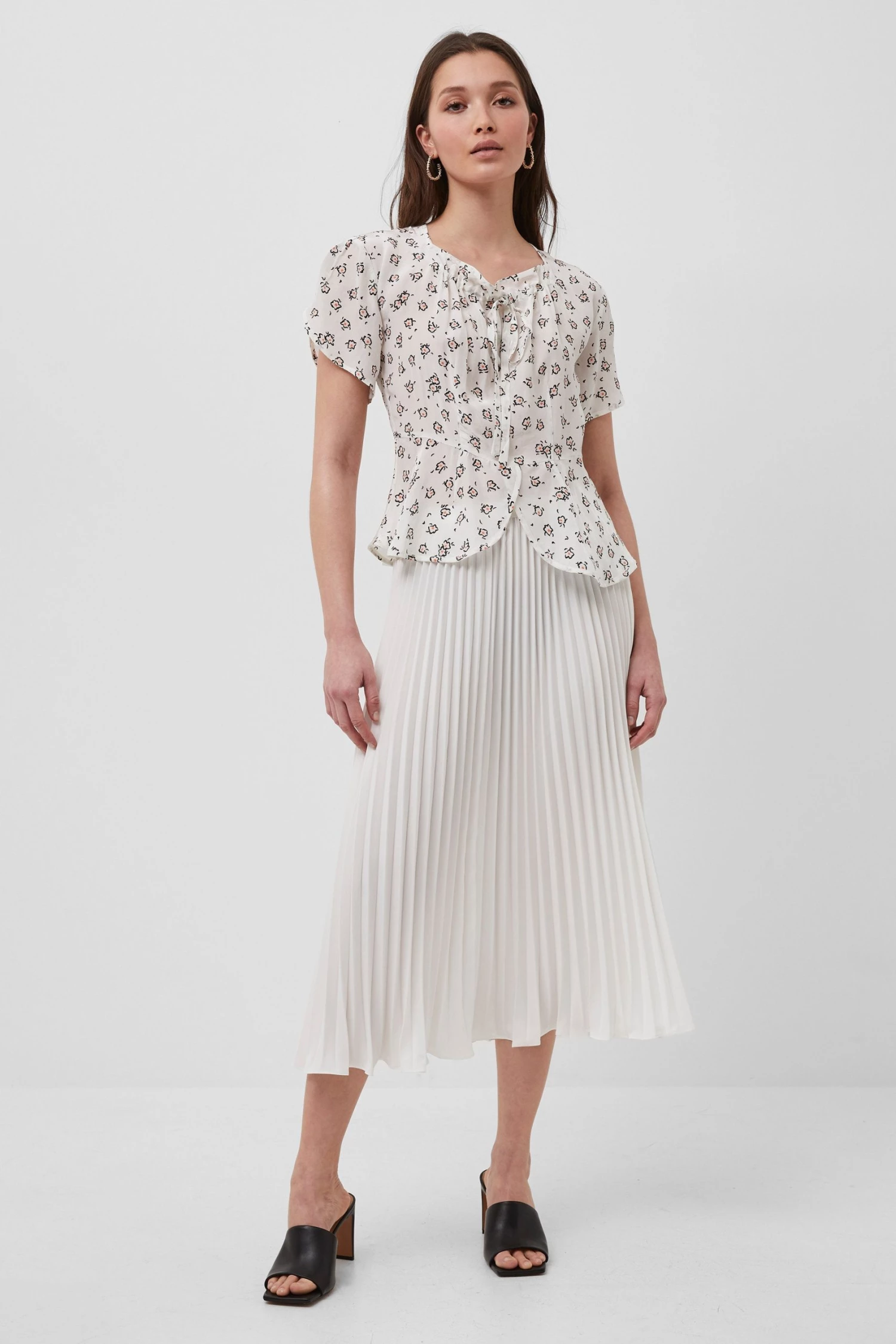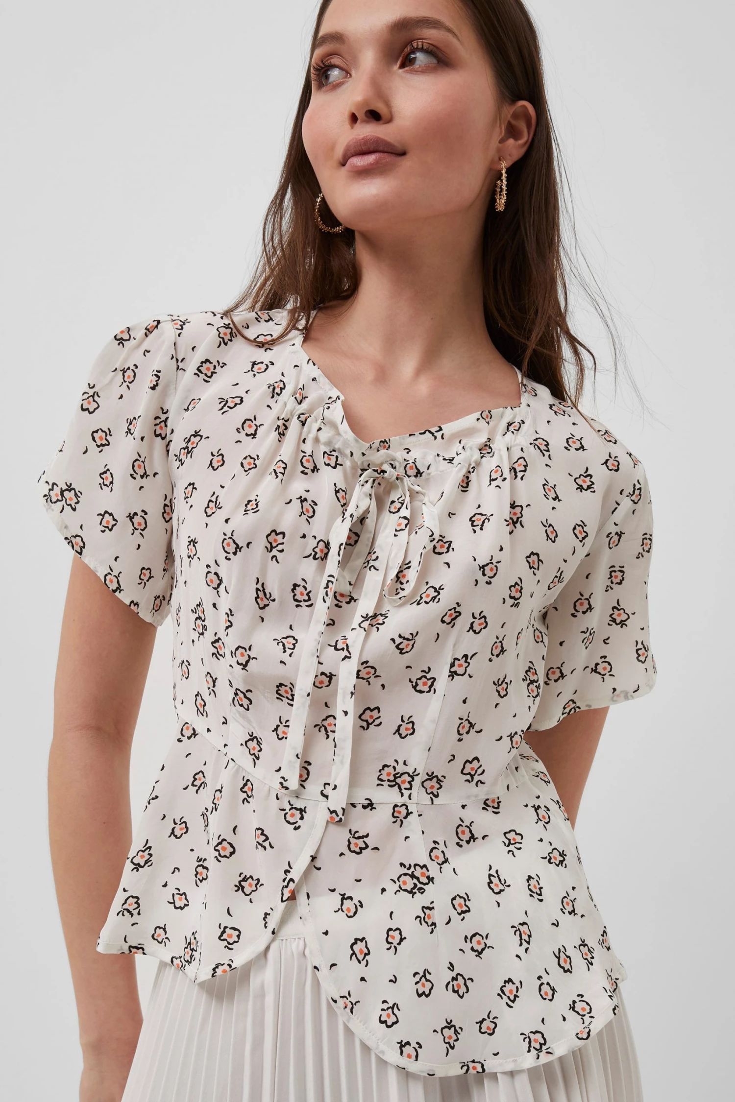 Bring feminine floral prints into your new season wardrobe with the Aura top. Elegantly designed with a gathered round neckline, tie detail and cropped length.