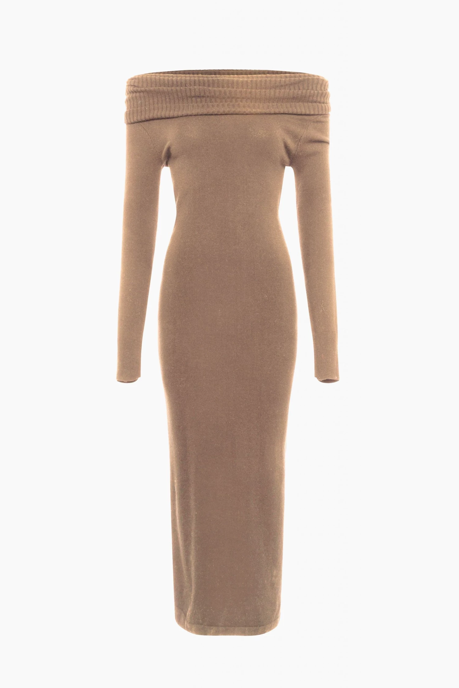 Expose an alluring touch of skin in the Babysoft Off Shoulder Dress. Spun from a soft-knit fabric, it has an off-the-shoulder neckline, long sleeves and tight-fitting silhouette.