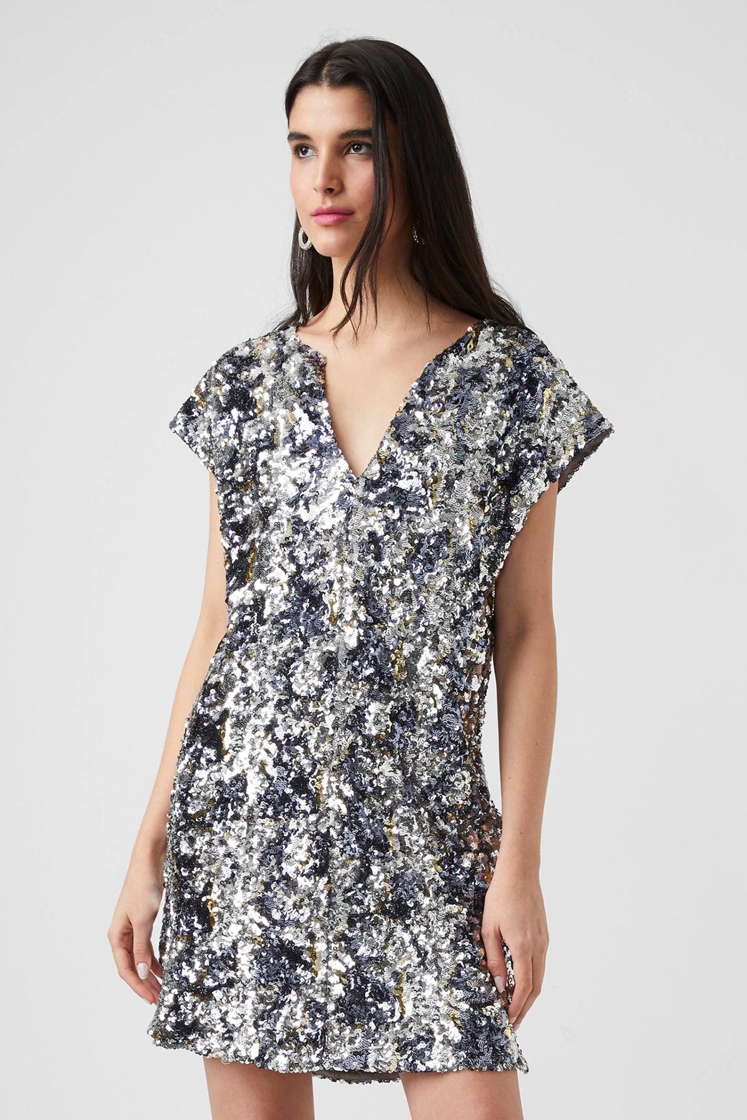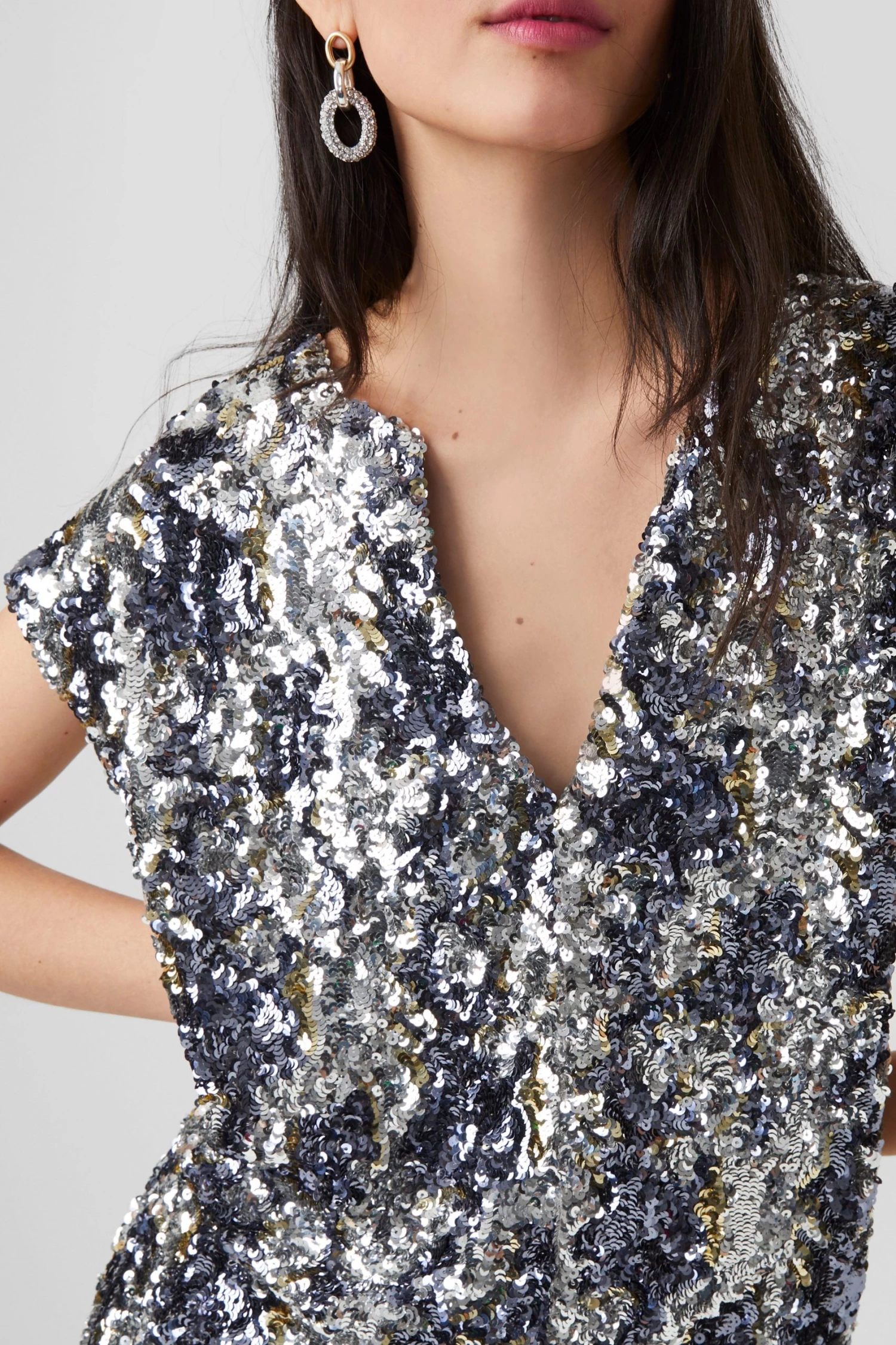 With the Bilaz Camo Sequin Mini Dress, compliments are set to flow. Full of shimmering sequins and abstract camouflage print, it has a flattering V-neckline.