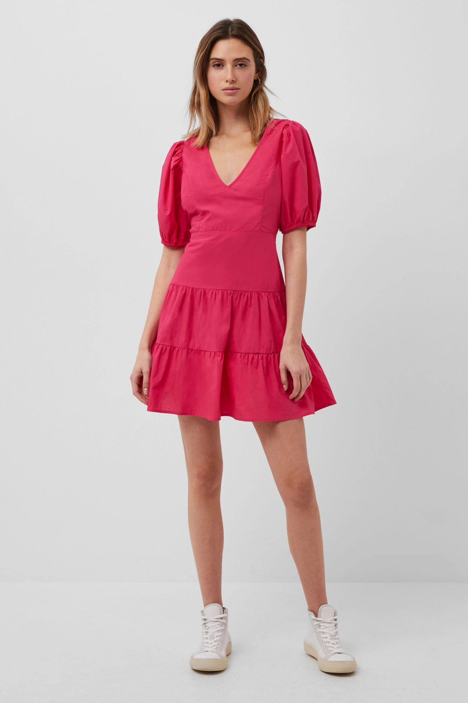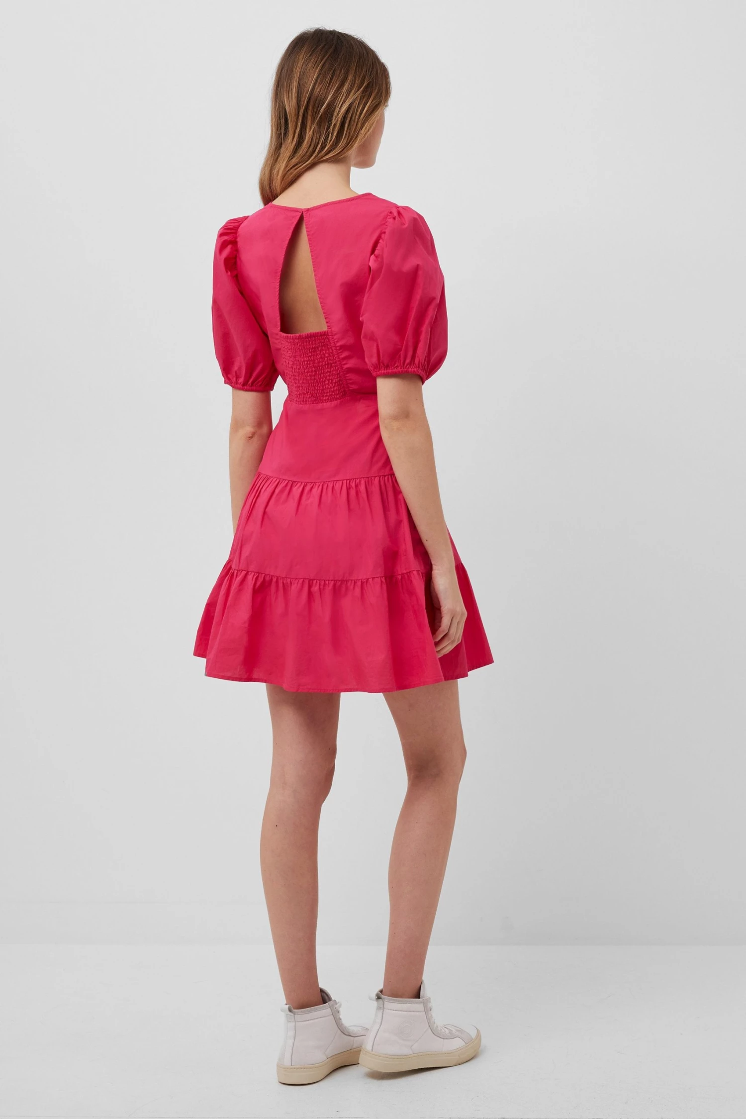The Birch Poplin Puff Sleeve Mini Dress is a piece you’ll keep forever. With a tiered construction and back cut-out, it’s a must-have statement piece.