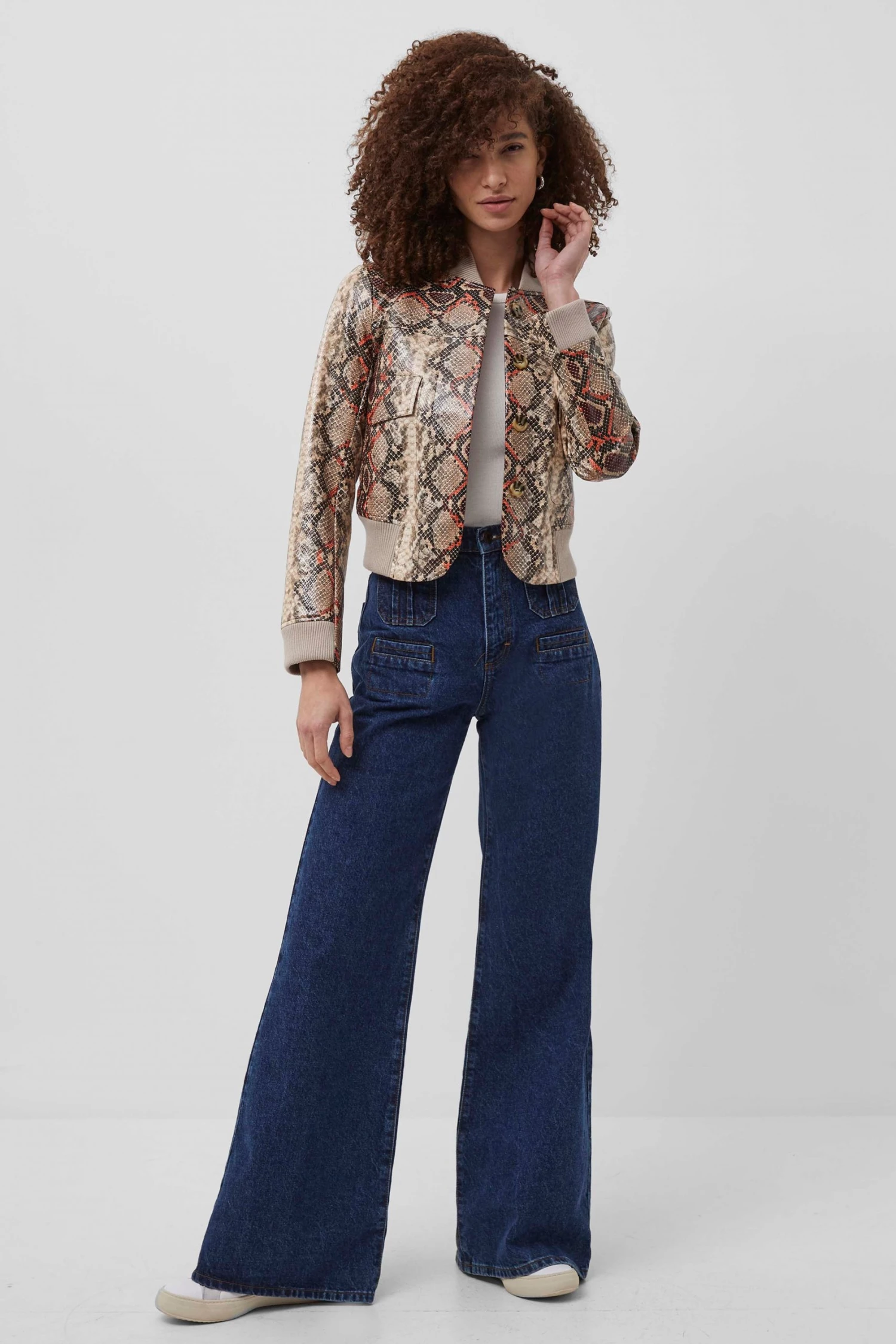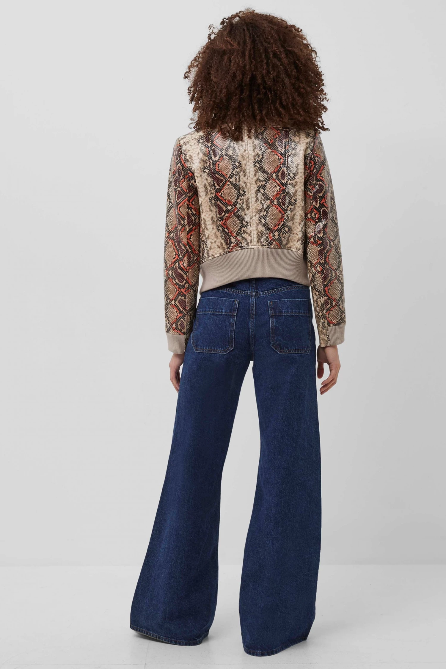 A piece that exudes edgy confidence – that’s our Bonnie Biker Jacket. Elevated with a bold snake print and coated finish, refined silhouette and covered zip fastening.