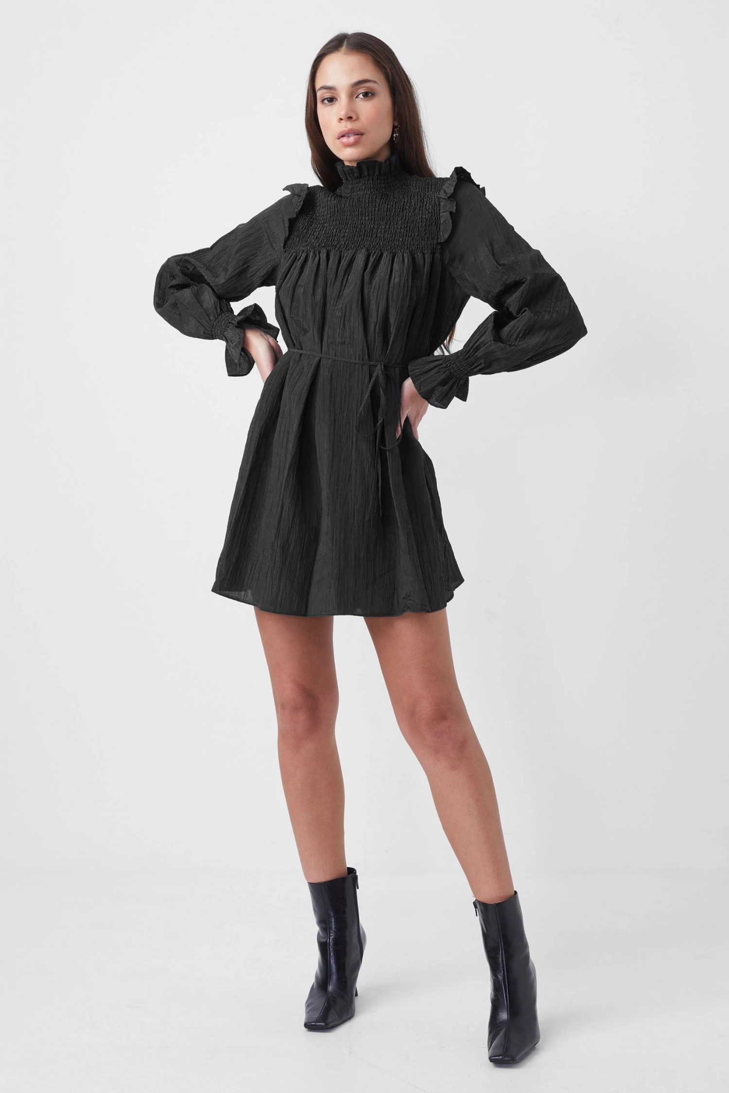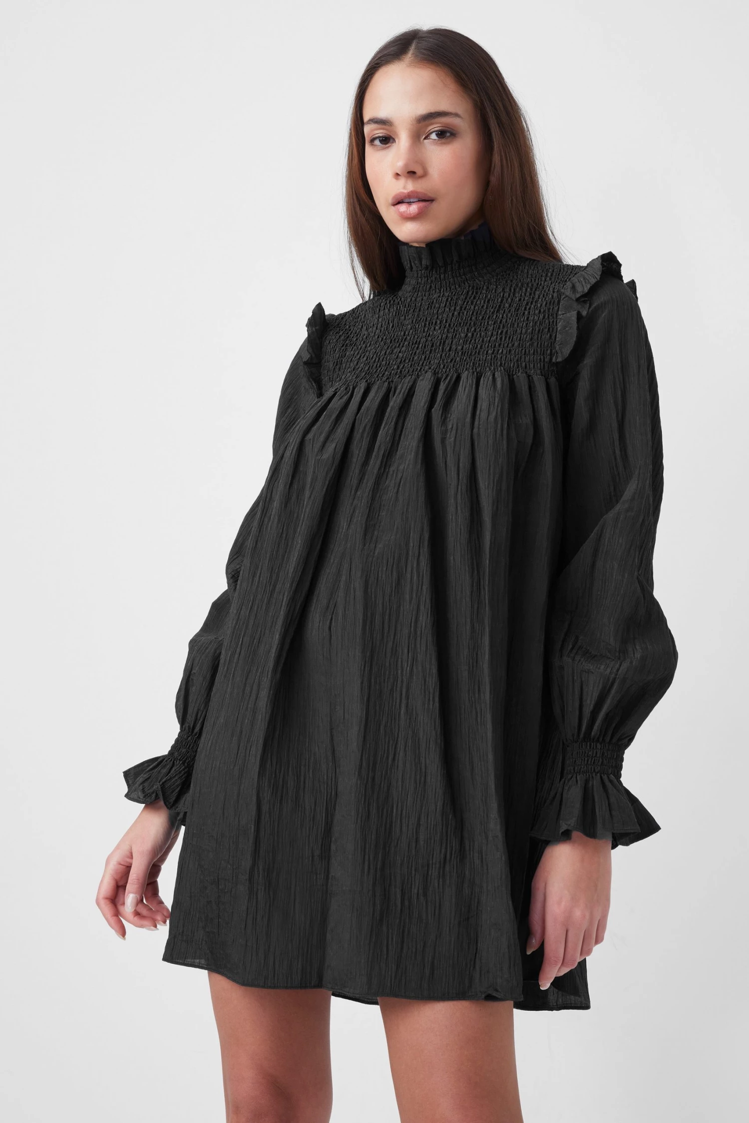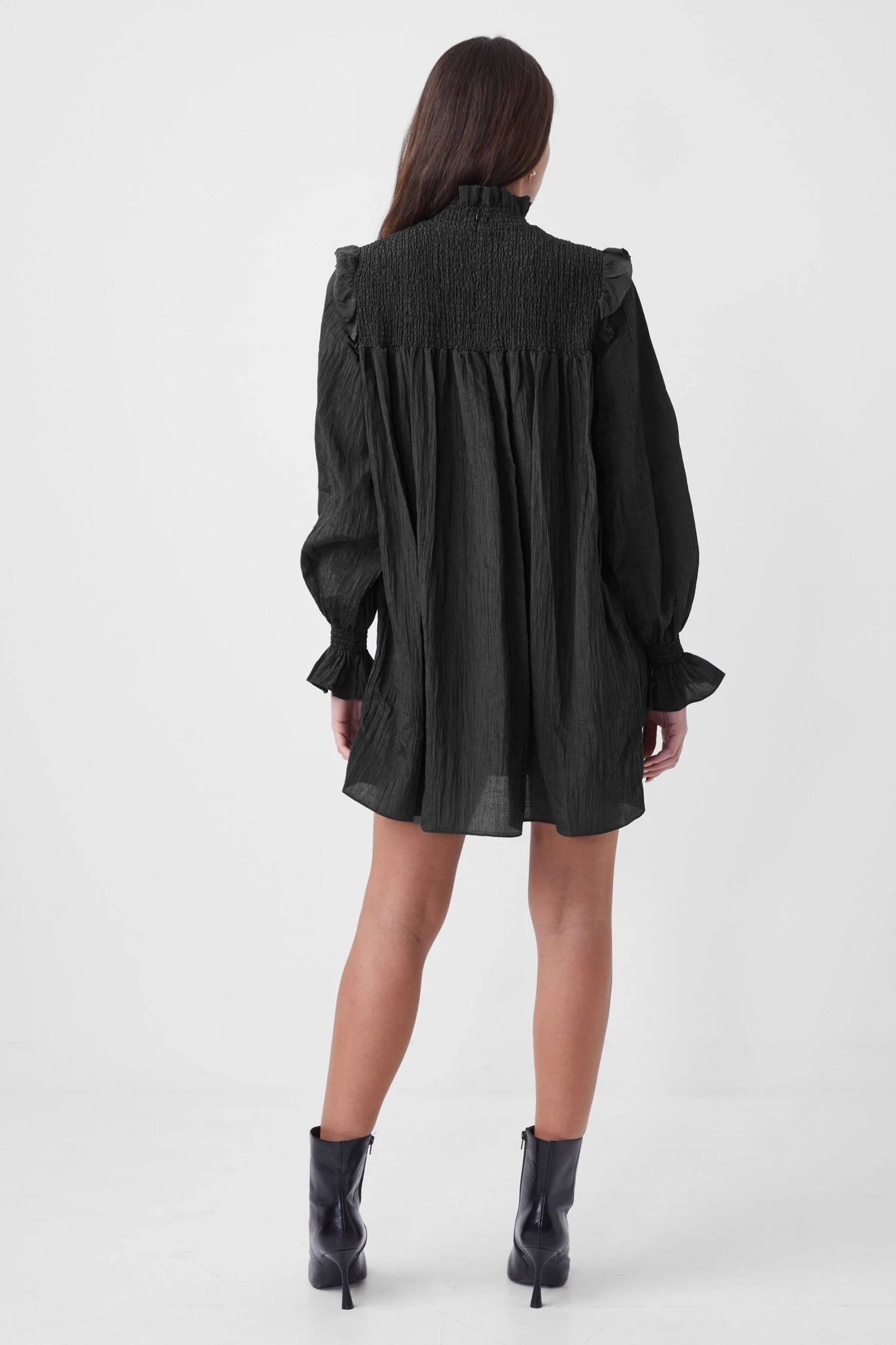 Exude drama with every step when wearing the Boza Crinkle Smocked Mini Dress. The alluring piece features an abundance of ruffled accents and a smocked bodice.