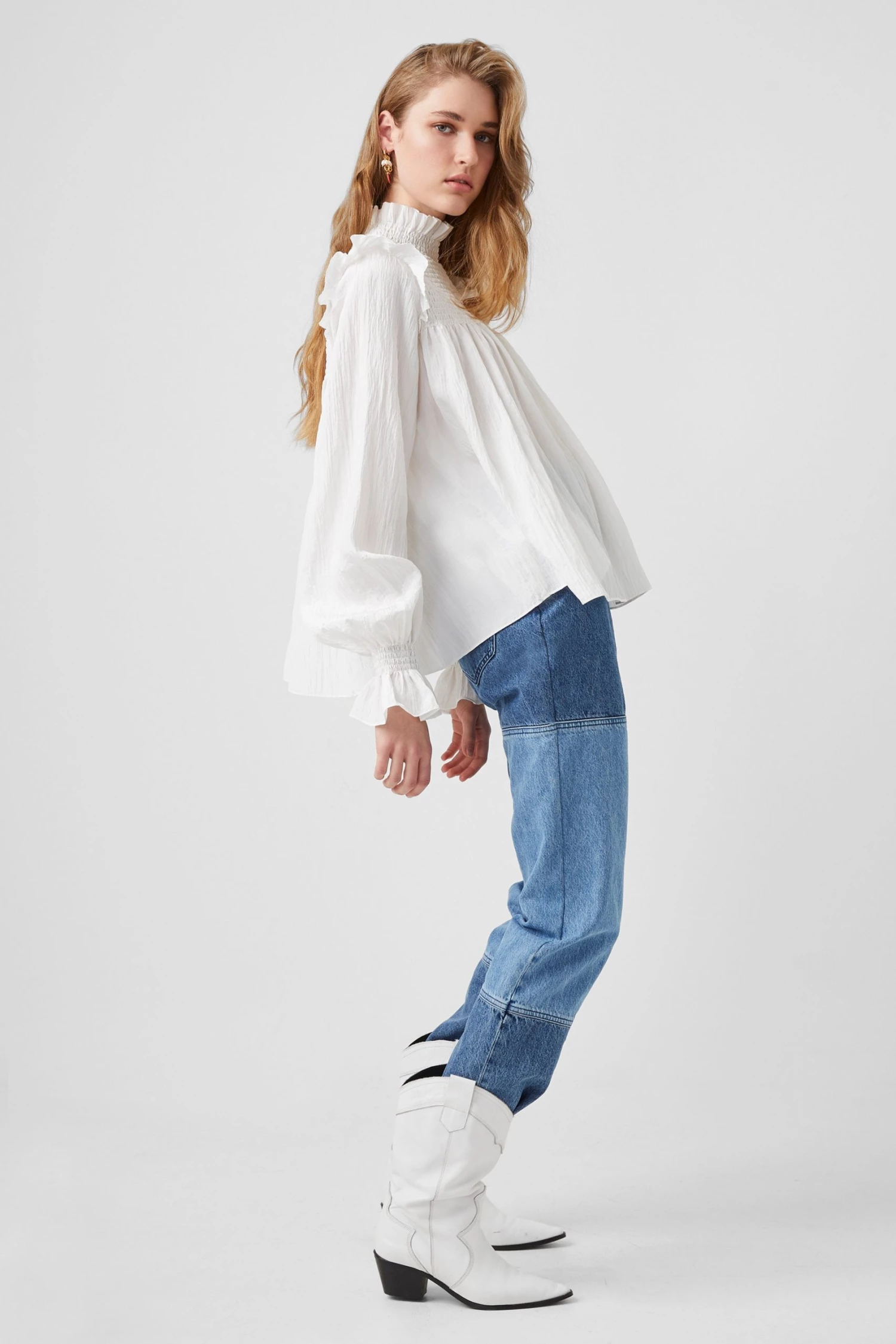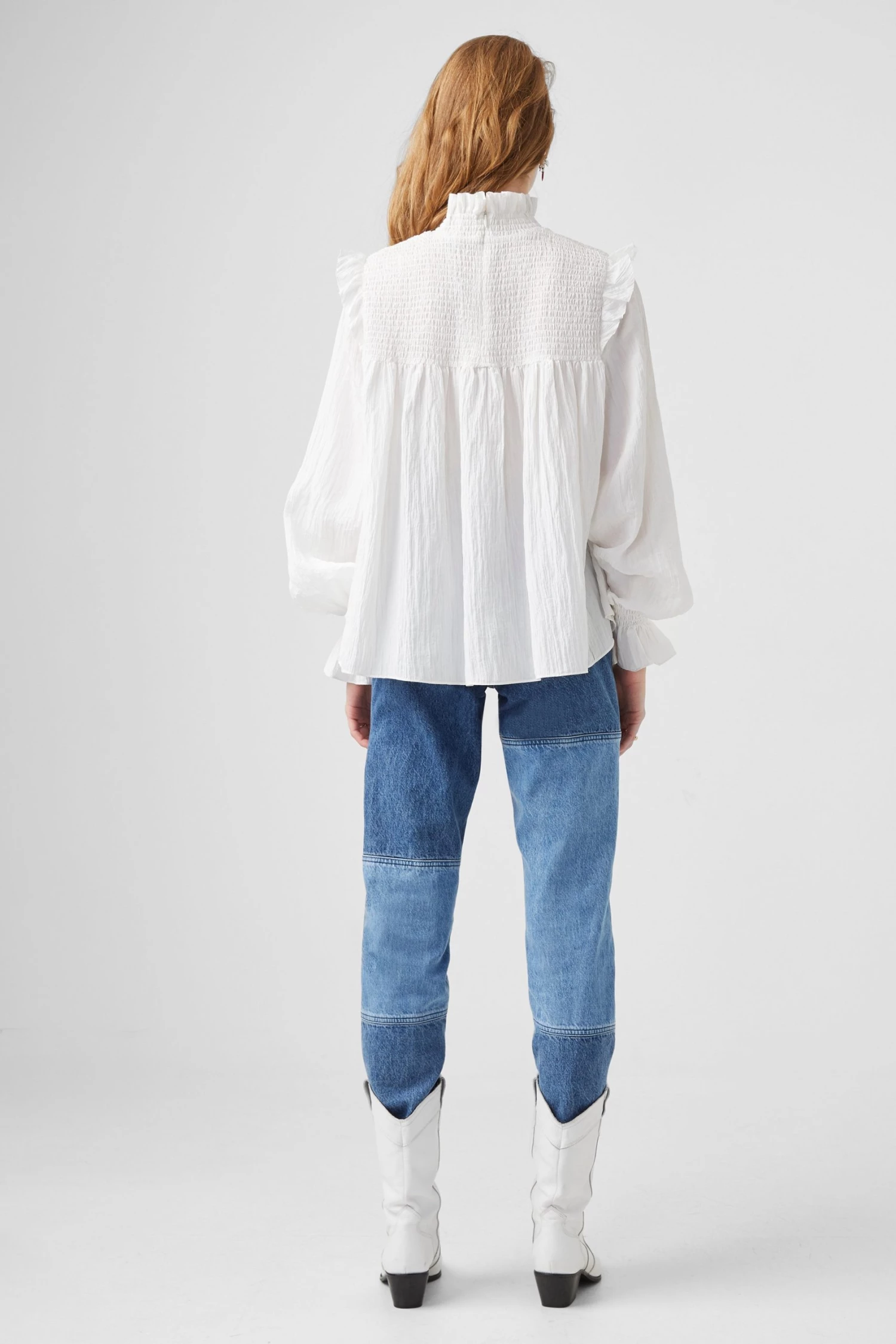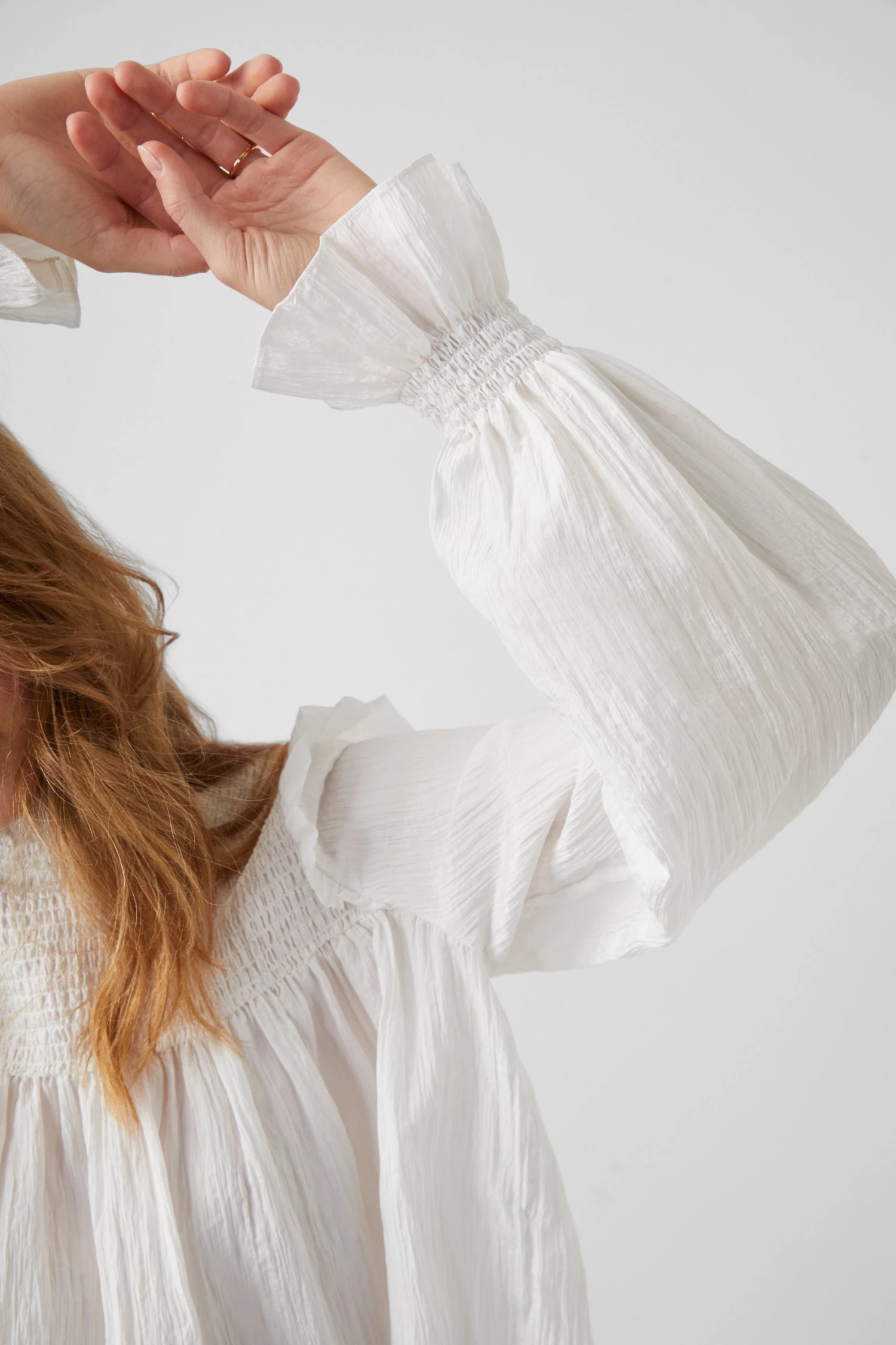 Channel the ever-essential prairie girl look with the Boza Crinkle Smocked Top. In a crisp, crinkle-effect fabric, it’s decorated with ruffled accents and a smocked panel.