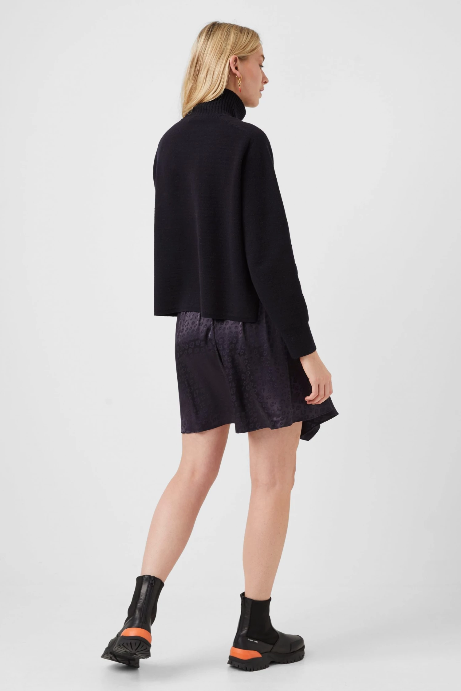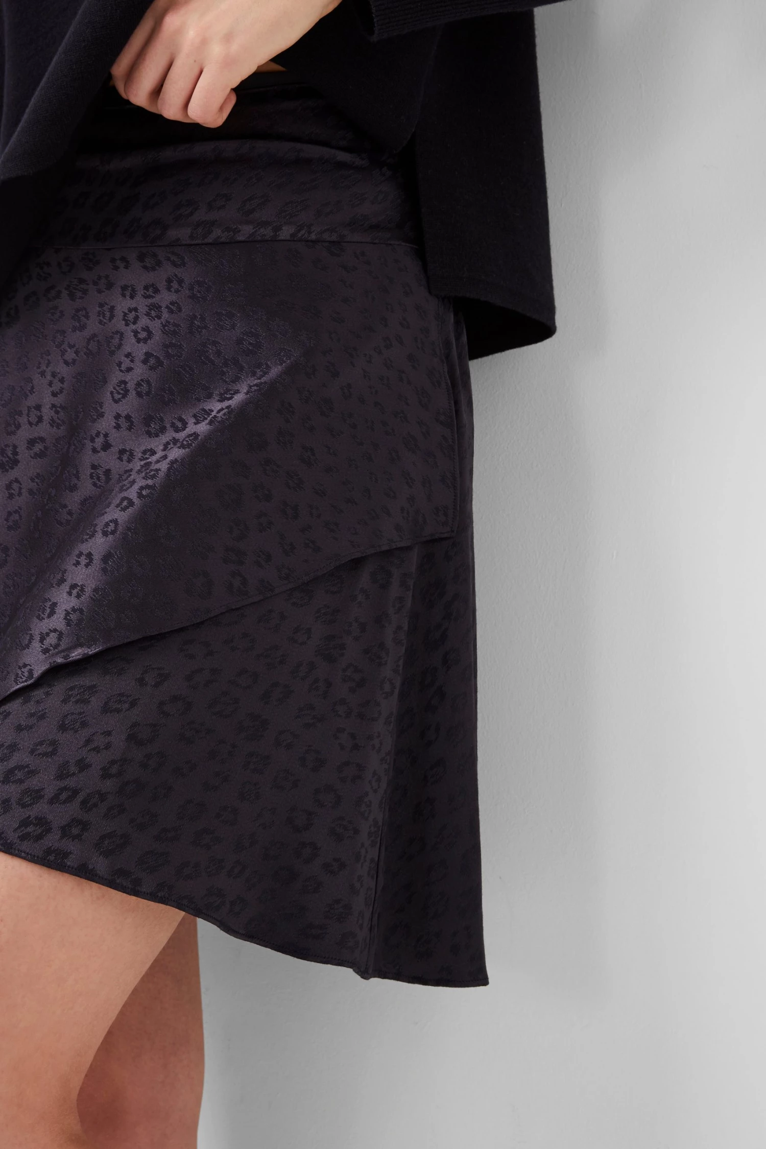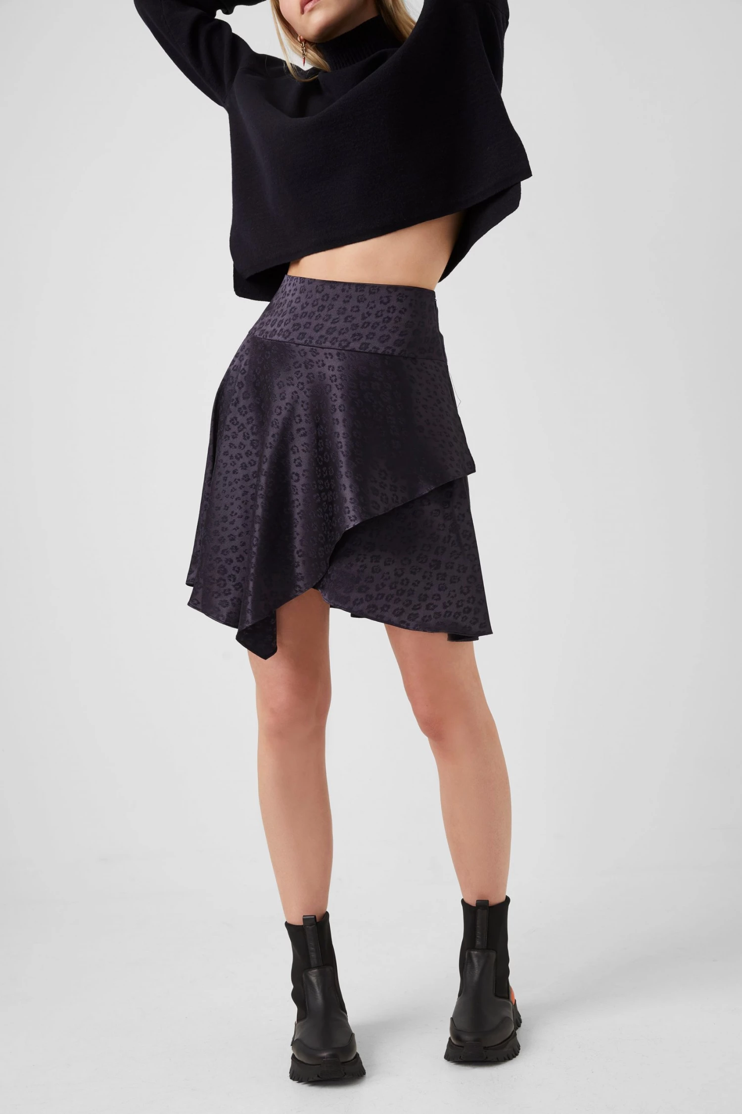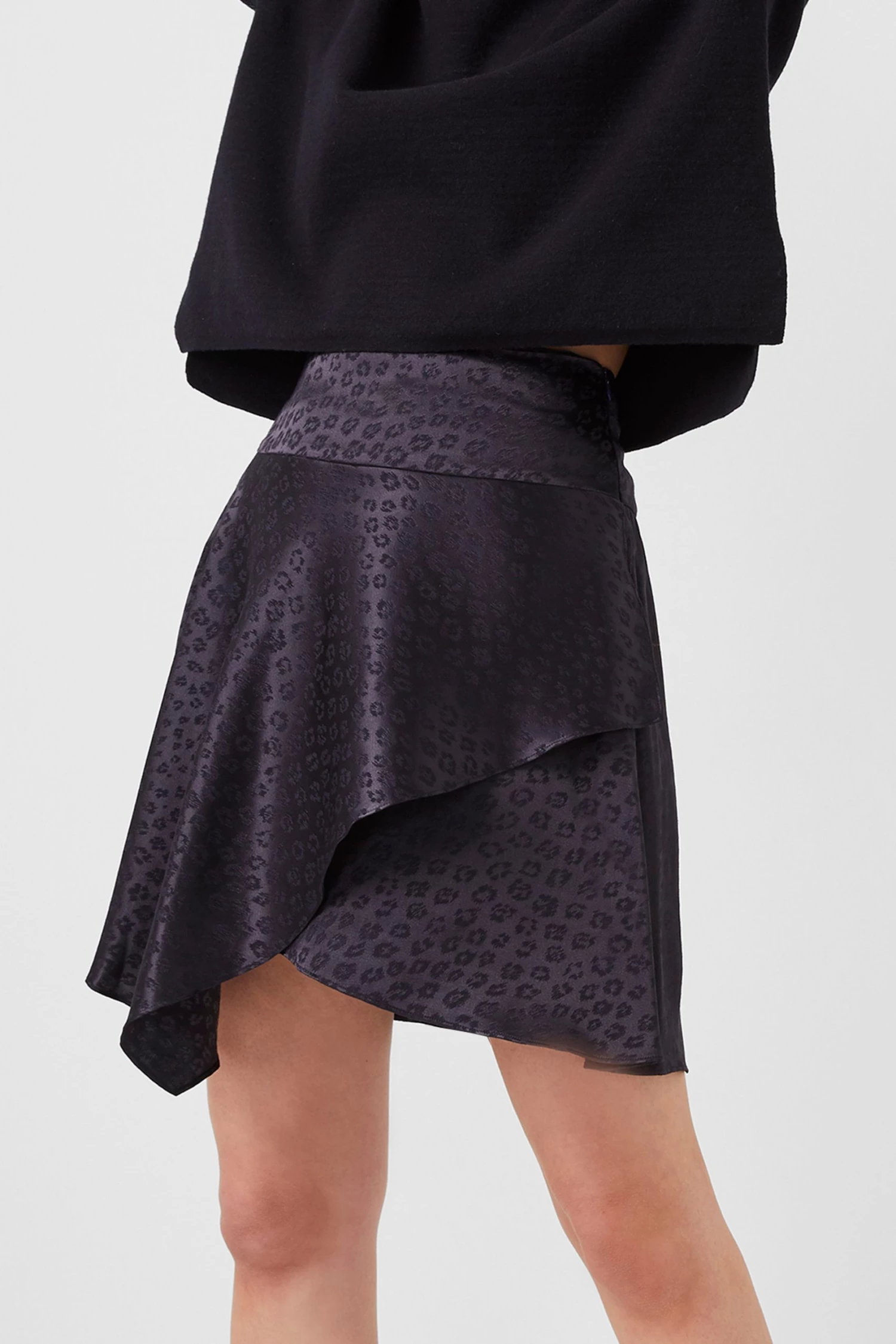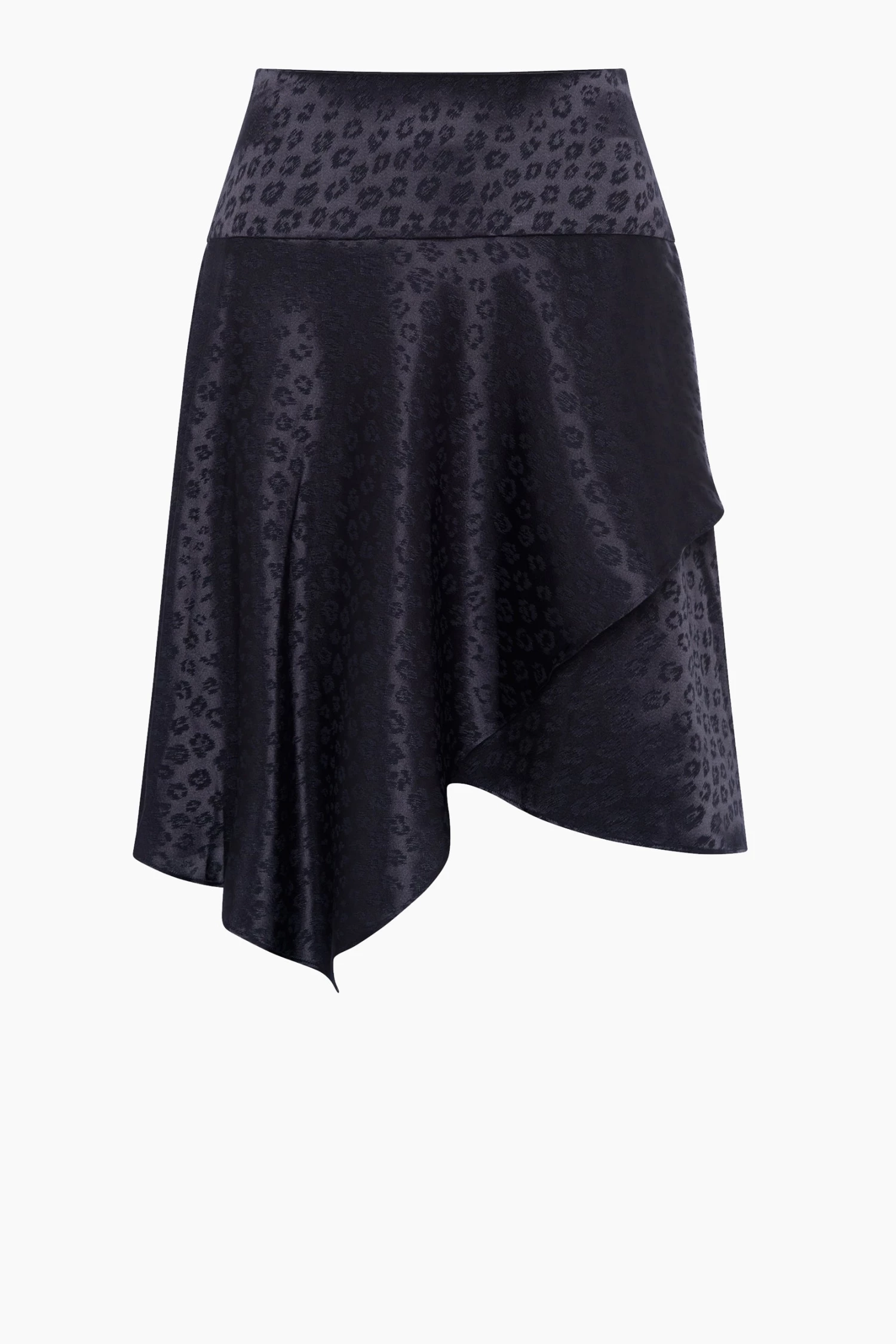 Your new wardrobe hero has arrived and it’s the Boza Drape Satin Dobbie Skirt. Awash with a tonal animal print, it spotlights a satin construction and asymmetric hem.