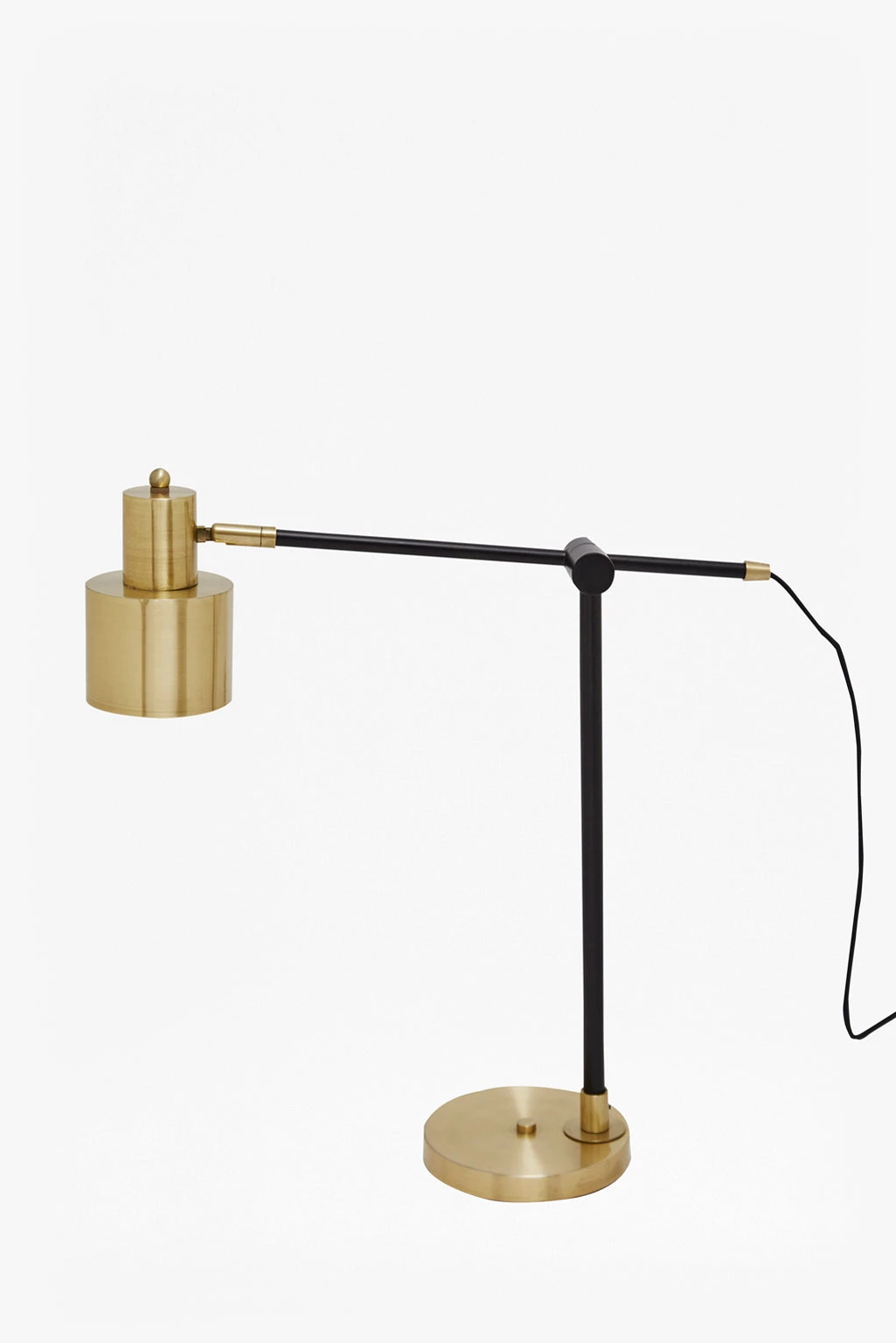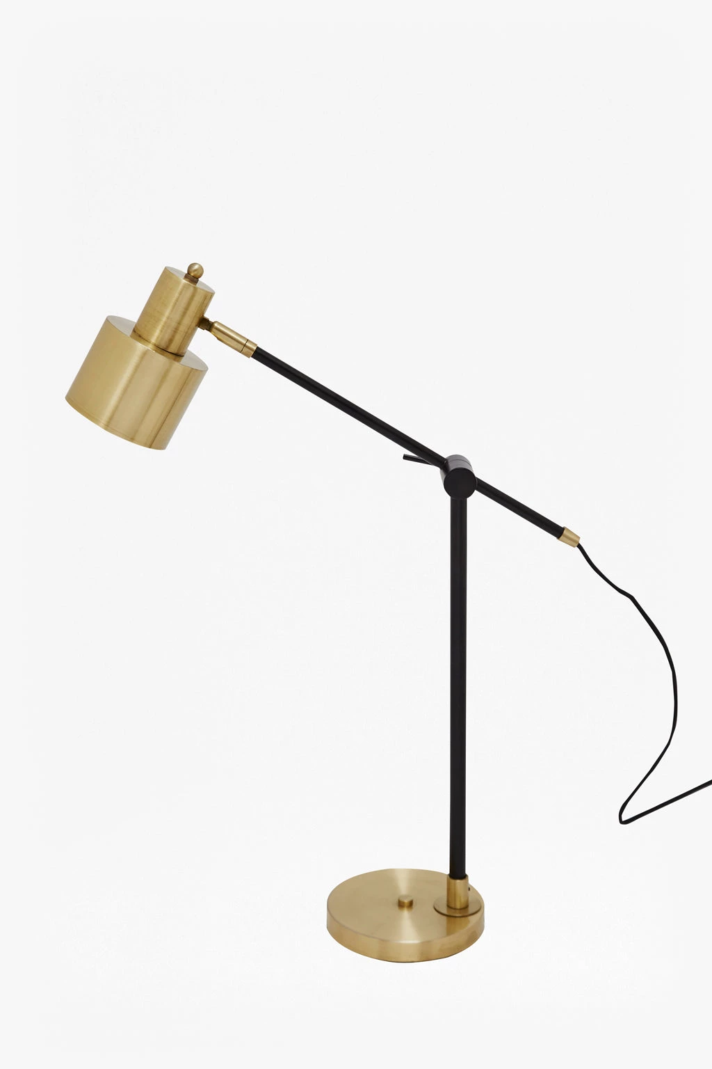 The Brass and Matte Black Table Lamp features polished brass fixtures and industrial stem and neck in a matte black gunmetal. The neck and stem is adjustable to bring a sense of versatility to home lighting without compromising on style. For a sleeker setting, compliment your space with the lampshade’s matching floor lamp.