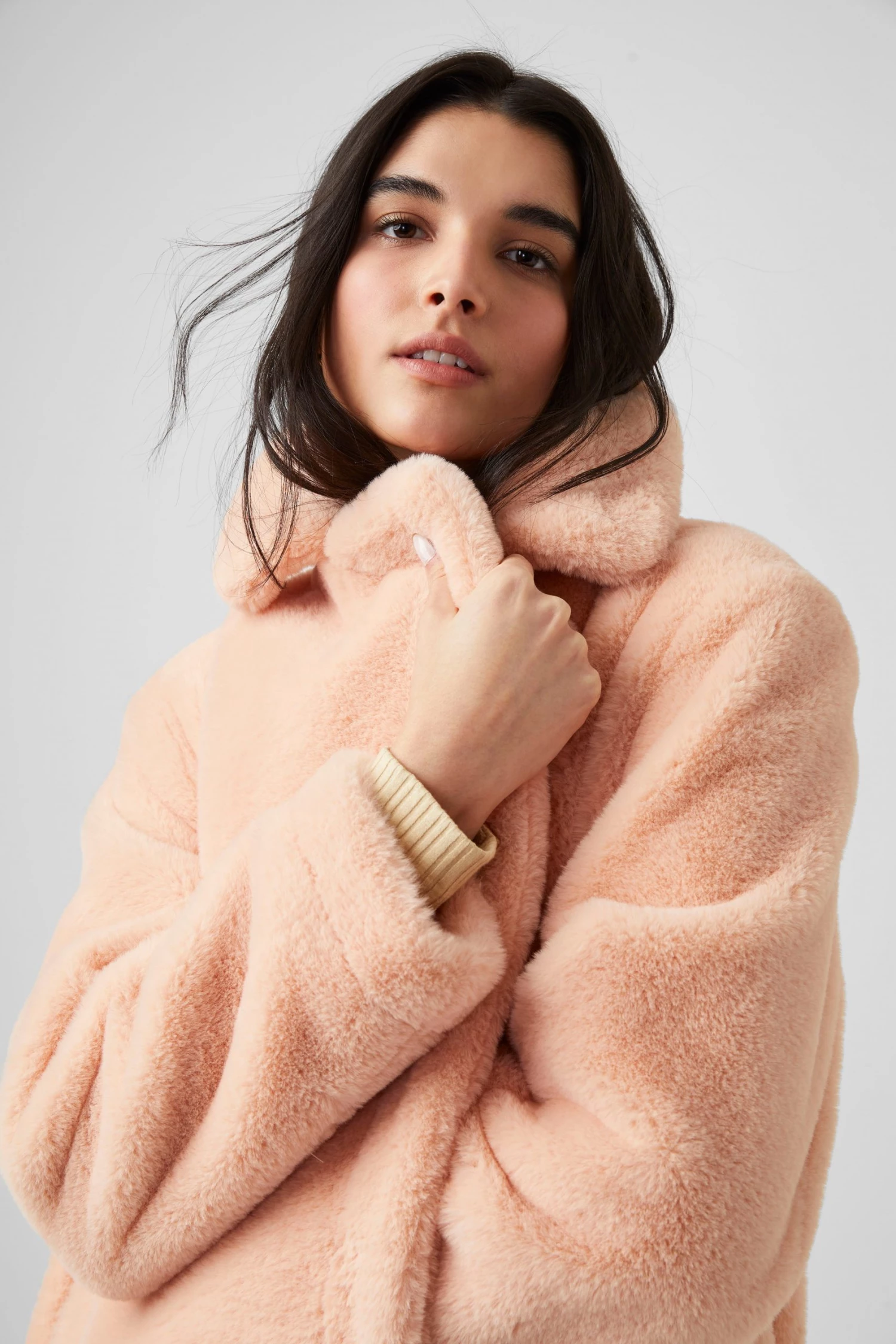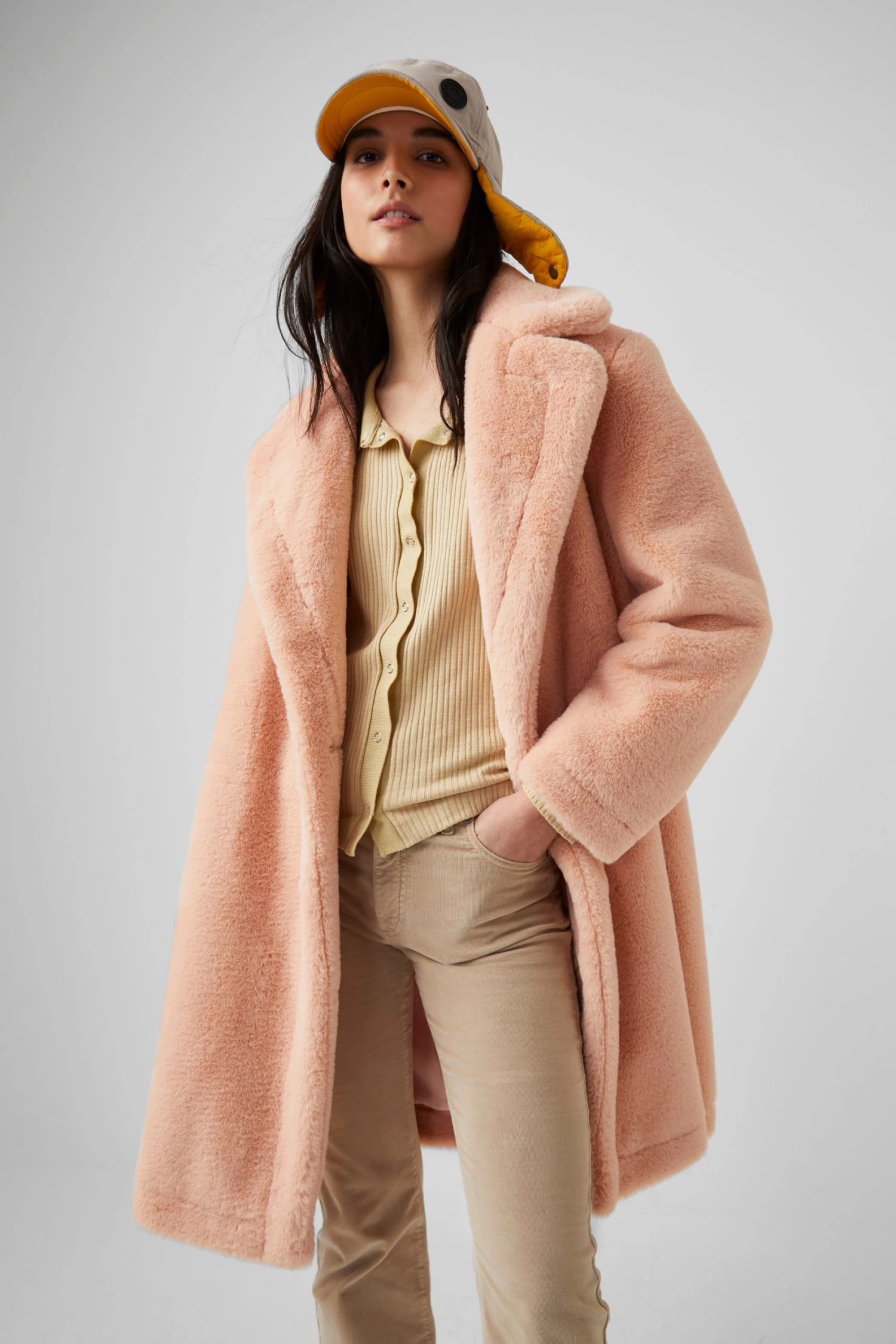 Explore cloud-like softness on wintry strolls with the Buona Faux Fur Long Coat. In plush faux fur, the oversized outerwear style has wide lapels and open front.