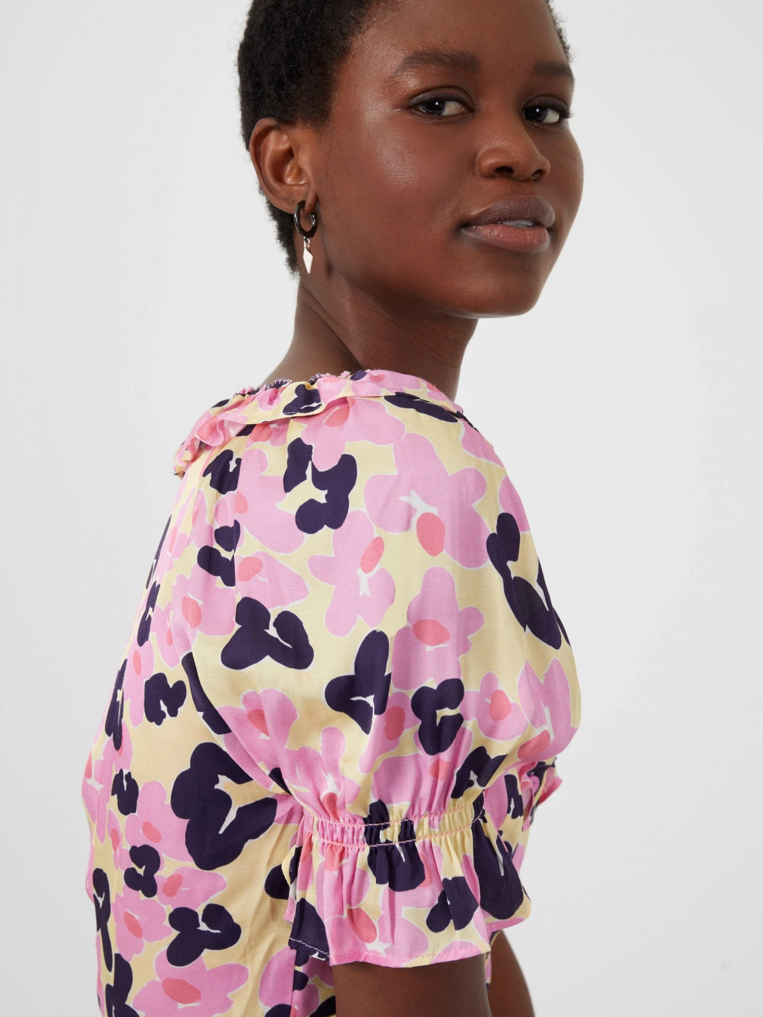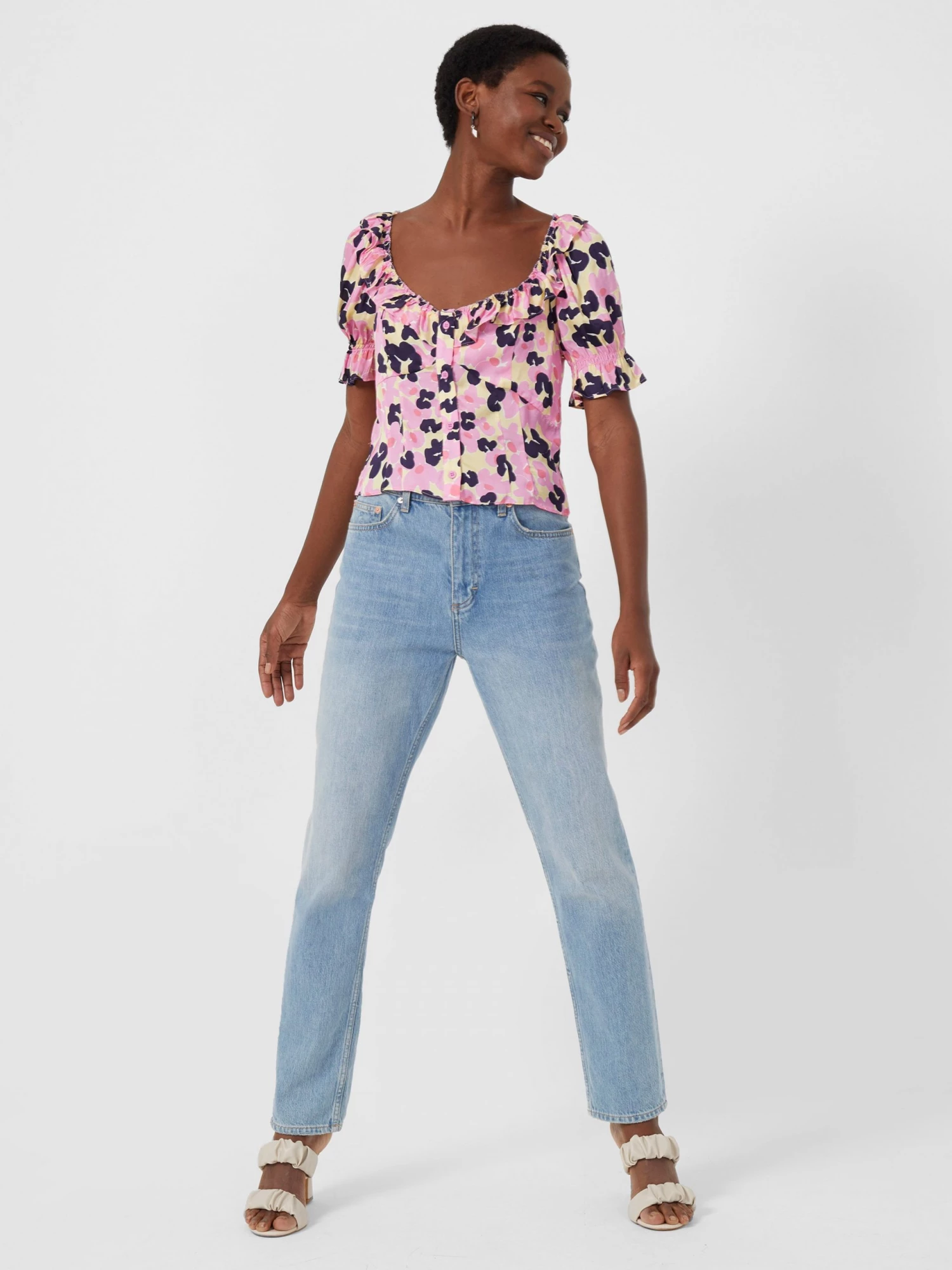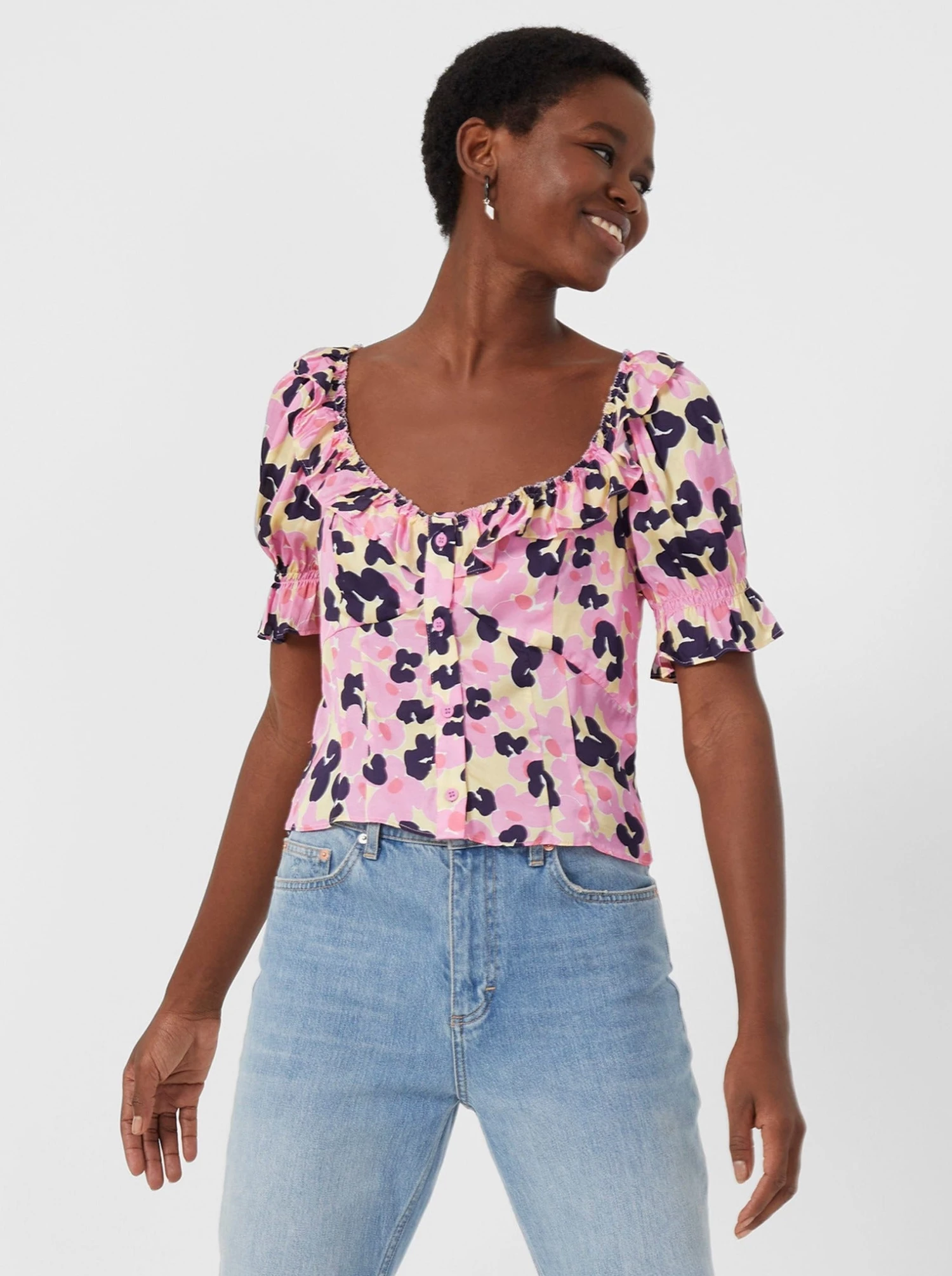 You’ll never want to take the Cassia Elitan Puff-Sleeve Top off. It has a cropped length, pretty floral print and a deep neckline that finishes with buttons.
