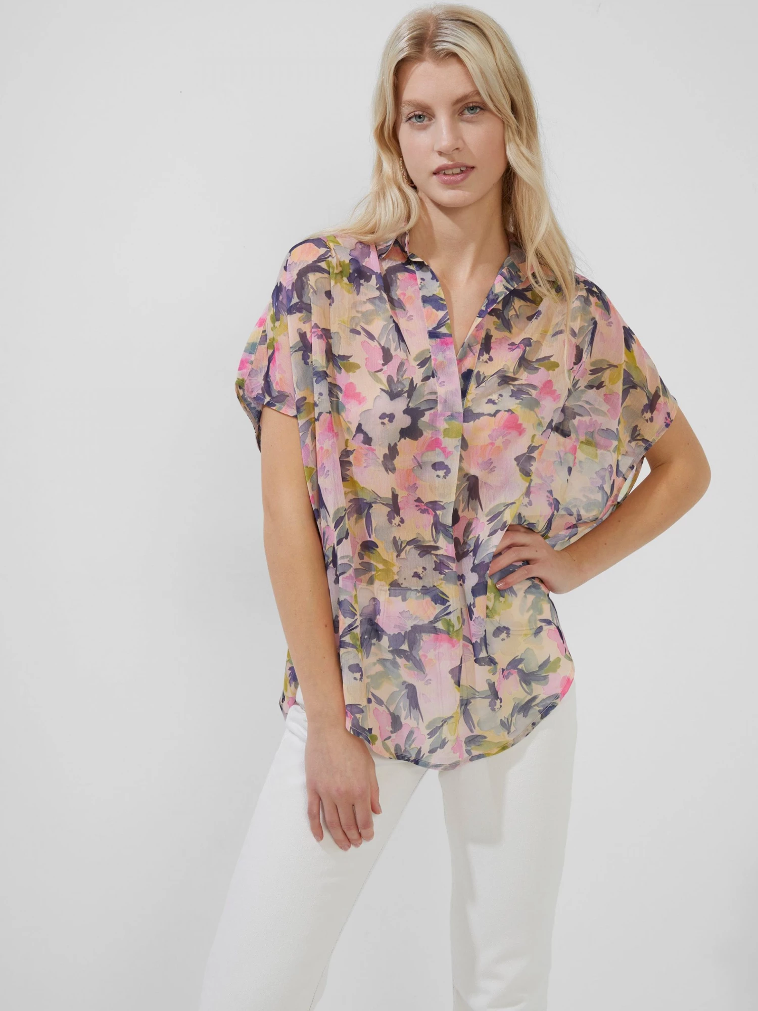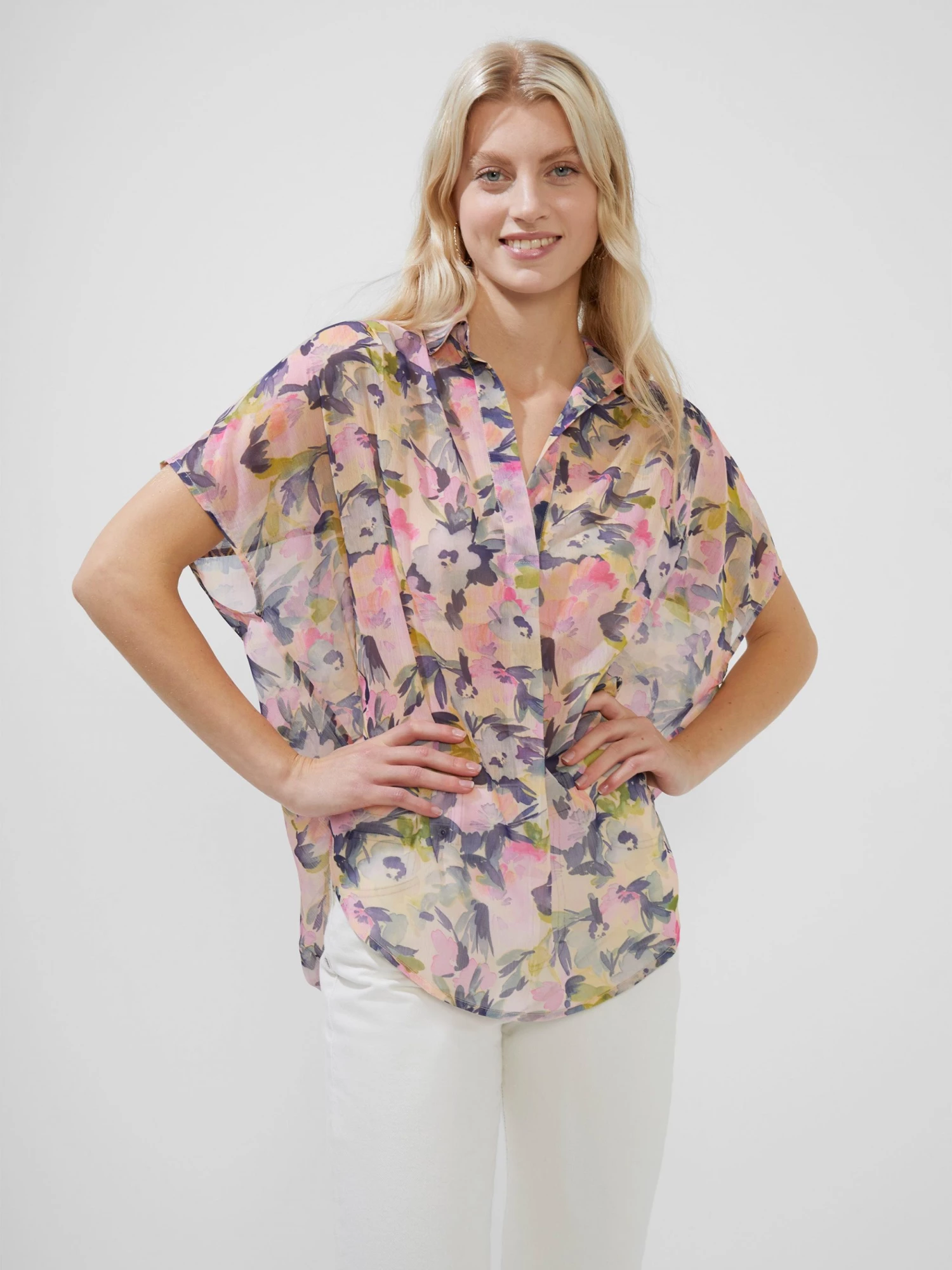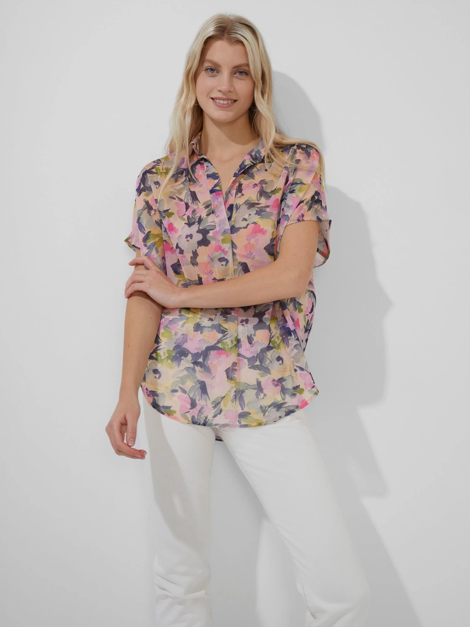 The Catlett Crinkle Pop Over Shirt is a casual work-of-art. A watercolour floral print is a staple this season, whilst a collar, V-neck and relaxed fit has this pop over shirt perfectly balancing smart with casual.