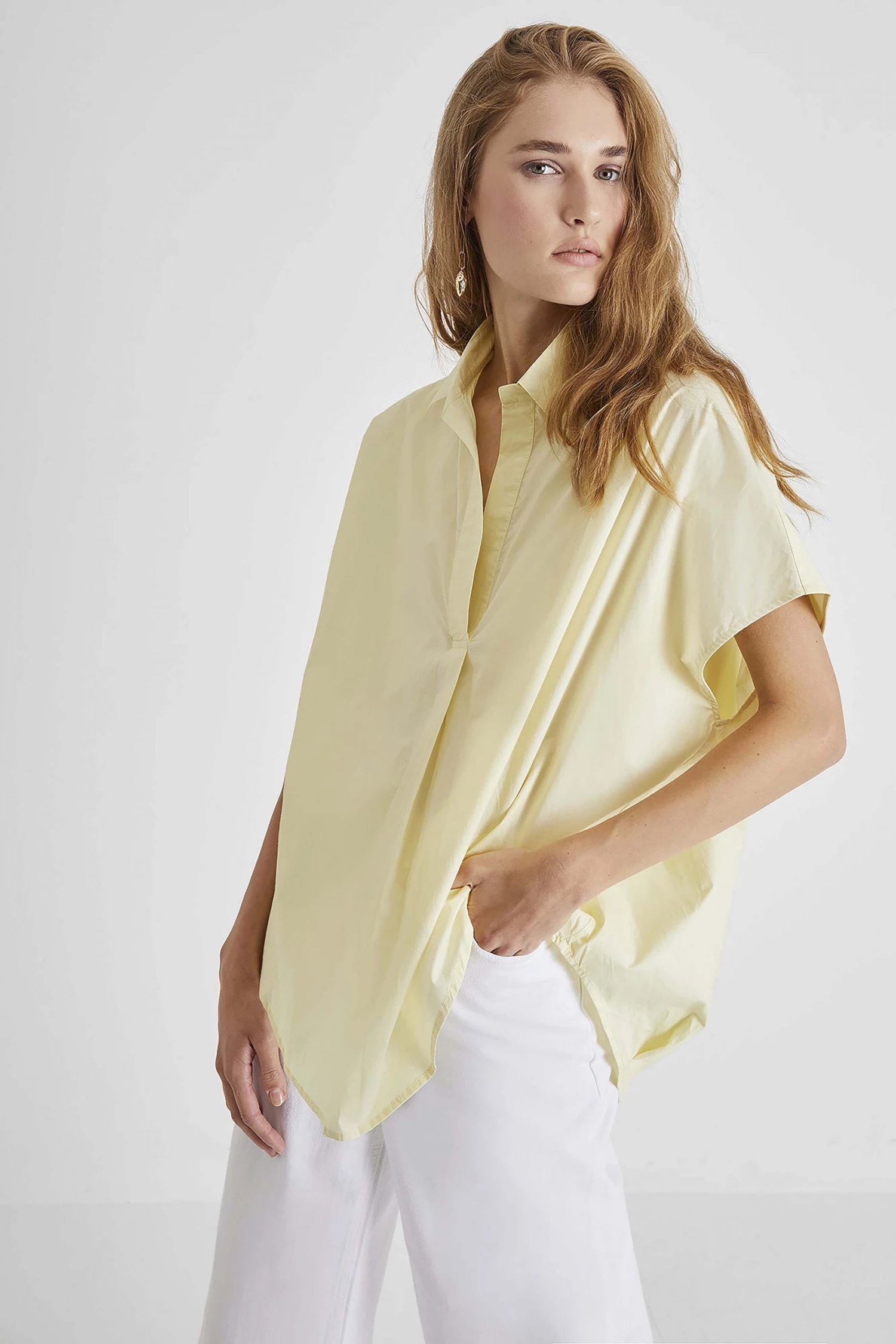 Our Cele Shirt is the perfect piece for both work and play. With a sleek point collar, open placket, oversized fit and crafted from cotton.