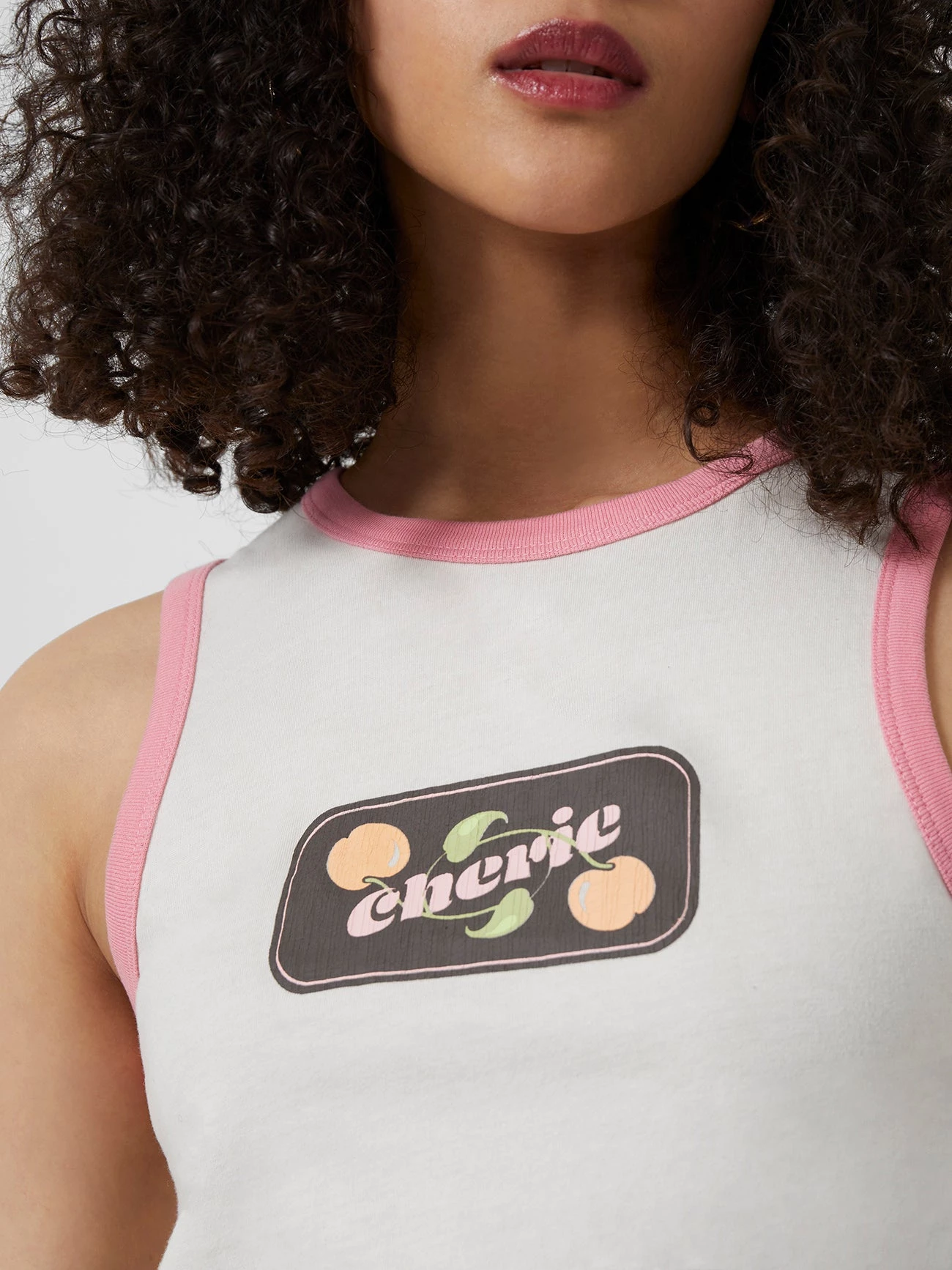 J’adore the retro inspired Cherie Sami Eco Graphic Tank Top. This fun tank top ticks all the boxes, with a contrasting racer edges upon the crew neckline and short sleeves, a cropped fit and stylish cherie graphic print.
