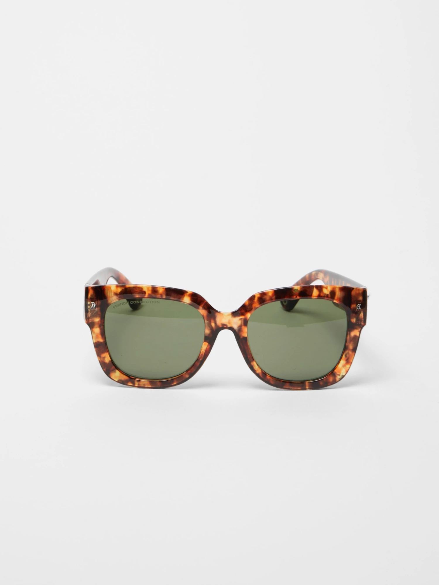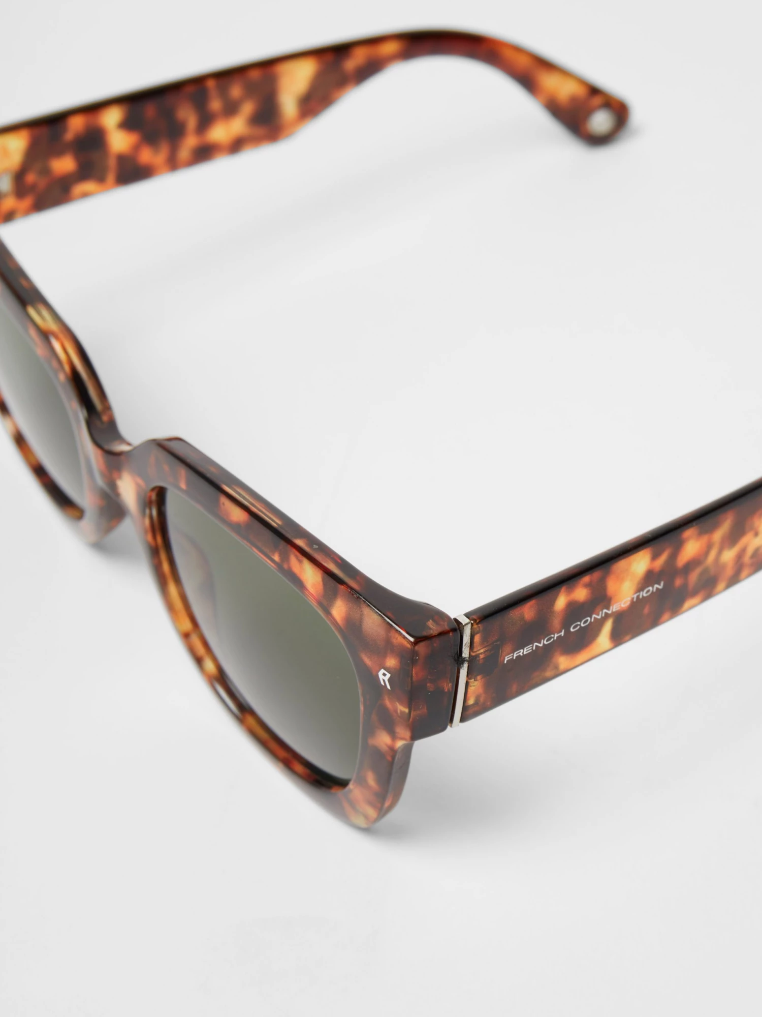Chunky yet funky, these Chunky Glamour Sunglasses offer glamour for summer city breaks to seaside strolls. The wellington frame shape stands-out with its unique faux tortoise shell design, complete with French Collection logo upon the frames and arm bar.