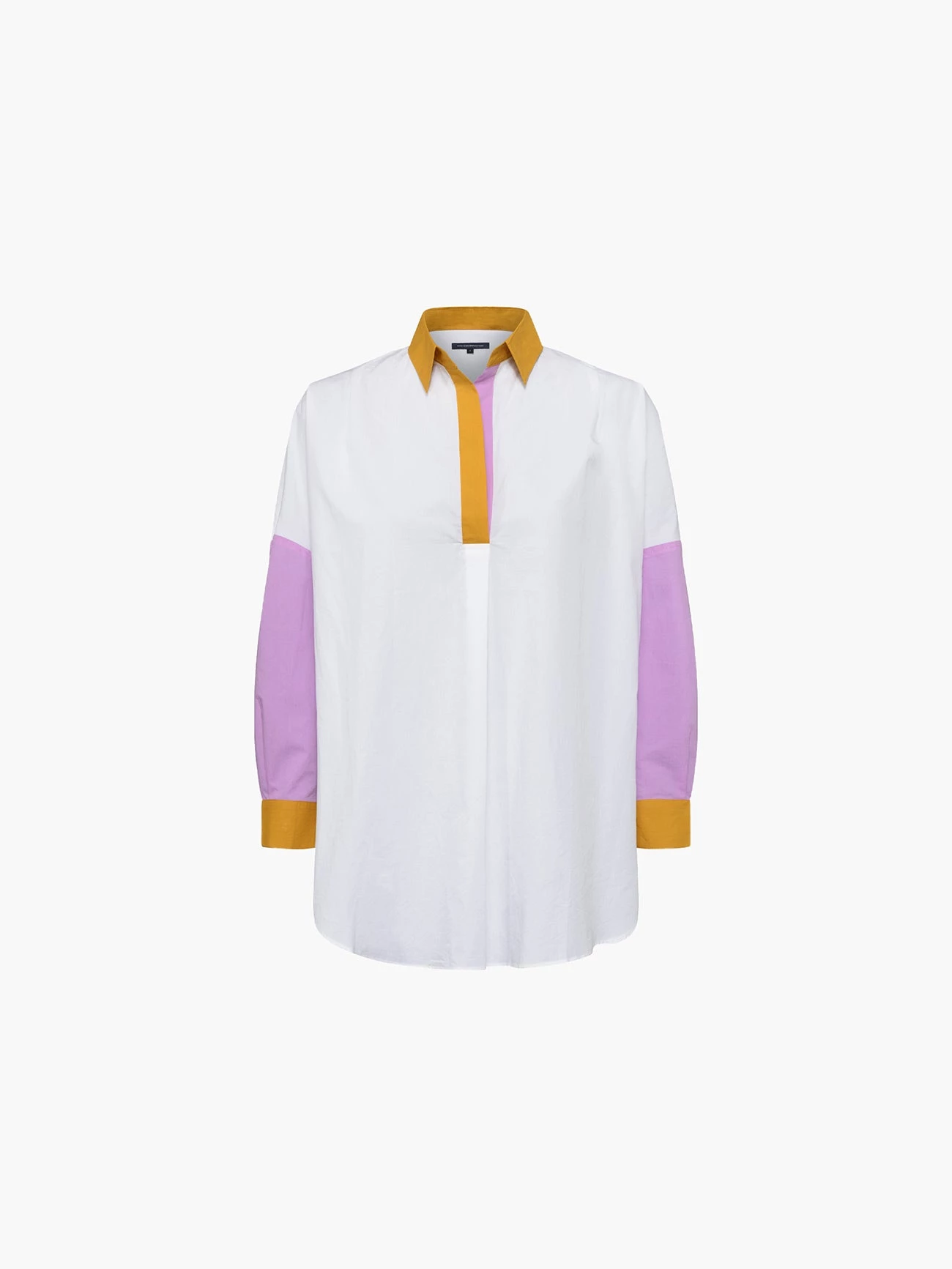 Elevate your aesthetic with this season’s colourful iteration of our bestselling Rhodes shirt. Crafted from organic cotton with a point collar, open placket, cropped sleeves and a longline fit.
