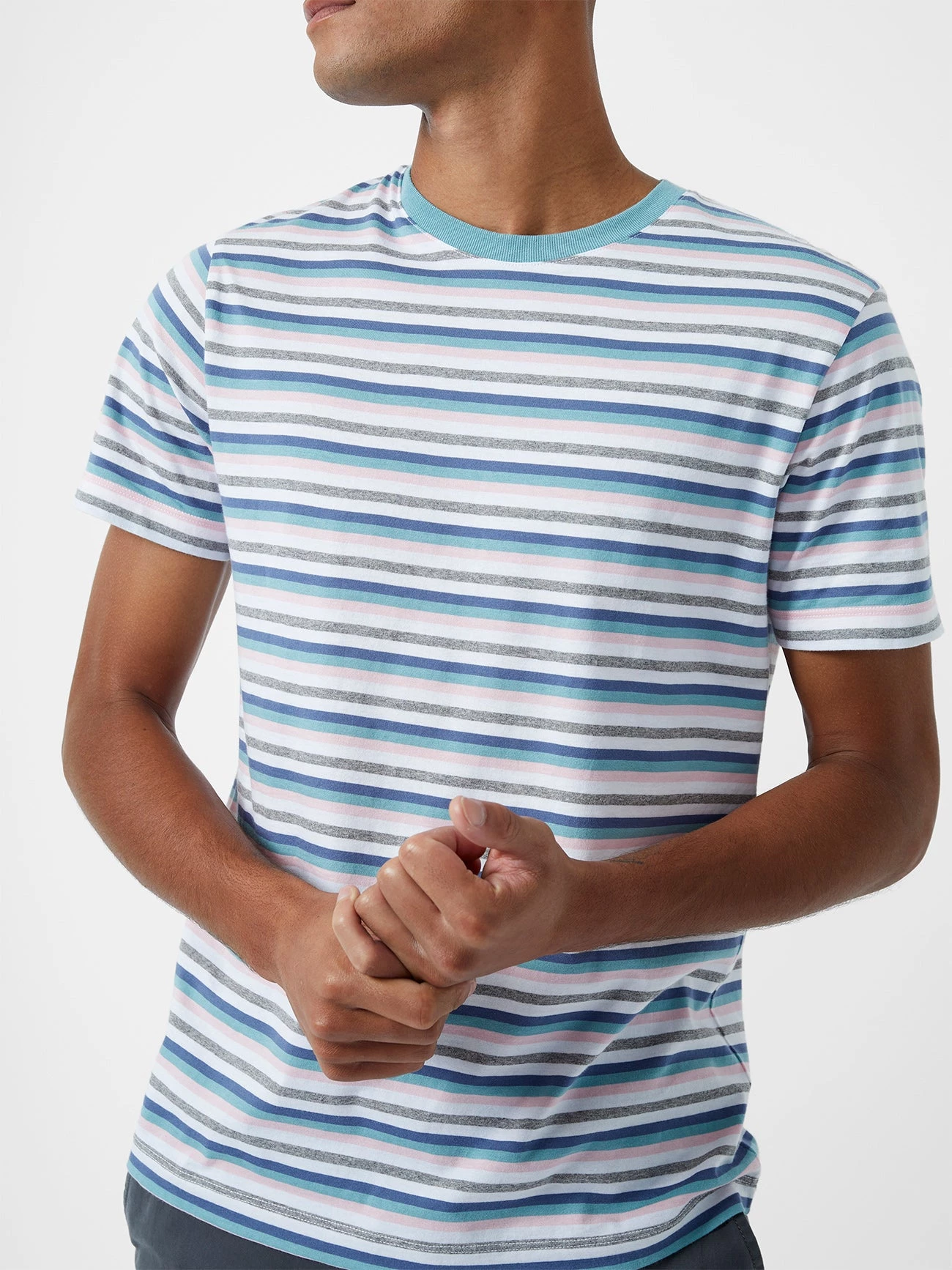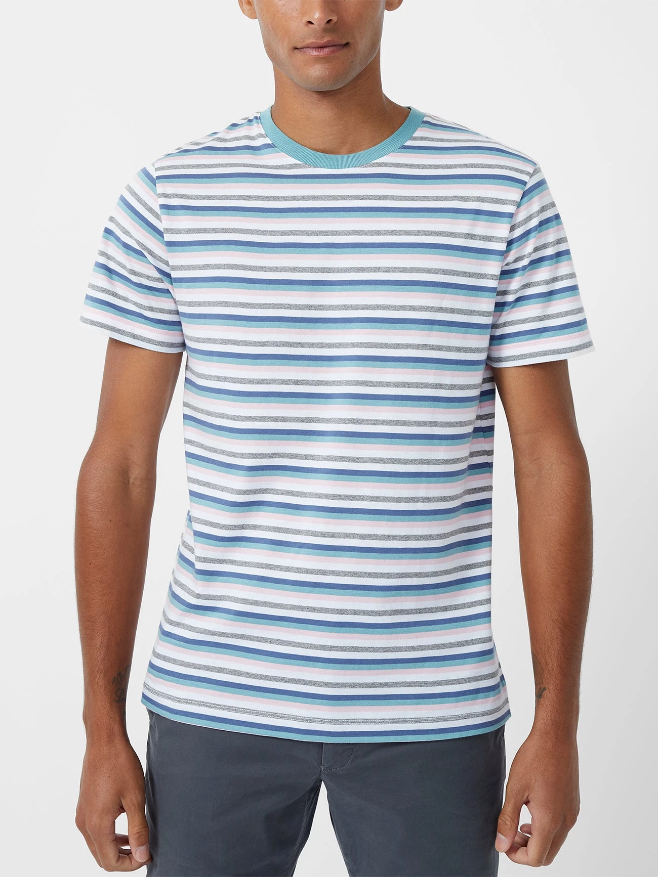 A zebra never changes its stripes, but we think if it saw our Compact Stripe T-Shirt it would reconsider. The traditional t-shirt silhouette with a crew neckline and short sleeves presents a compact stripe pattern in gradient hues.