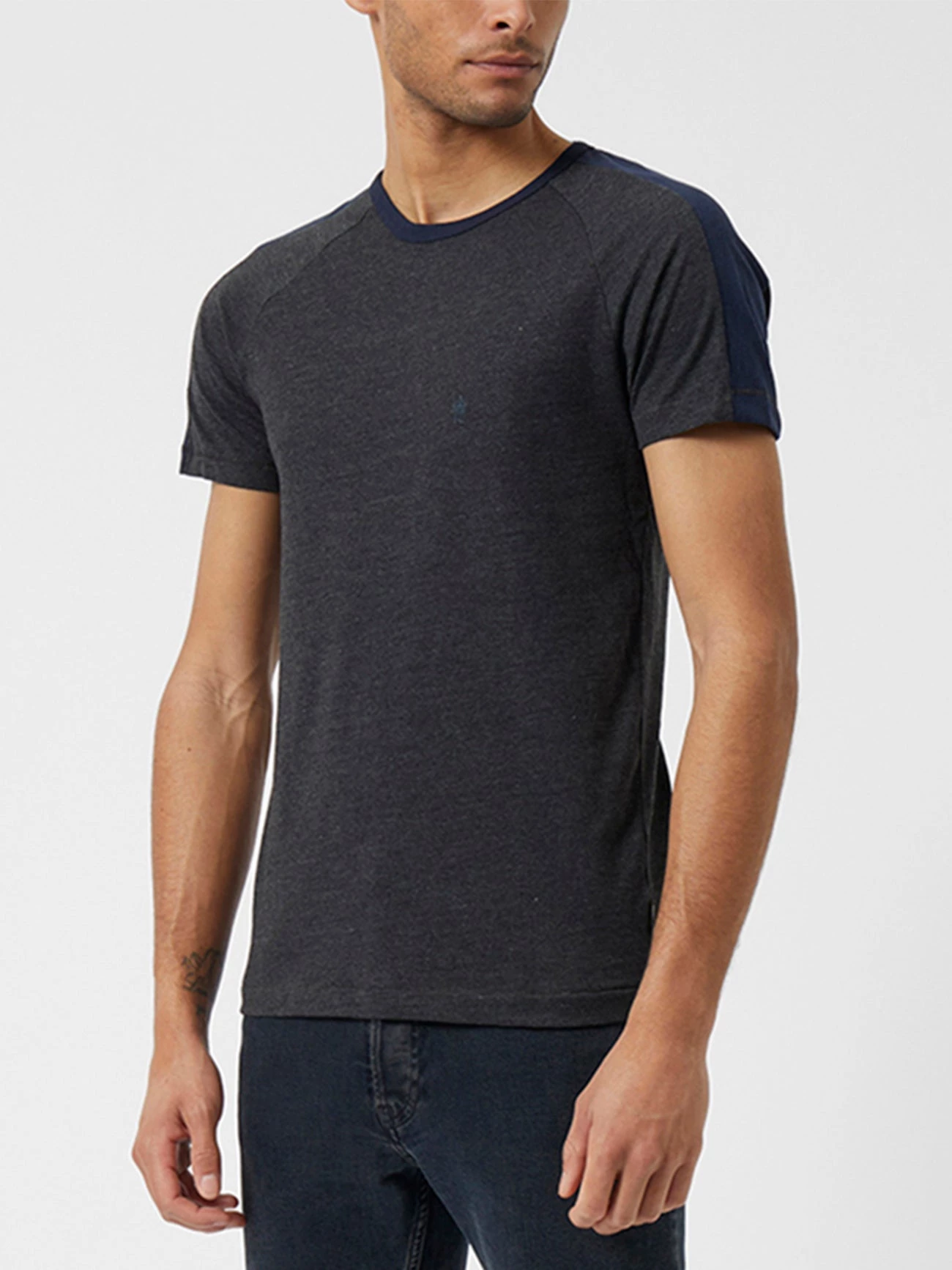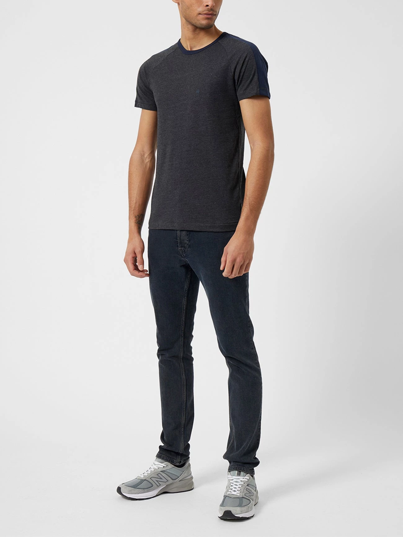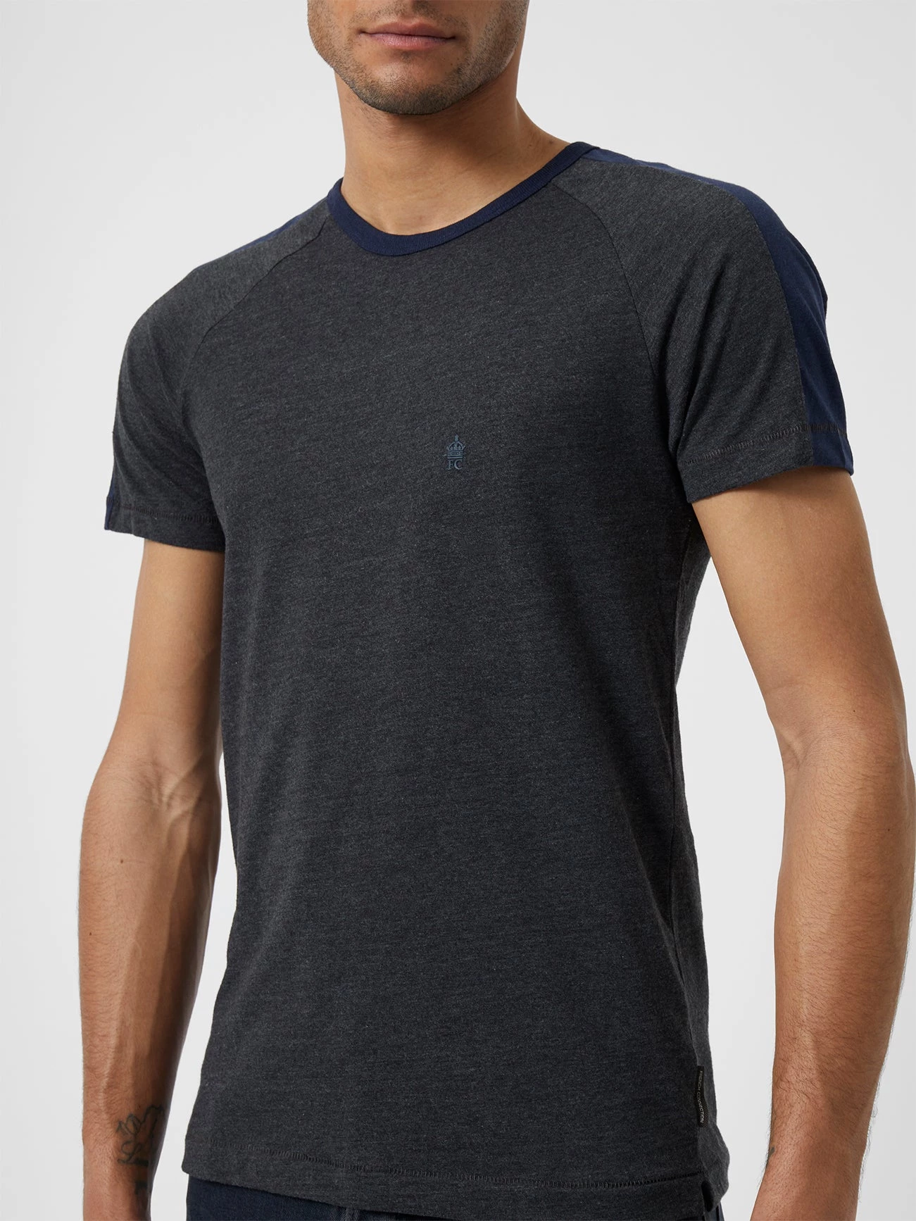 We crown the Contrasting Shoulder T-Shirt as our new favourite casual go-to top. The minimalist design of this t-shirt partners a round neckline and short sleeves with a French Connection crown emblem and contrasting colour stripe across the shoulders.