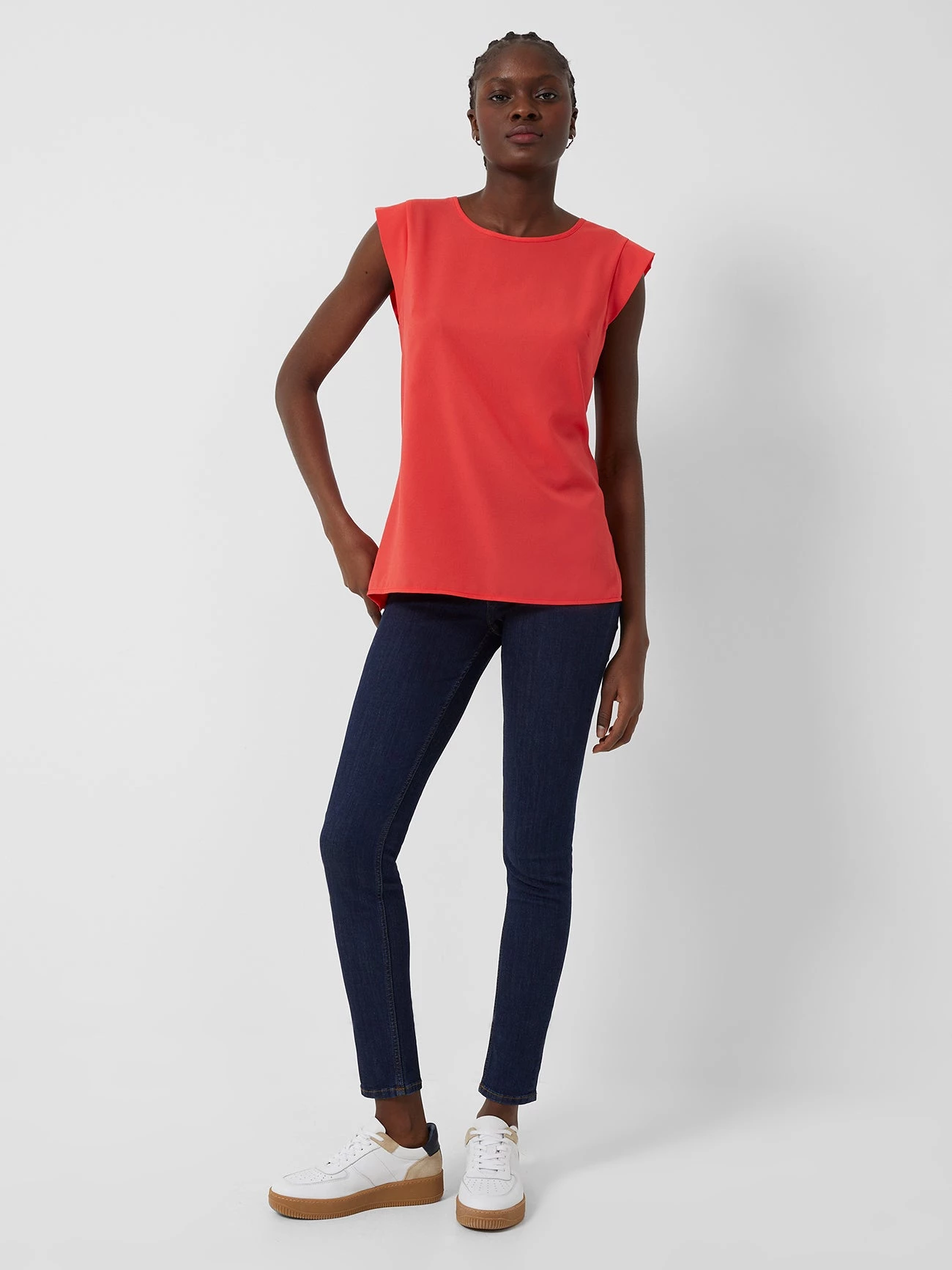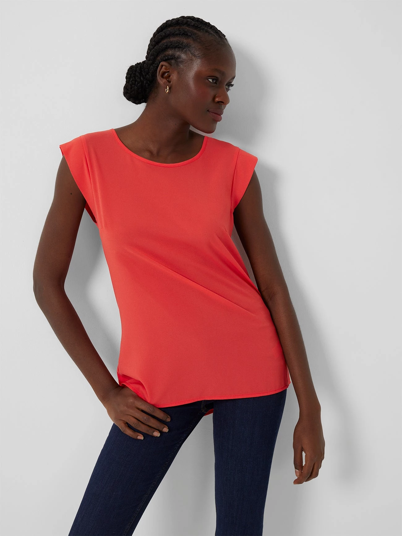 Can’t decide between short and no sleeves? The Crepe Light Cap-Sleeve Top is a casual style with round neckline and just-the-right-length sleeves.