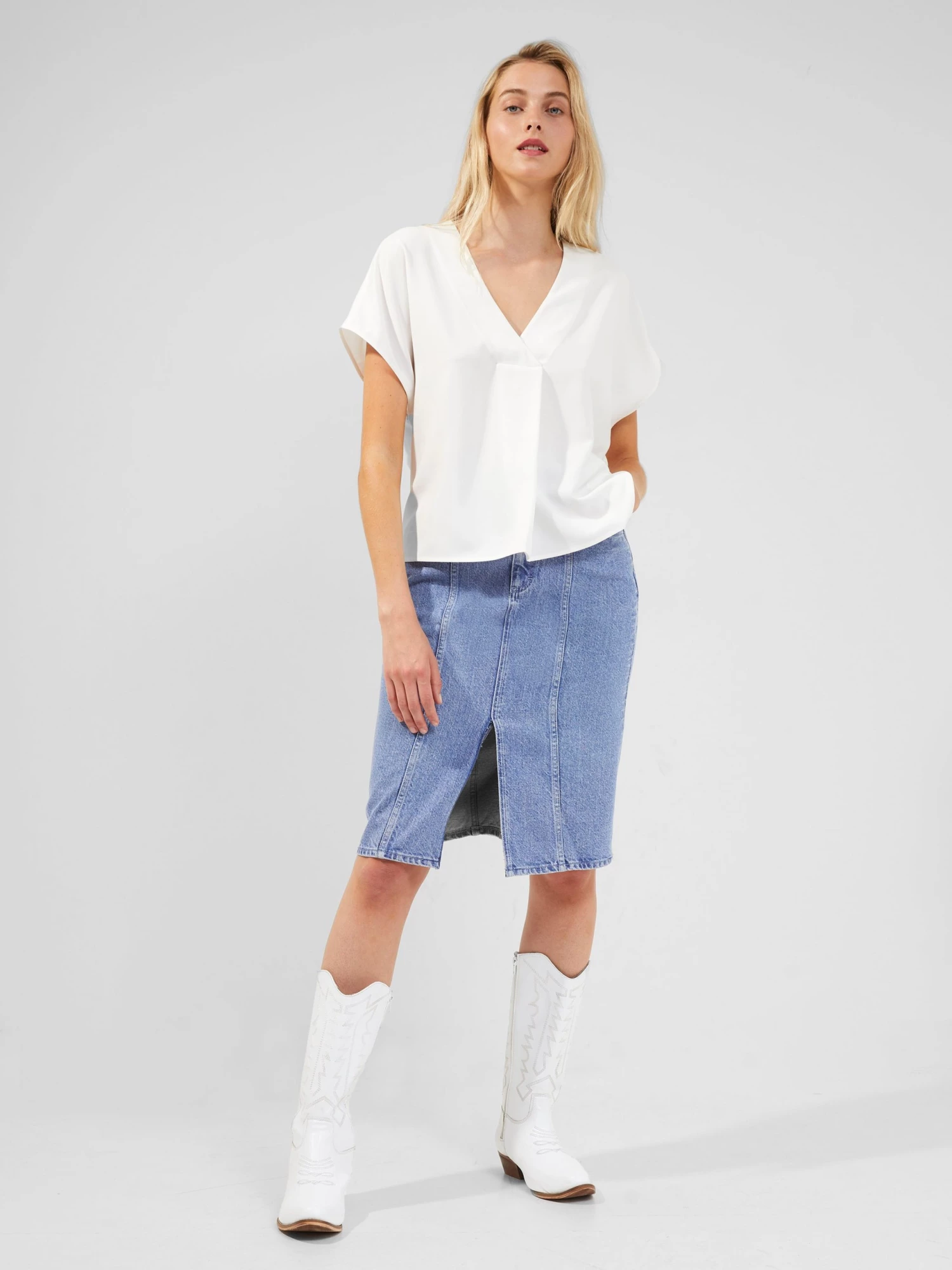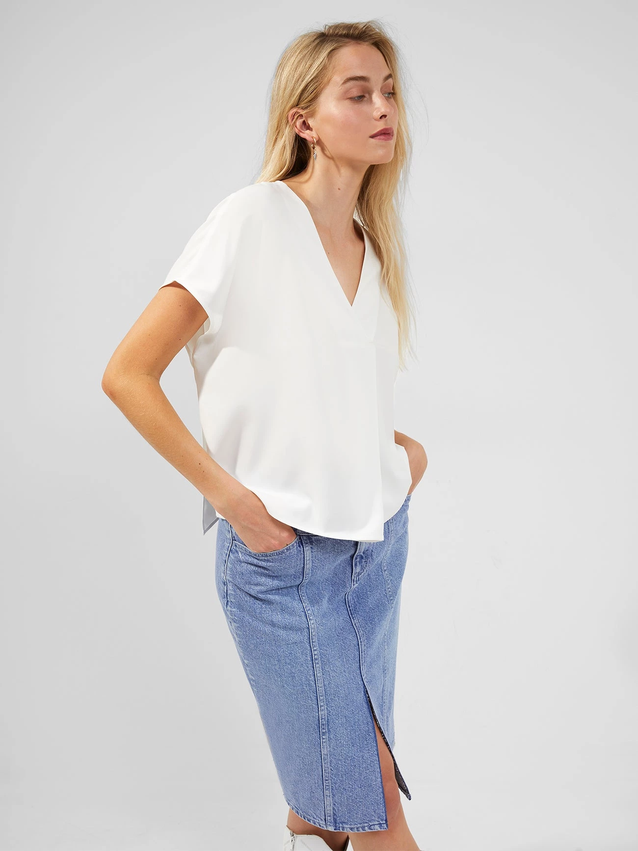 Light as air, hence the name, the Crepe Light Top will become your next go-to basic. Featuring a relaxed fit, V-neckline and unique fold design.