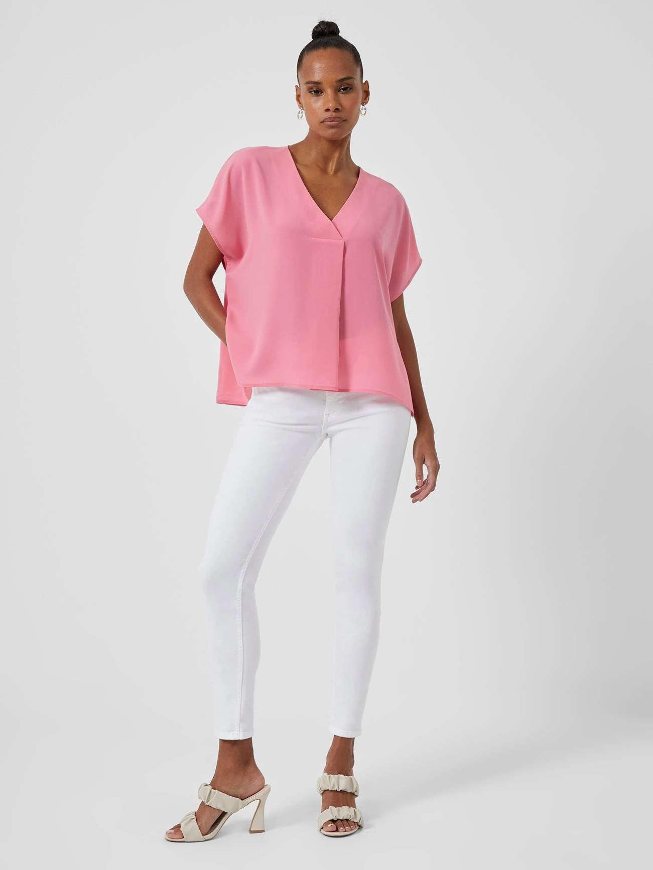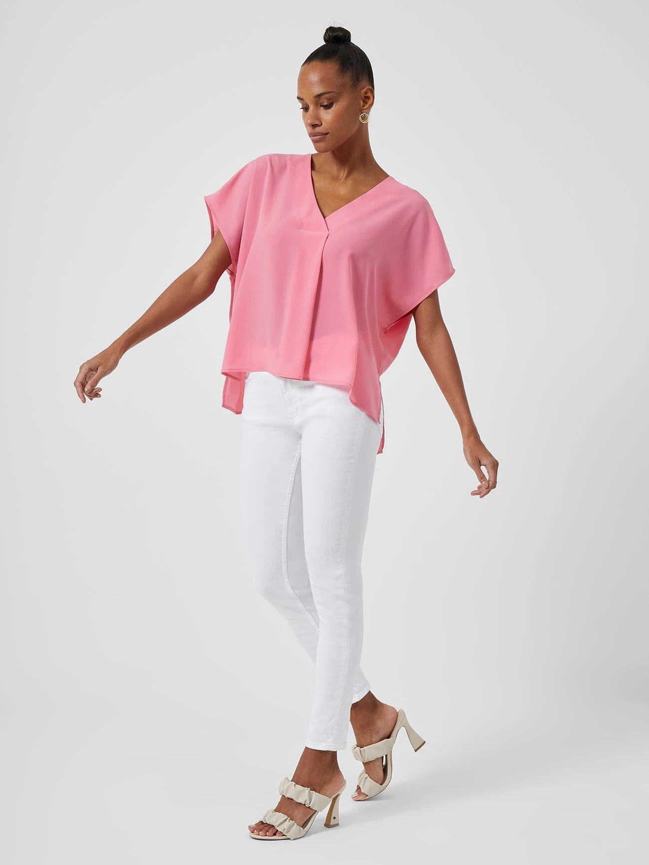 The Crepe Light V-neck Top is destined to become your new go-to basic. It features a relaxed fit, V-neckline and unique fold design.