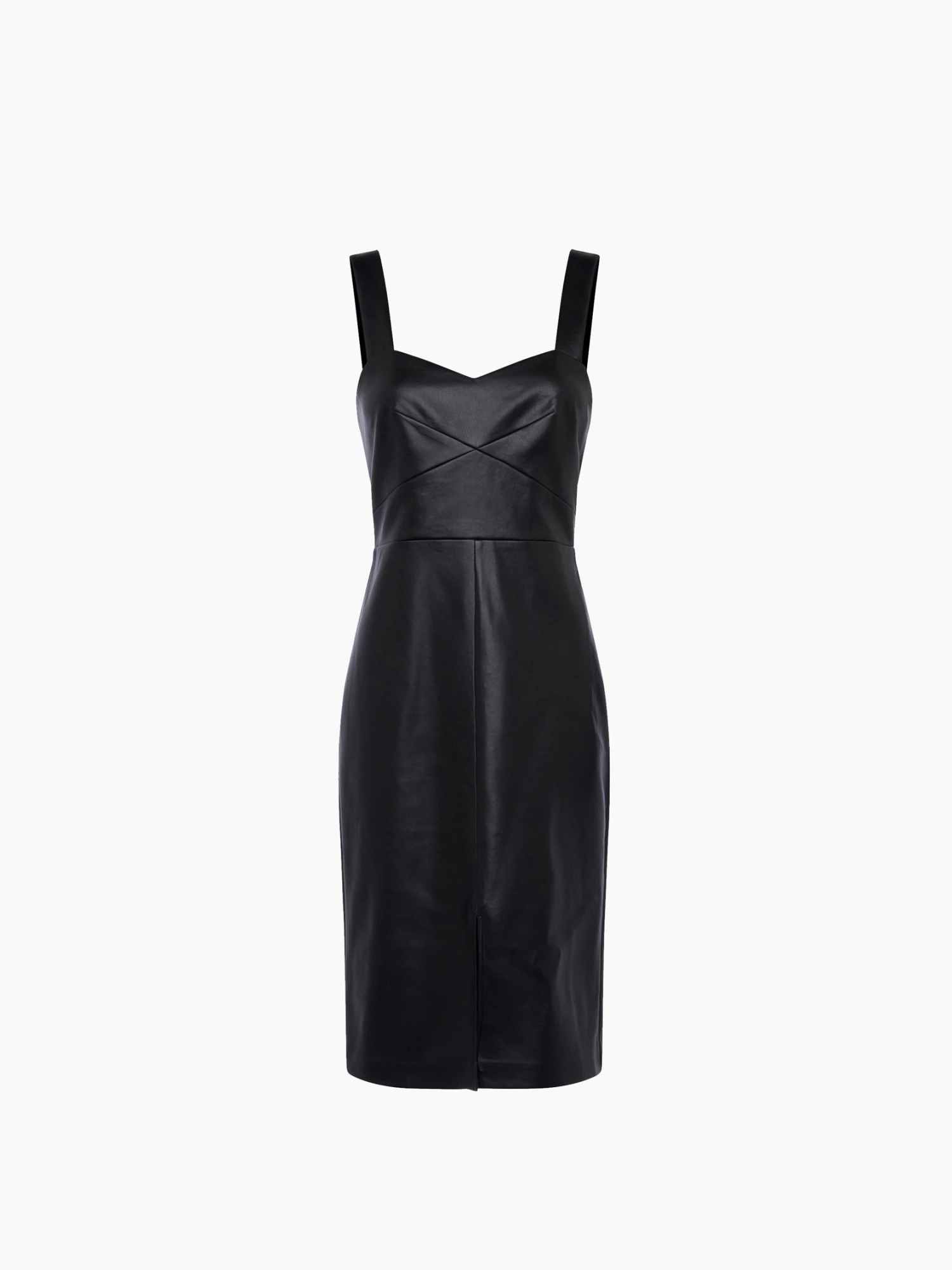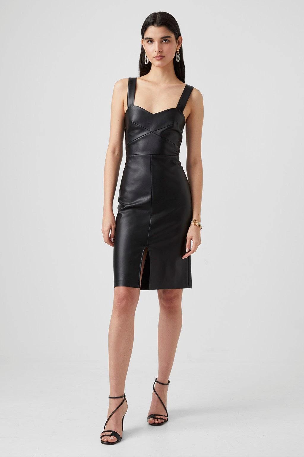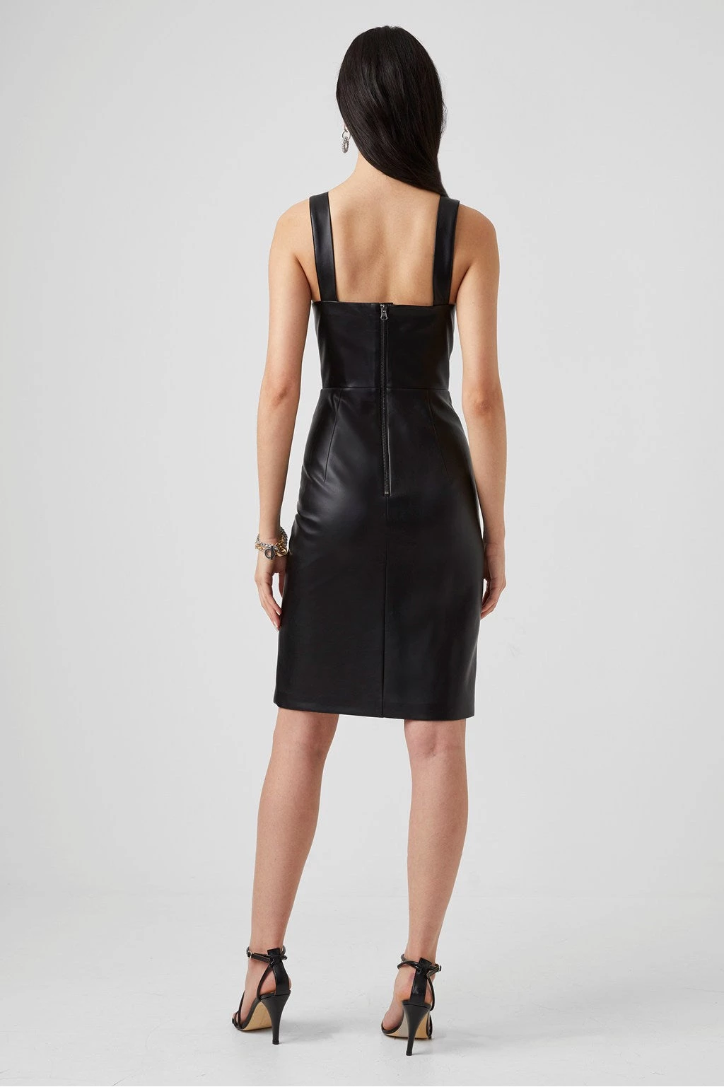 Blending retro and modern sensibilities, the Crolenda Vegan Leather Mini Dress has a bodycon silhouette with thick shoulder straps, effortlessly exuding cool attitude on evenings out.