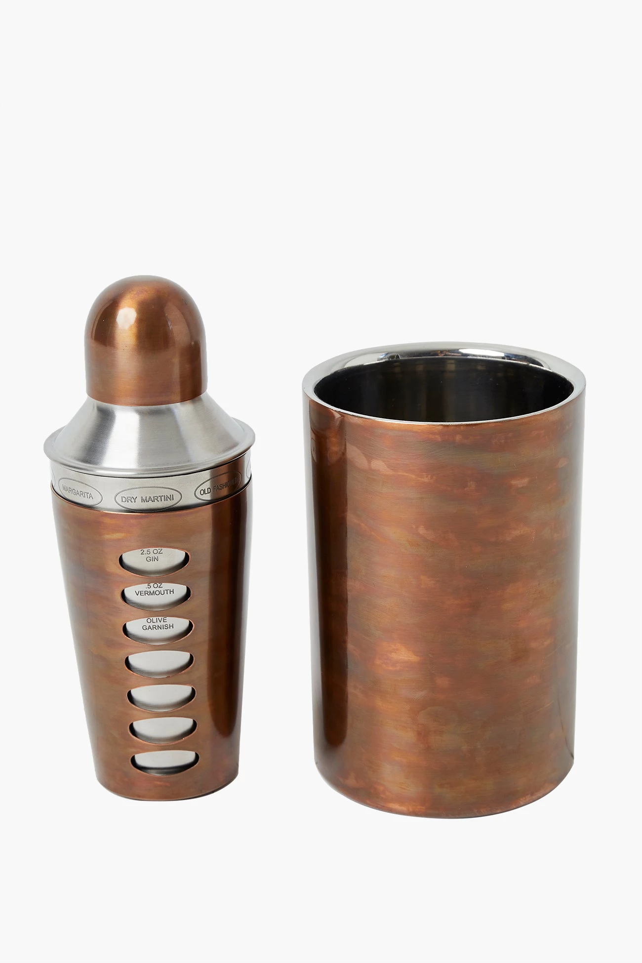 Upgrade your cocktail game with the Deluxe Cocktail Shaker. Designed in a glamorous two toned metallic finish, the shaker features a sleek silver lid and antiqued copper bottom, making it an elegant addition to your at home bar. Bring that party state of mind into your festivities this season with warming cocktails and shimmering barware.