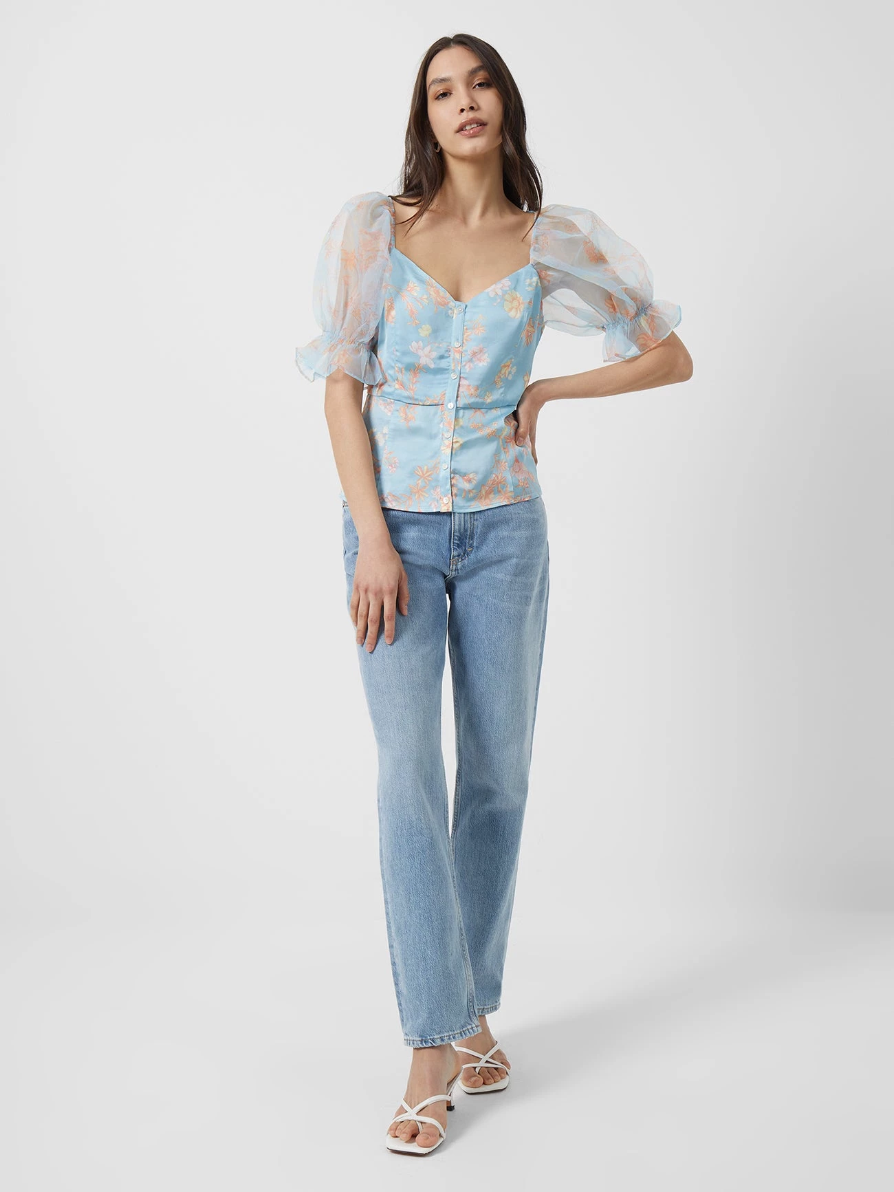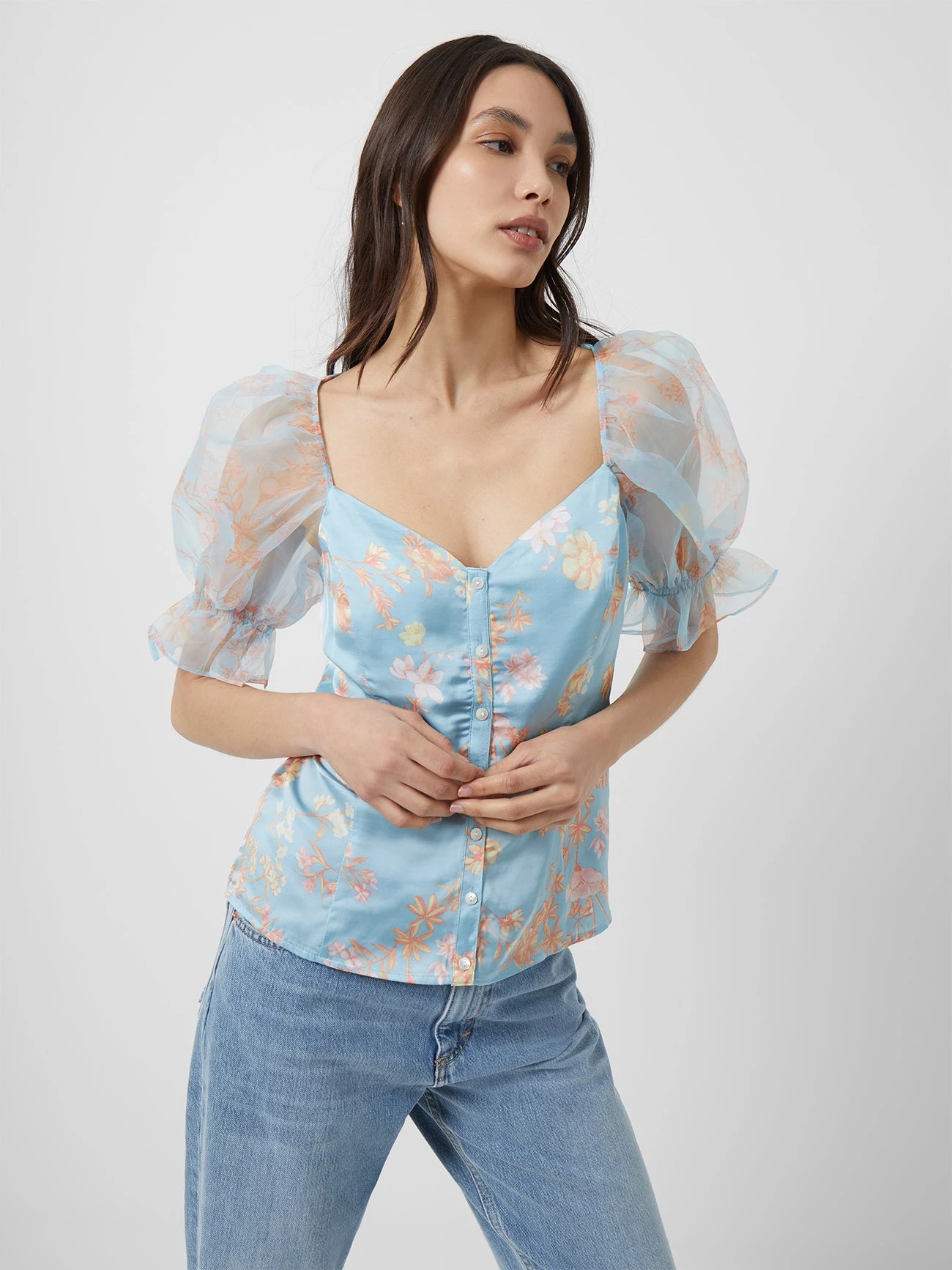 Sheer excellence In our Diana Drape Top. Designed with a button-down front and sheer puff sleeves – you’ll hit the spotlight.
