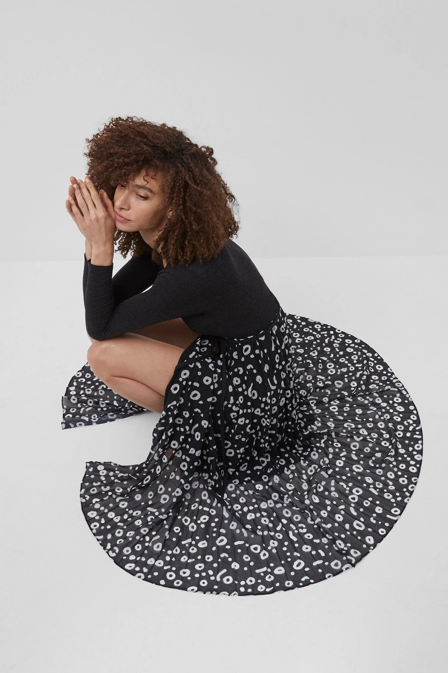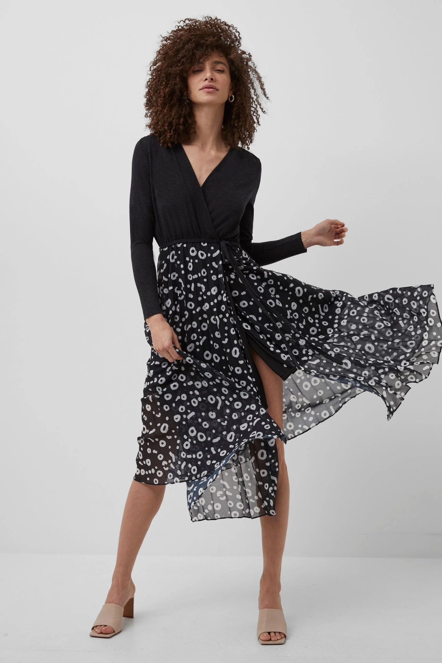 The Doe Wrap Midi Dress is the mix-matched design you never knew you needed – until now. Featuring a soft jersey top and contrasting floral skirt.