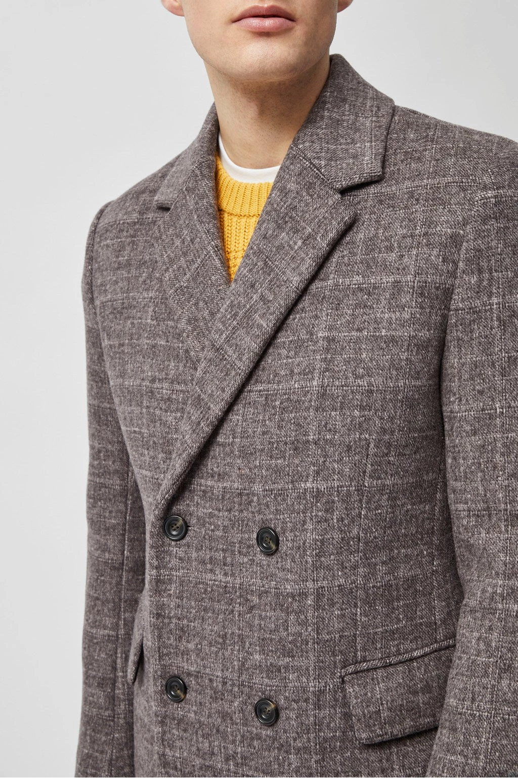Unleash the gentleman inside you with our Double Breasted Coat. In a textured tweed design, it’s comfortably oversized to layer over any ensemble with ease.
