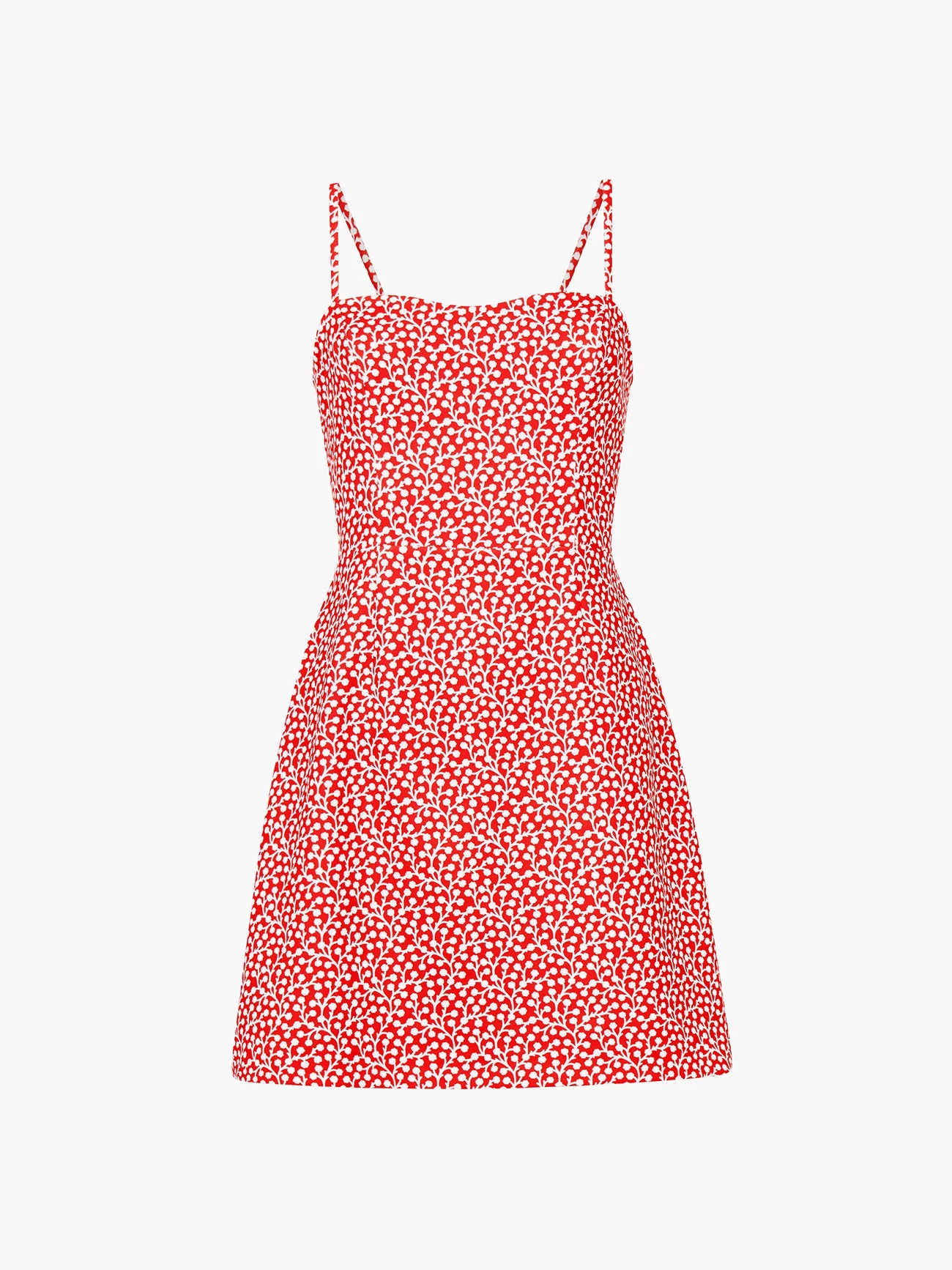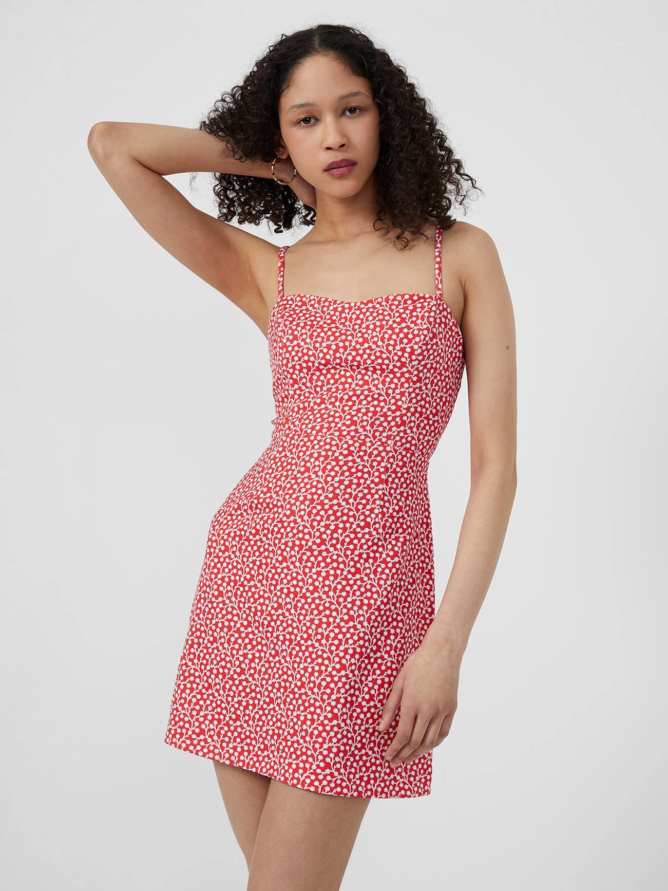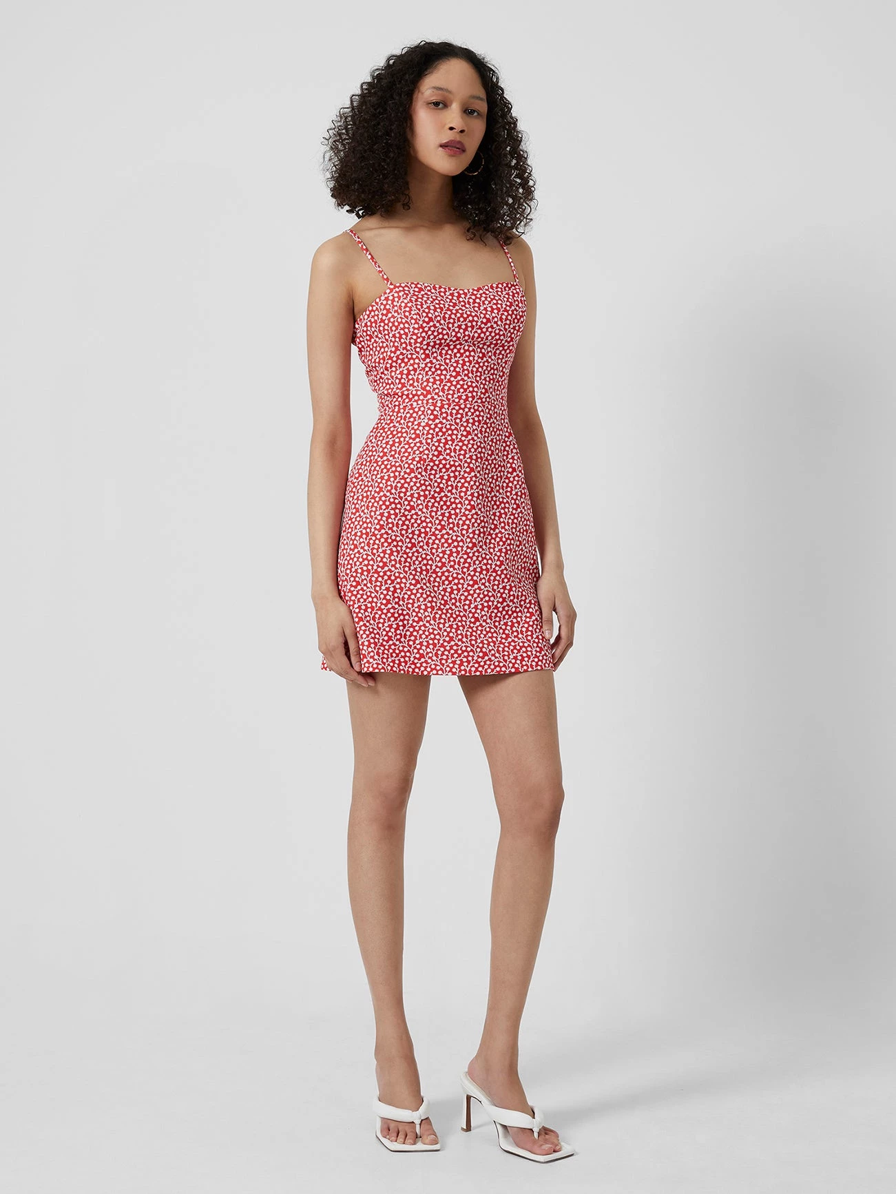 Defined by a pretty abstract blossom print, the Elao Whisper Dress offers a cheerful dose of colour for playful dressing, paired with a fun back tie fastening. Cut in a structured silhouette with a fitted bodice and waist, flattering sweetheart neckline and cut-out back detailing.