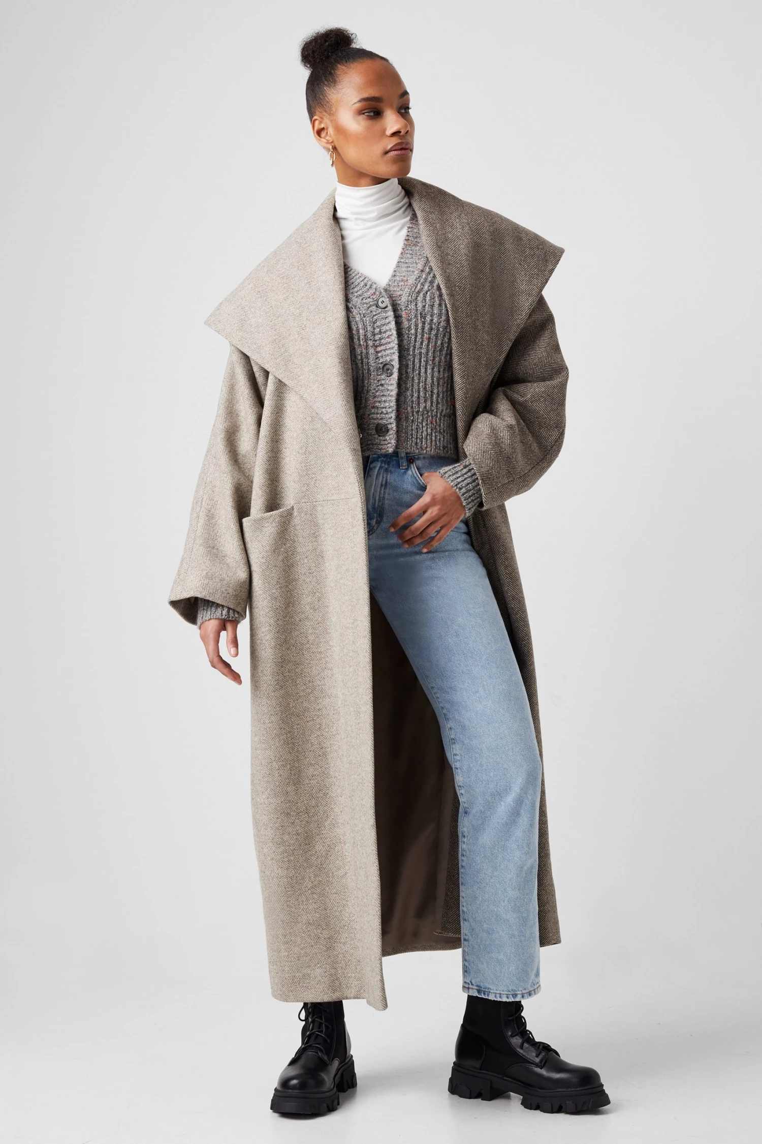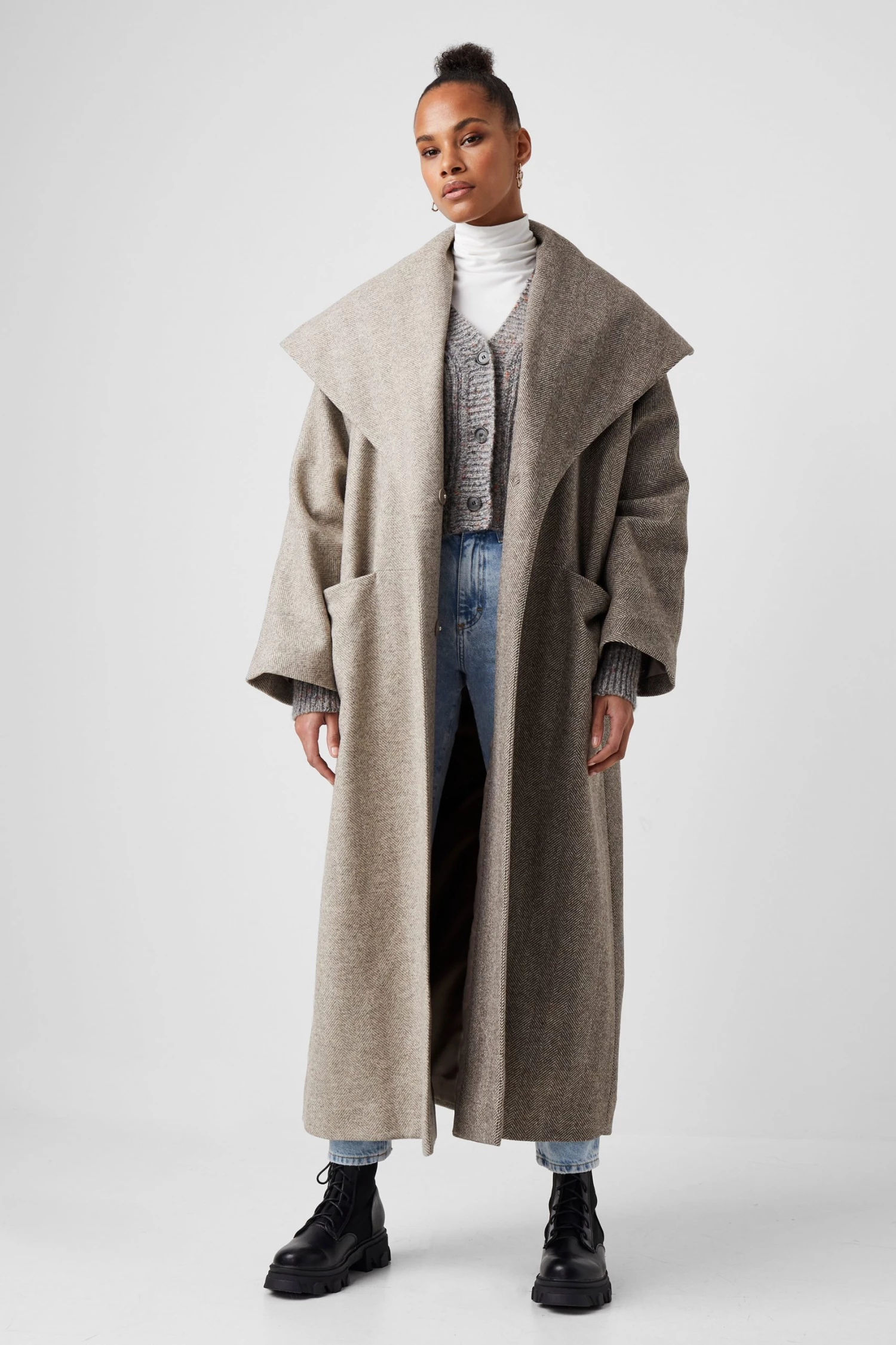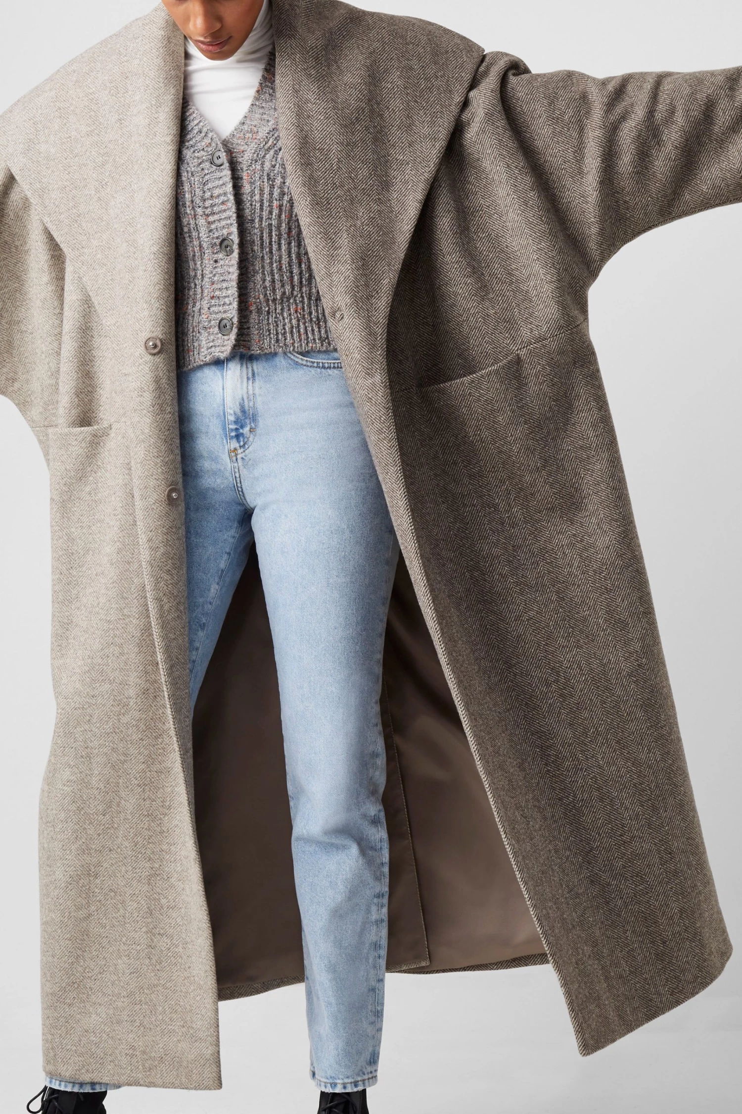 Timeless and set to stir some drama, that’s our Edith Wool-Blend Coat. The oversized silhouette has extra-large lapels, soft wool-blend construction and single-button fastening.
