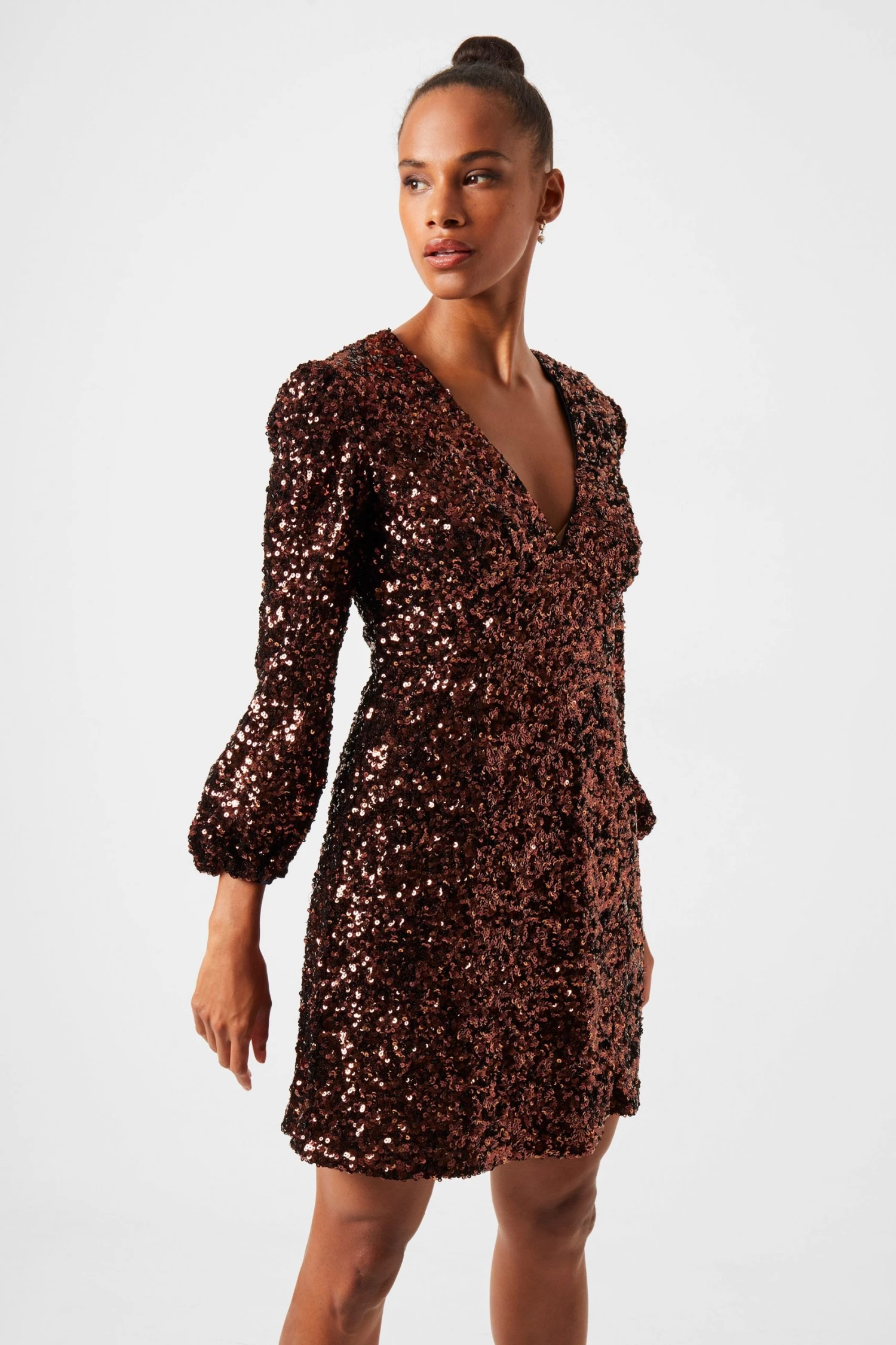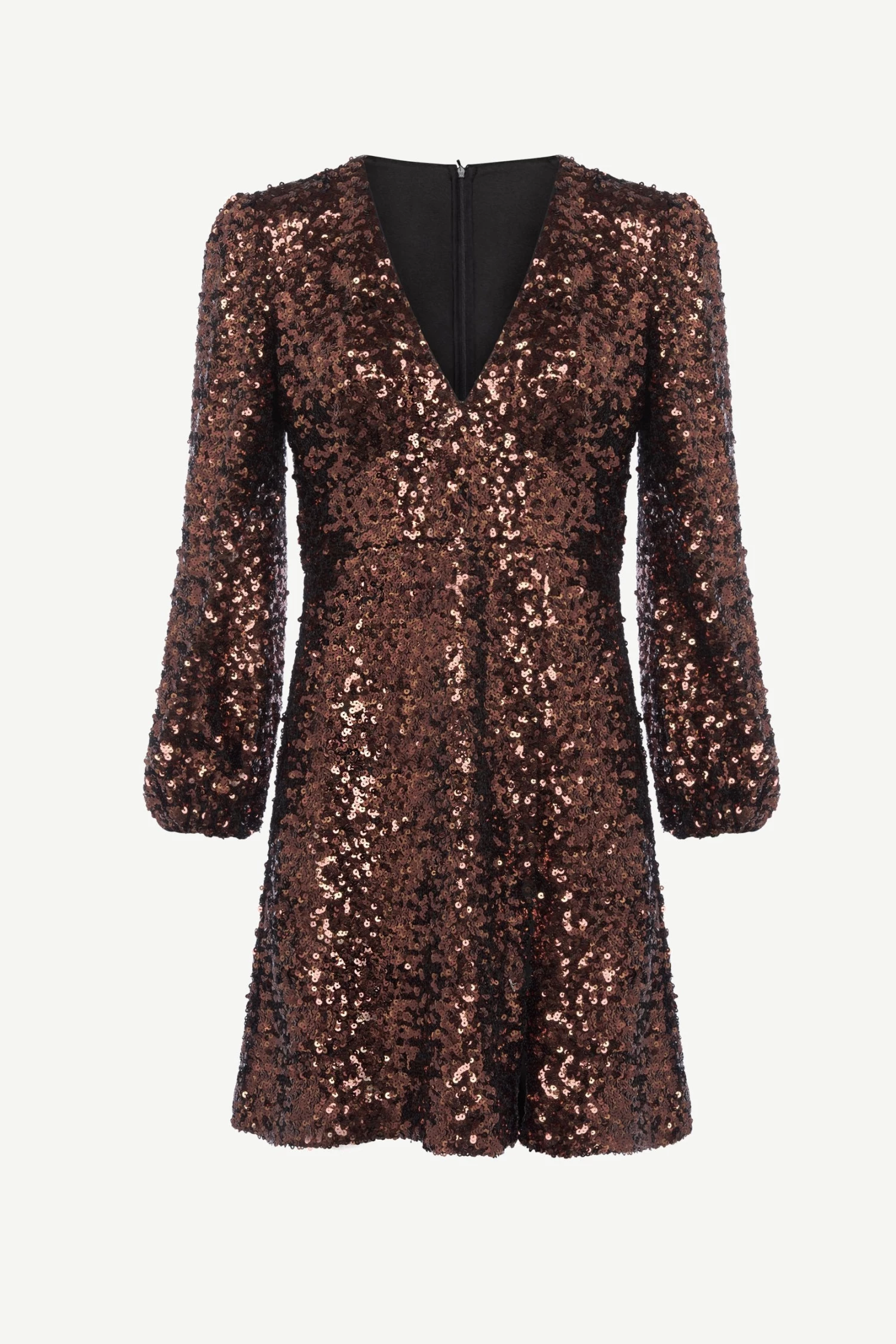Rival the shimmer of night-time lights in the Eeka Cluster Mini Dress. Formed from miniature sequins, it has a V-neckline.