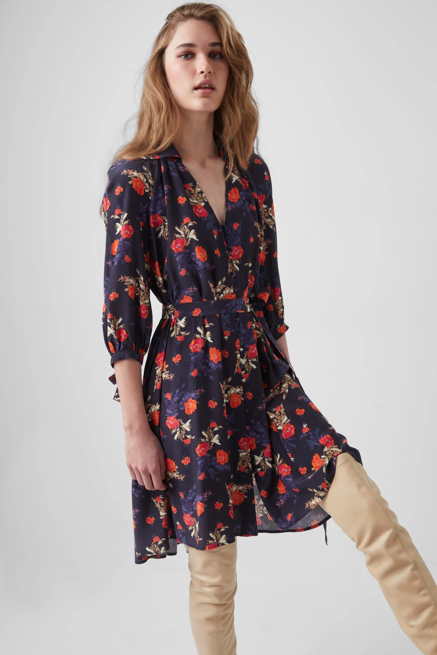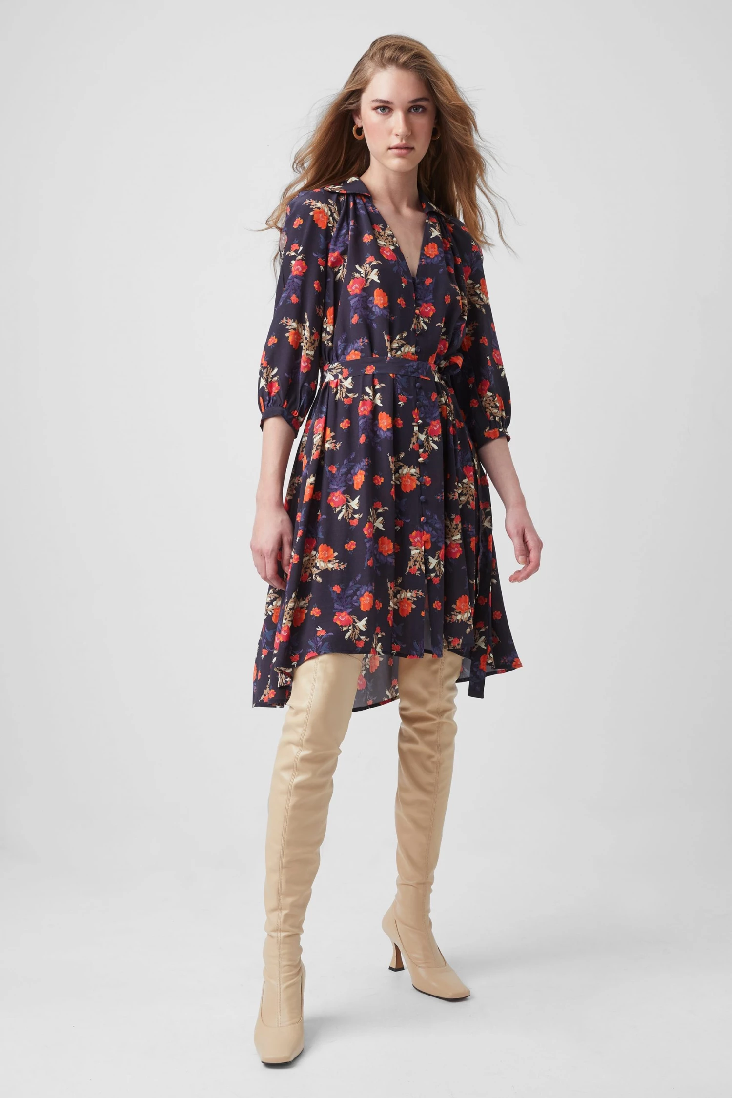- Fabric: lightweight, draped, floral