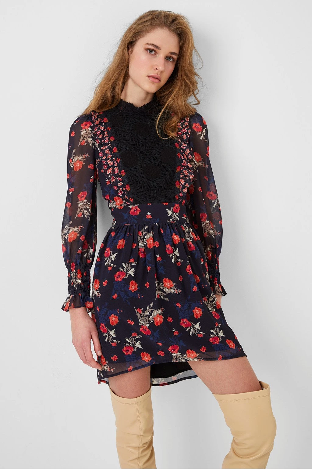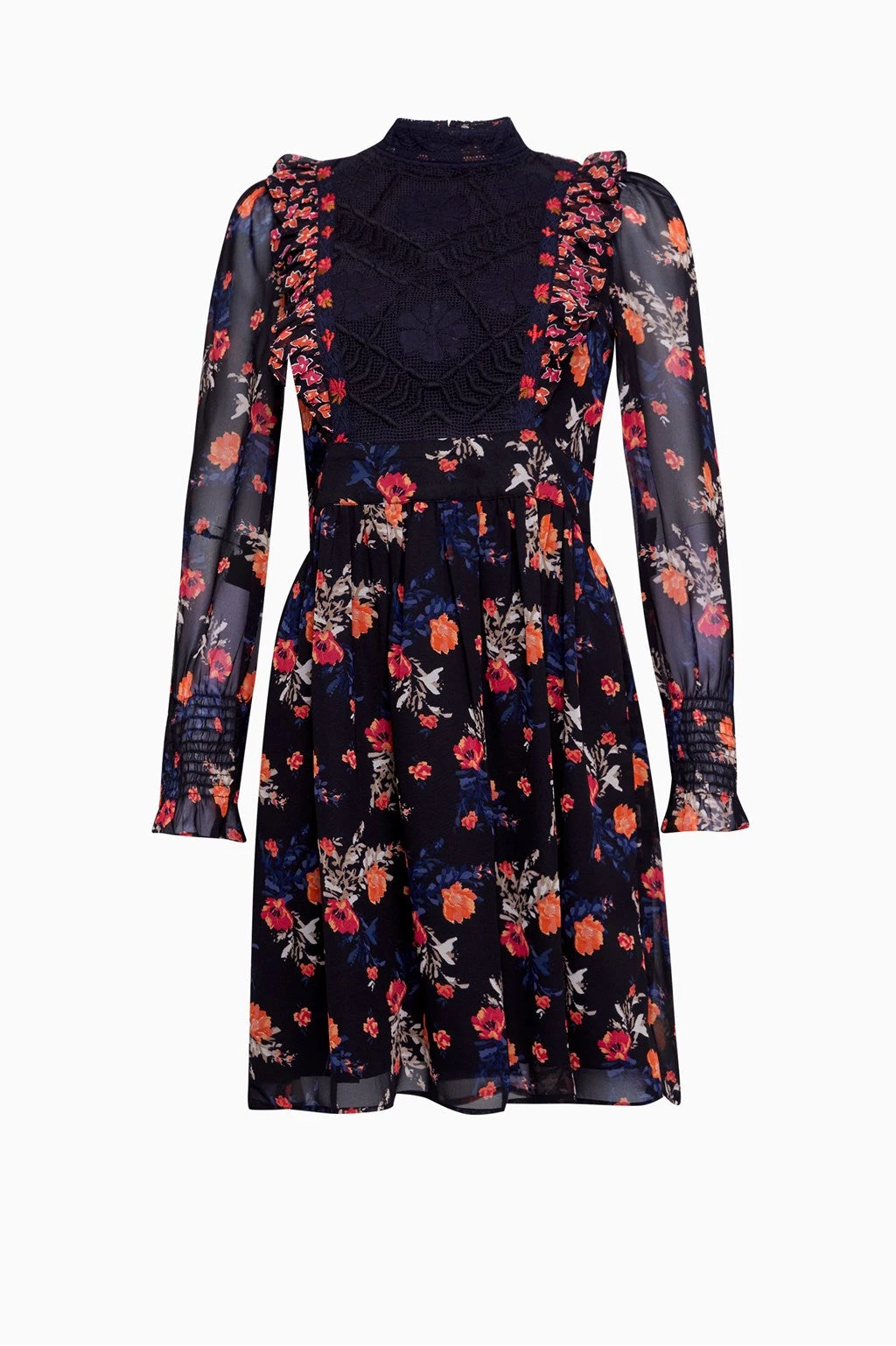 Romance always wins – and the Ella Rose Recycled Lace Mix Mini Dress is proof. Designed with a lace bodice, frilled sleeves and floral print.