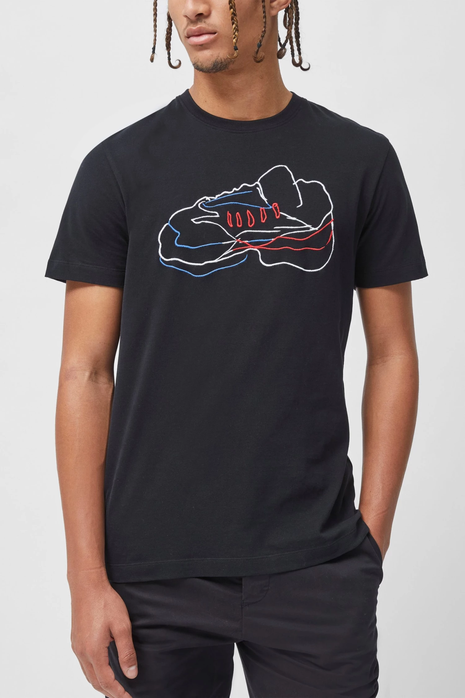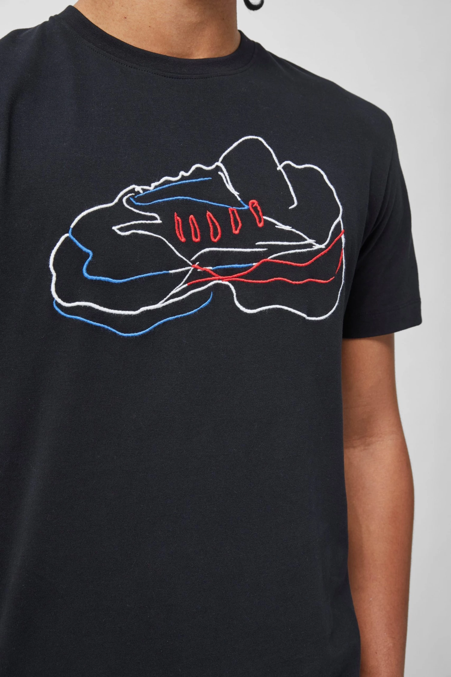A must-have for contemporary style addicts, the Embroidery Trainer T-Shirt depicts a casual trainer embroidered atop a relaxed cotton profile with short sleeves and round neckline.