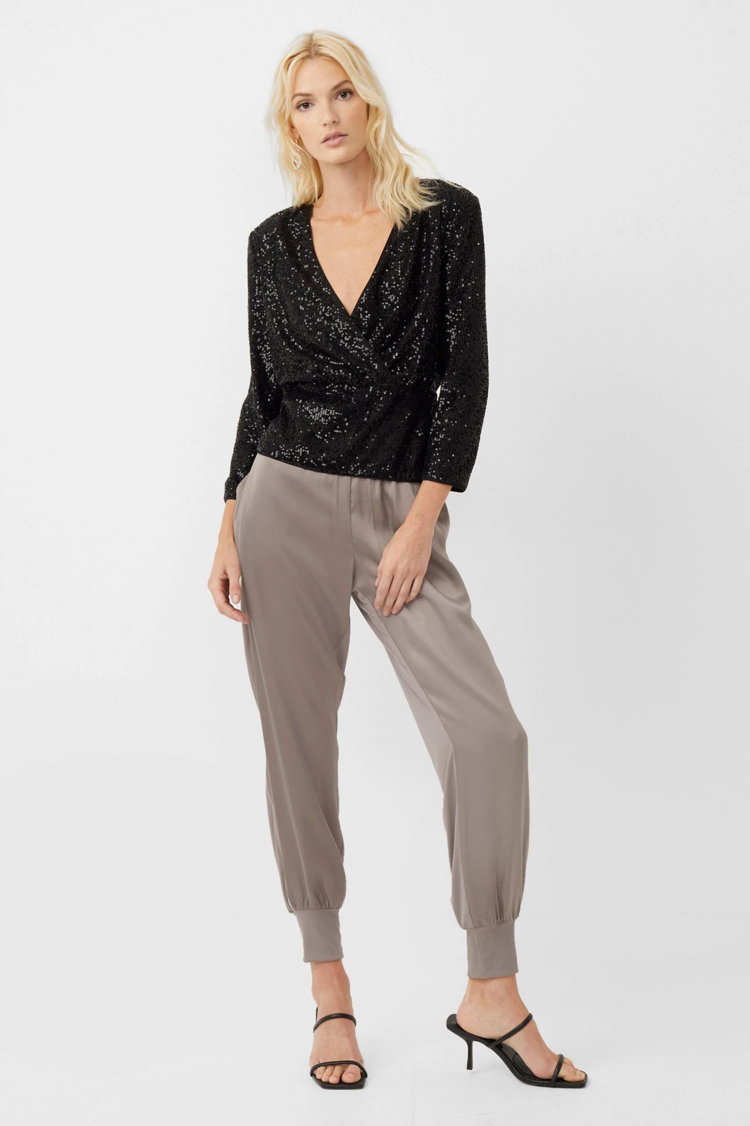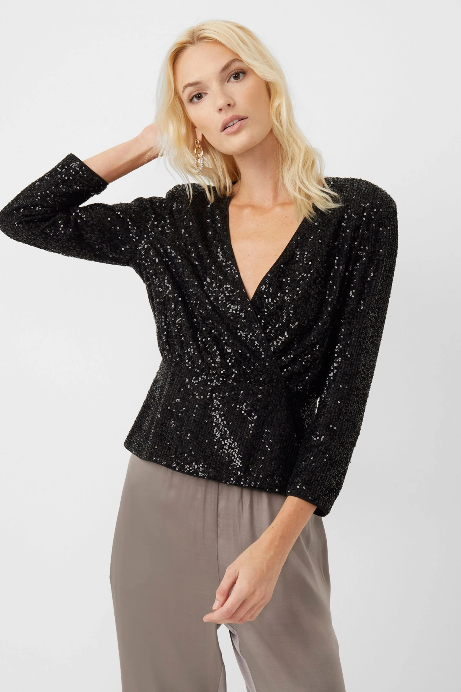 Cover yourself in a dazzling sea of miniature sequins with the Eshka Sequin Wrap Top. In an ever-flattering wrap silhouette, itβs the ultimate piece for partying.