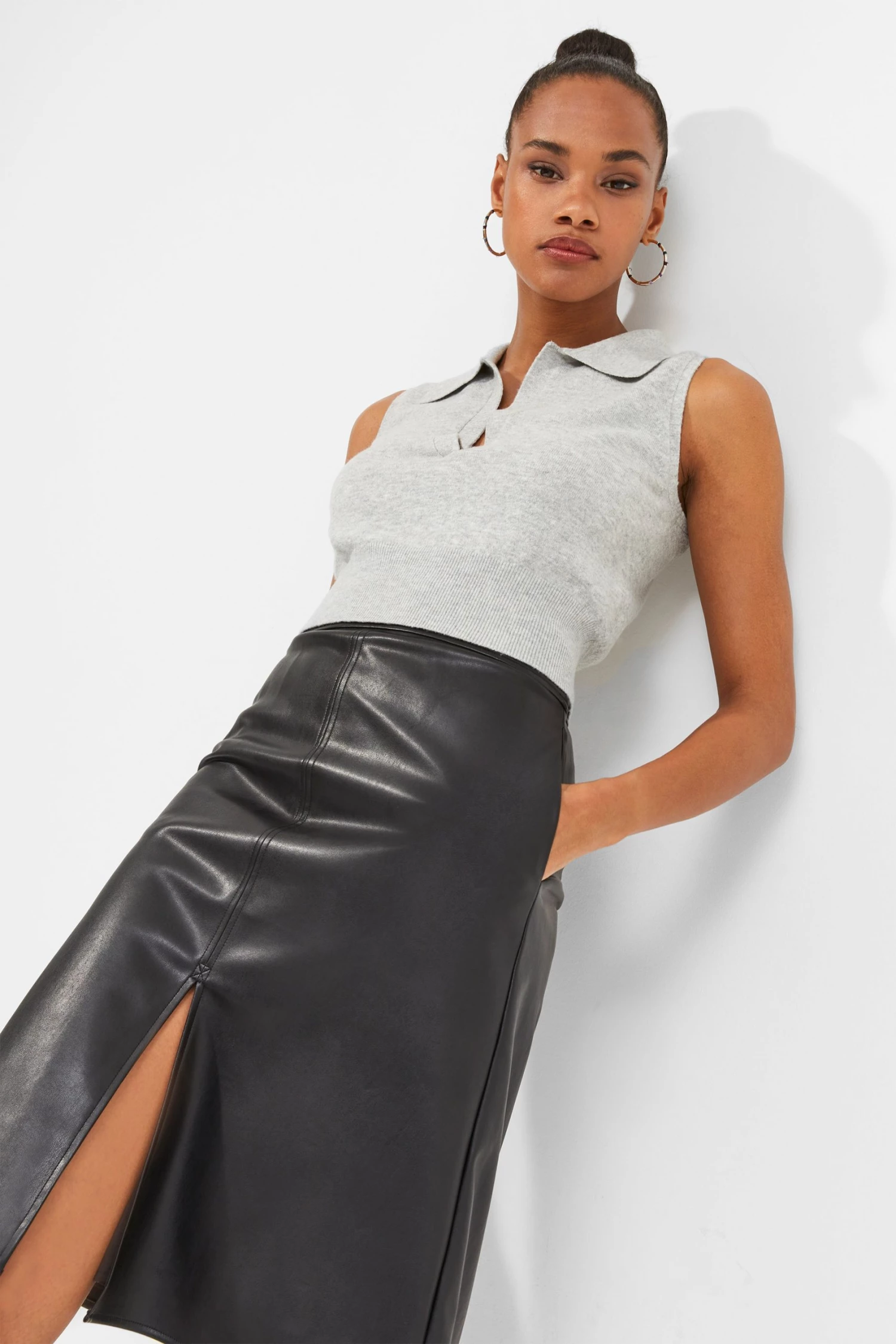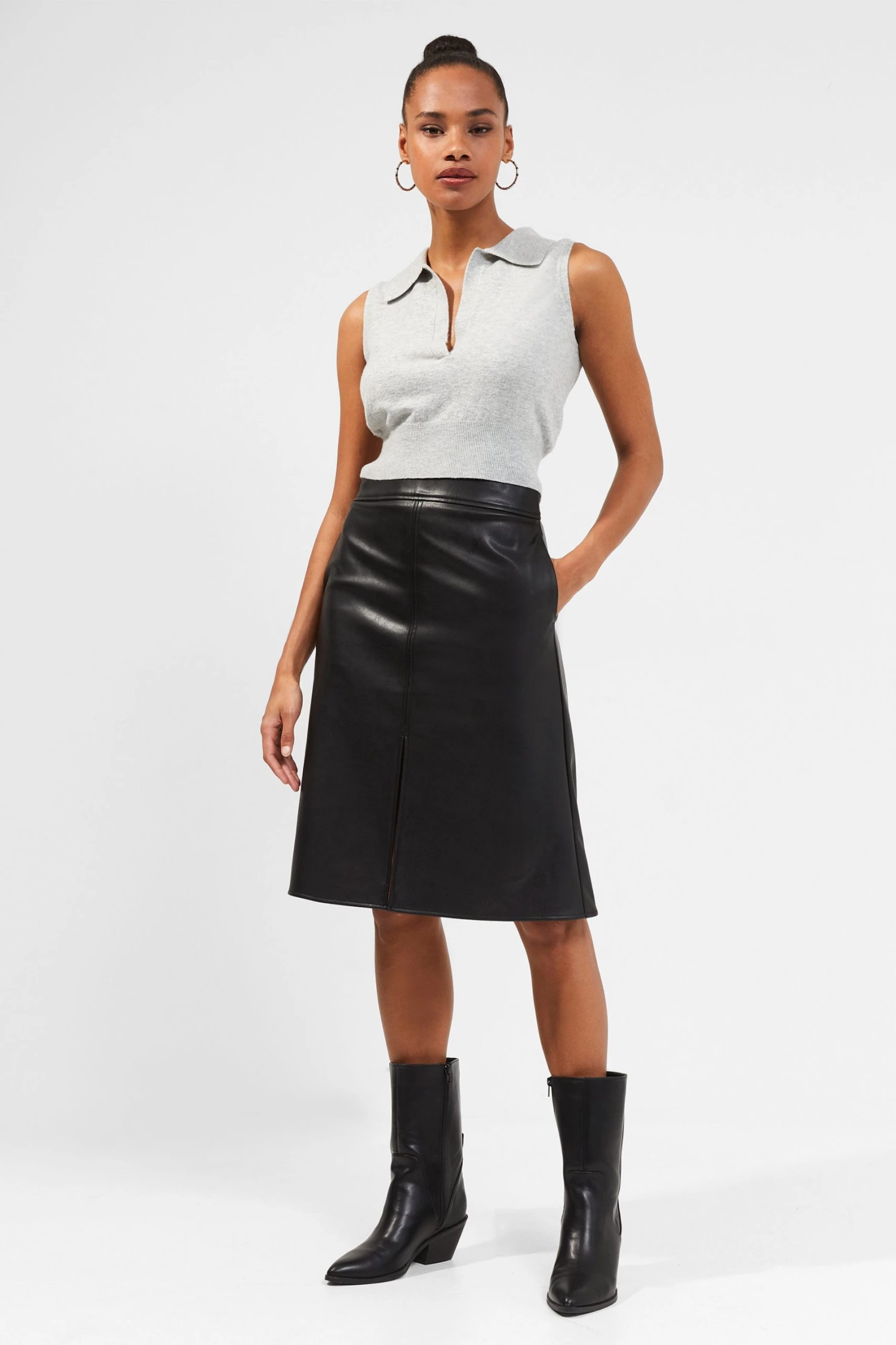 Infused with a dash of edge thanks to its leather-like look, the Etta Recycled Vegan Leather Midi Skirt packs a punch. Featuring a mid-rise waist and front split.