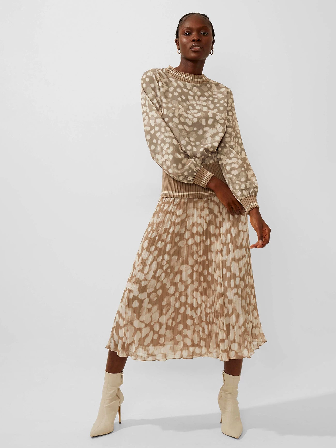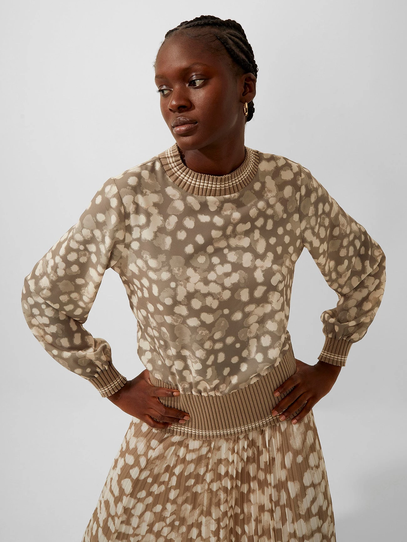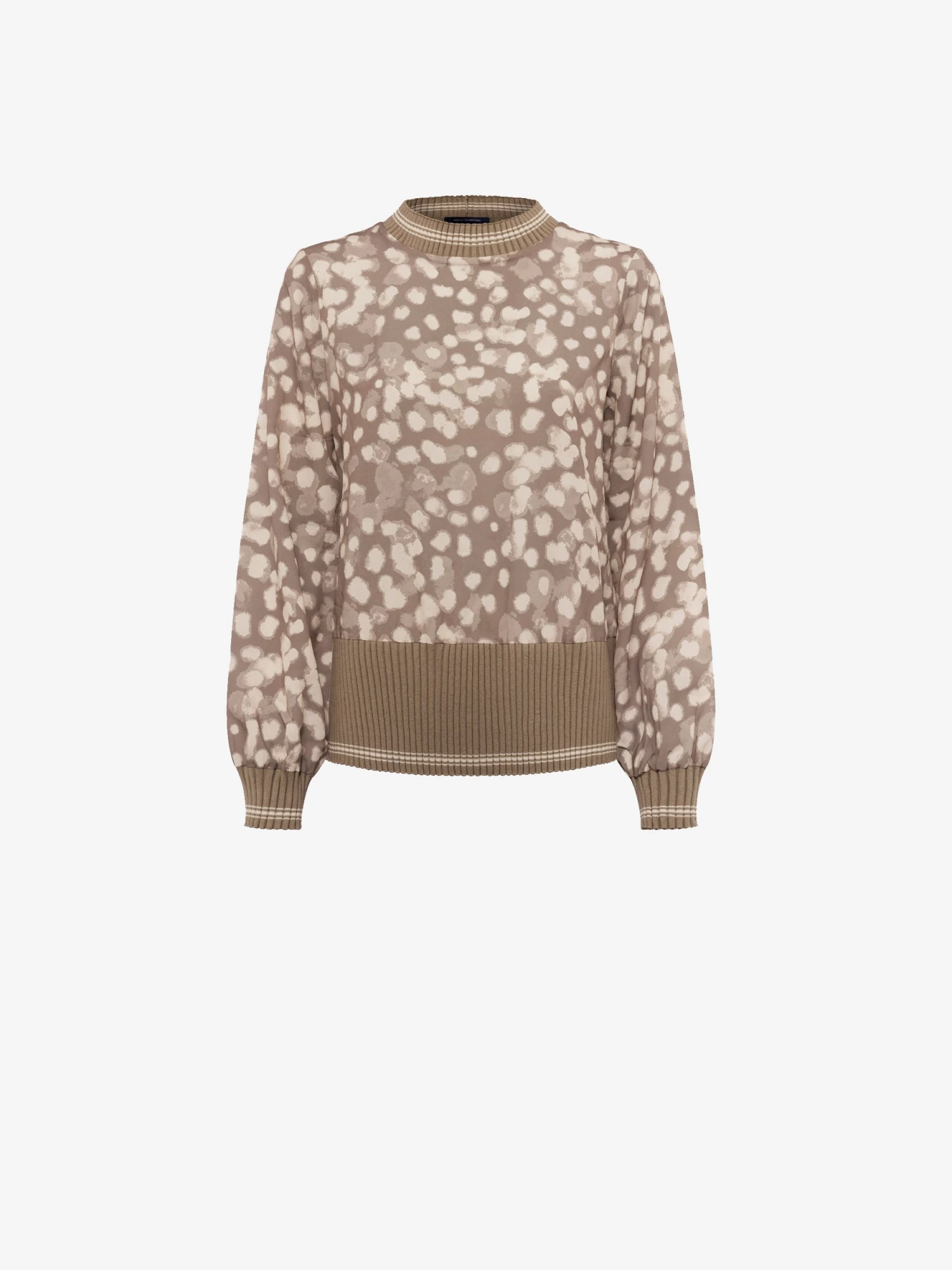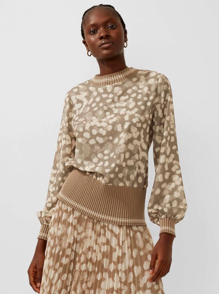 For whatever your mood is. The Eva Knit Printed Top is awash with a powdered spot print and has ribbed trims and soft construction.