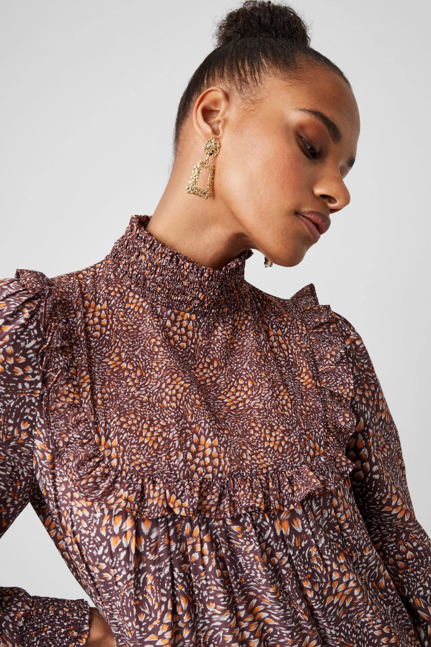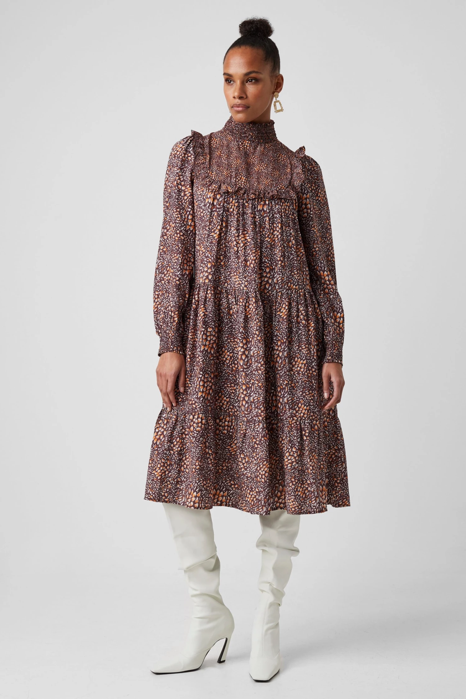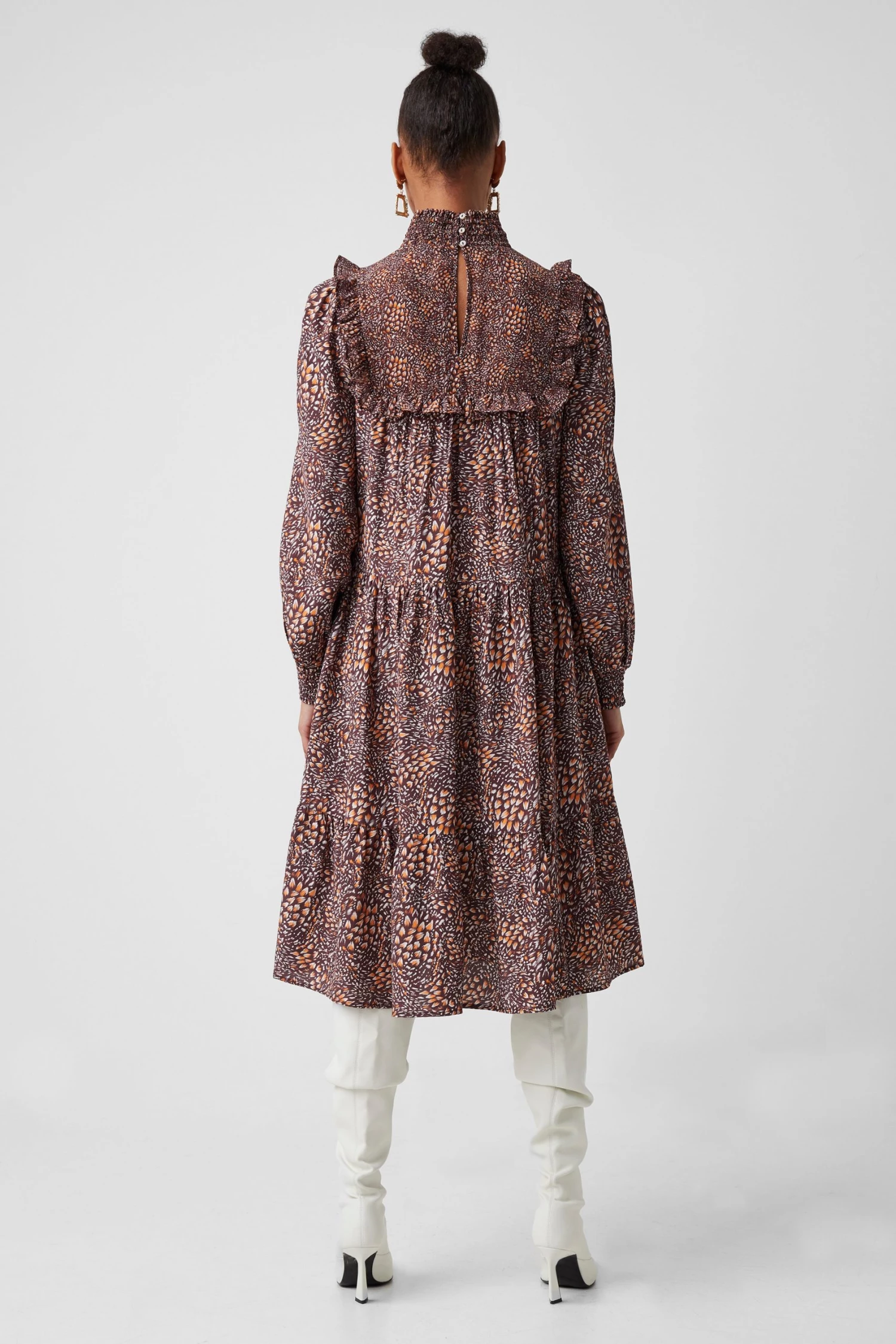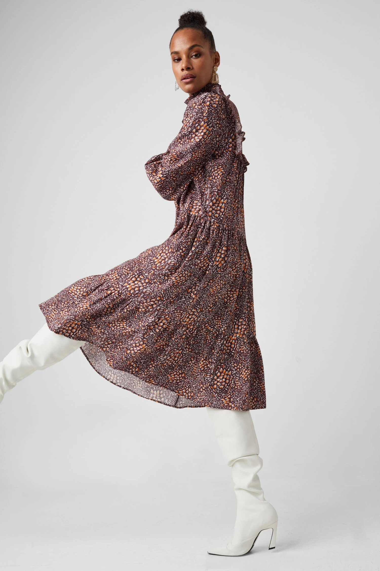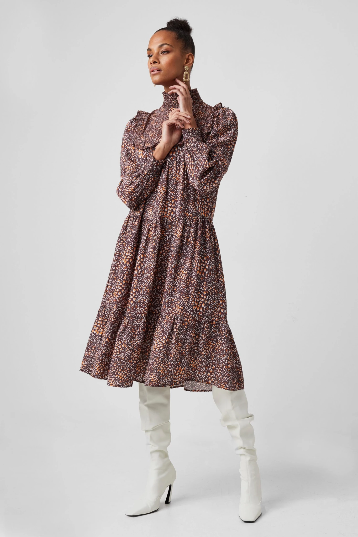 Proving that the prairie-girl trend isn’t going anywhere, the Faith Drape Midi Dress is designed with a high neckline, bib detail and ruffled trim in earthy colourway.